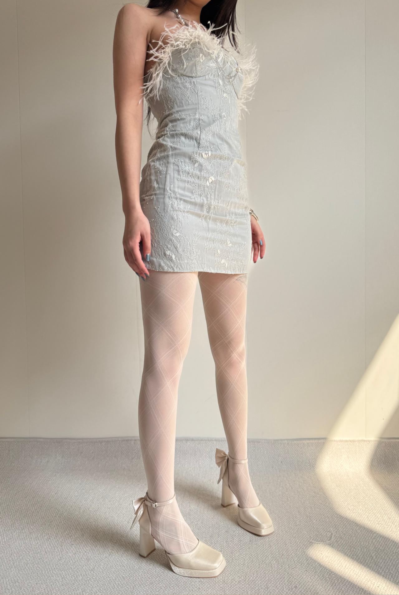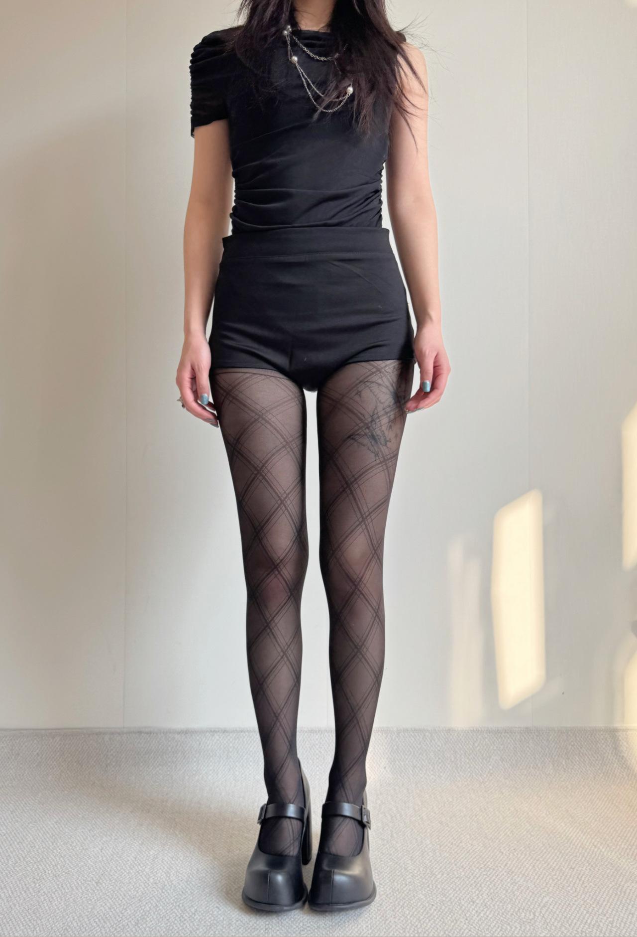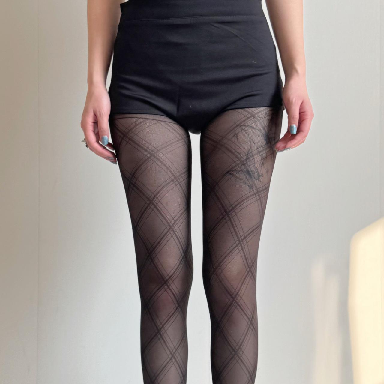 Medias Sexy Caladas para Mujer con Diamantes a Cuadros Cruzados Primavera y Otoño Finas Encaje Blanco Gris Pantimedias Deseo Puro Cubrepiernas