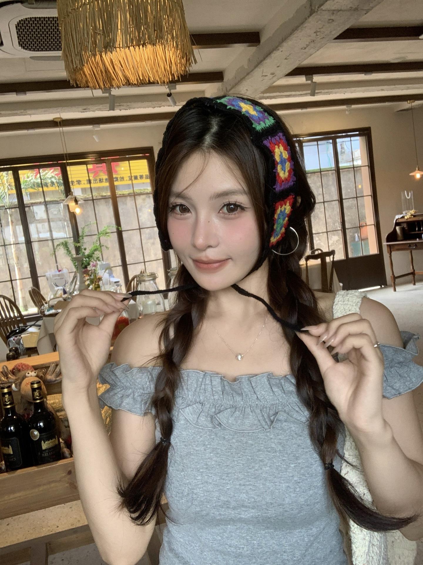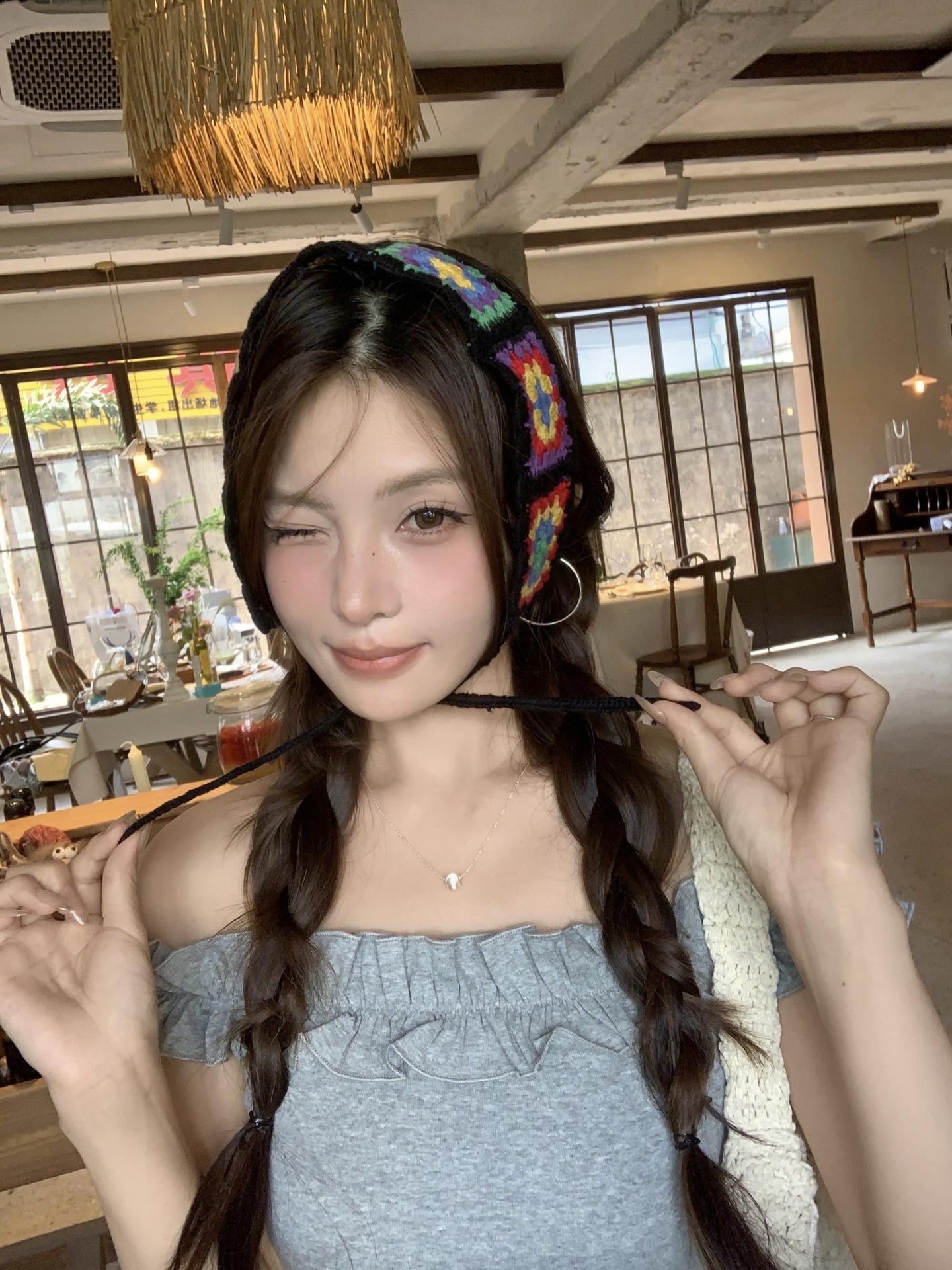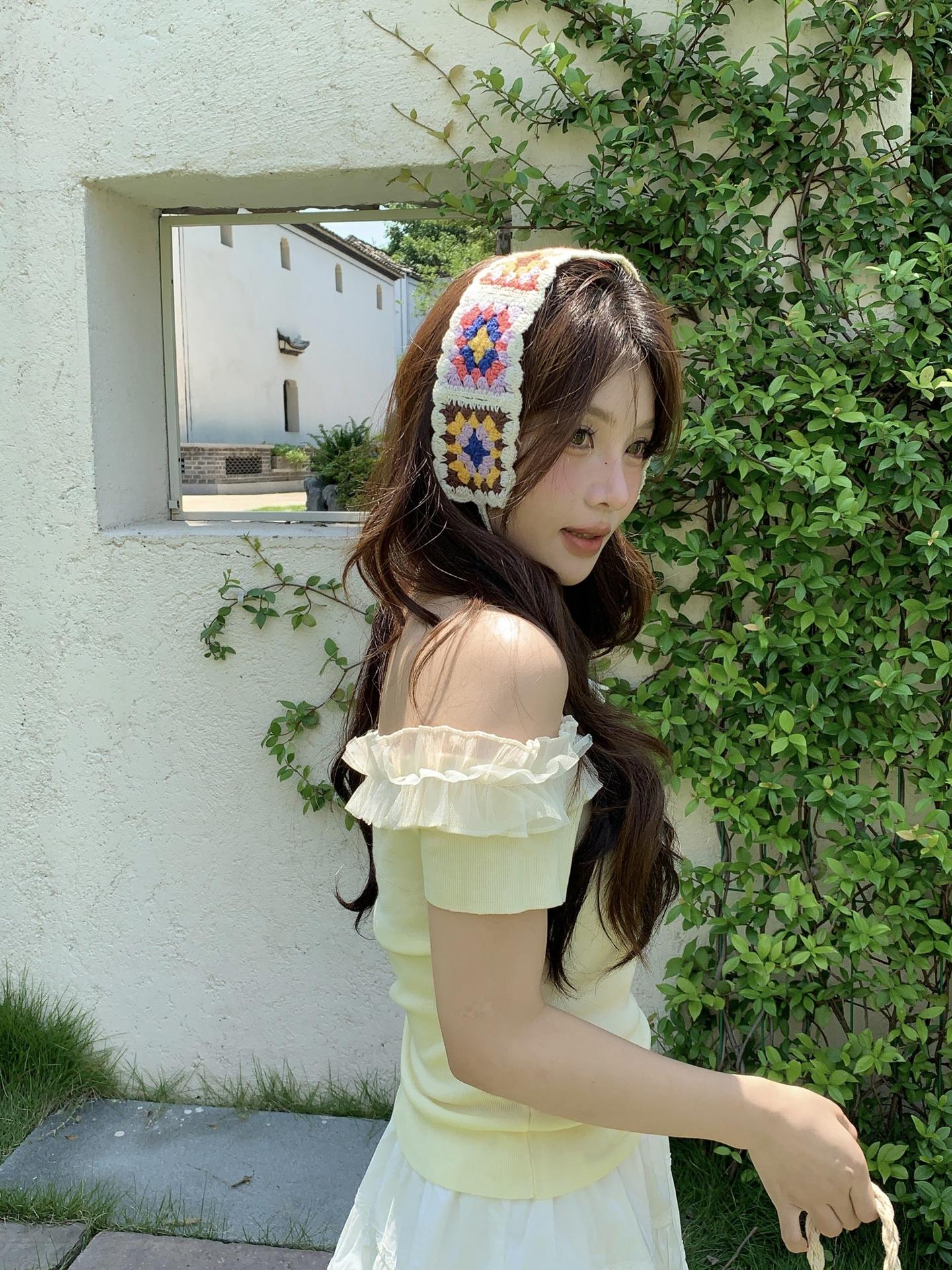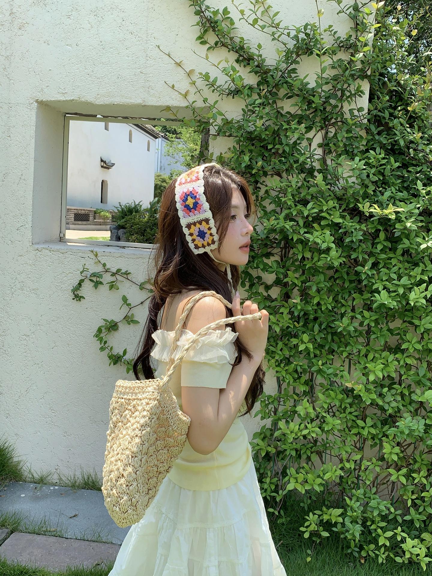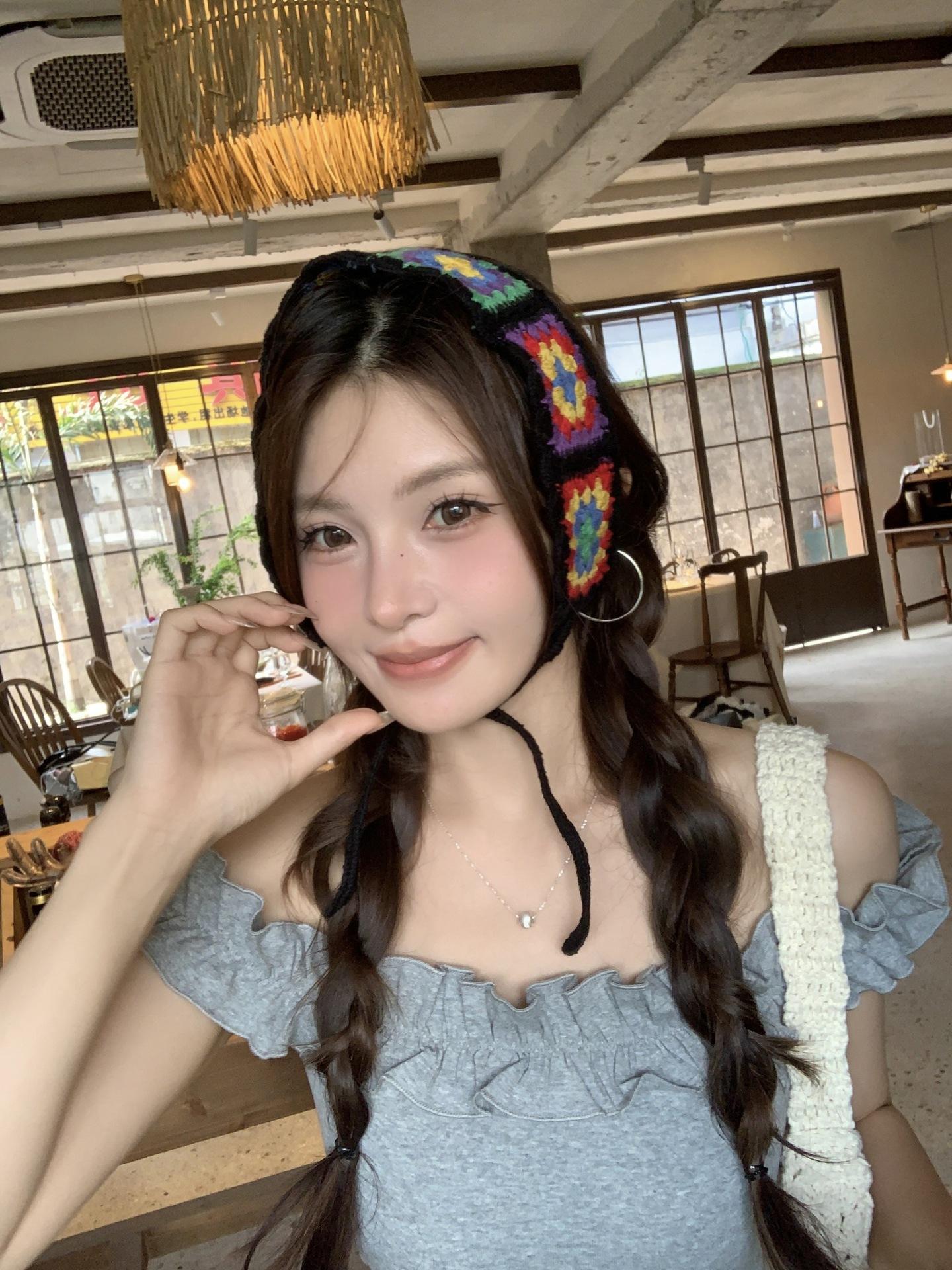 Diadema de Estilo Coreano Retro Hecha a Mano Tejida a Crochet con Flor Calada Estilo Dulce y Lindo Bufanda Triangular Colorida para Mujer Pañuelo para la Cabeza Estilo Literario