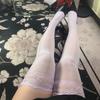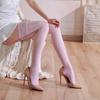 Fuente [Pluma de Pavo Real] Encaje Morado Brillante Calcetines Hasta la Rodilla Sexy 5D Brillante Medias Antideslizantes Calcetines Hasta el Muslo Dropshipping