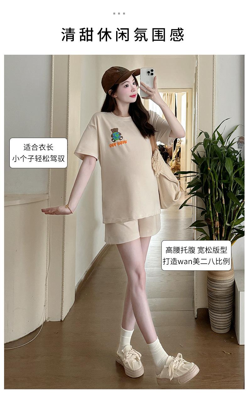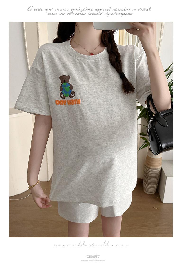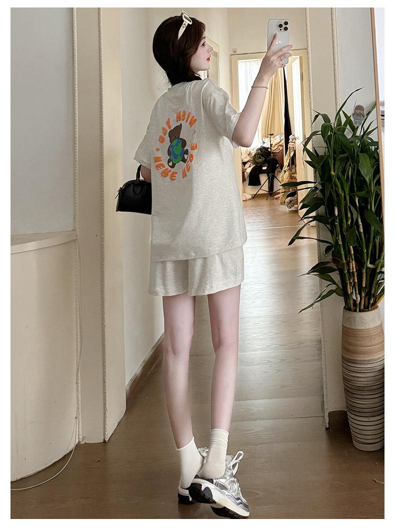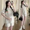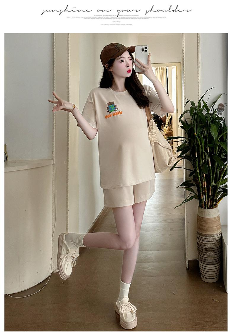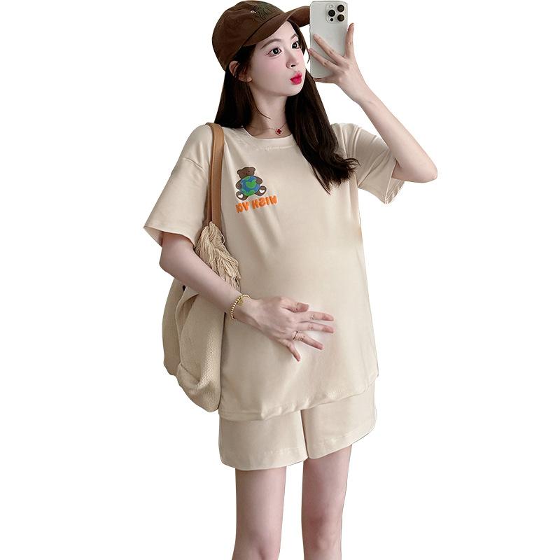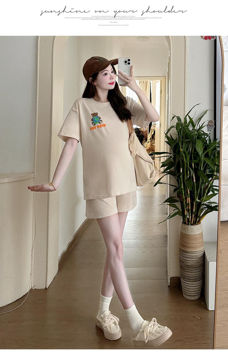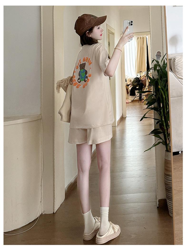 Traje de Mujer Embarazada 2025 Verano Nuevo Camiseta Suelta con Estampado de Letras Pantalones Cortos con Cordón Ajustable en el Vientre Conjunto de Dos Piezas