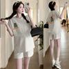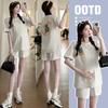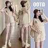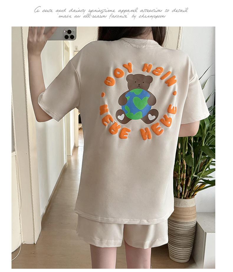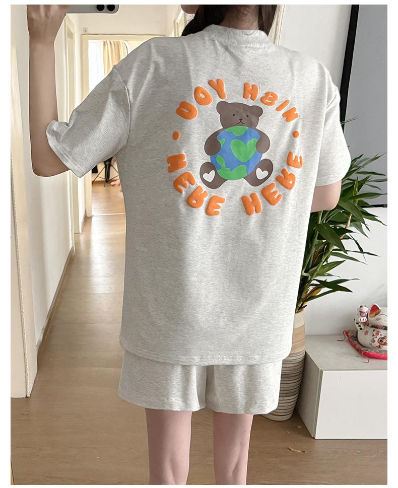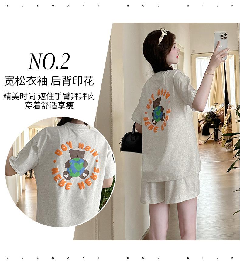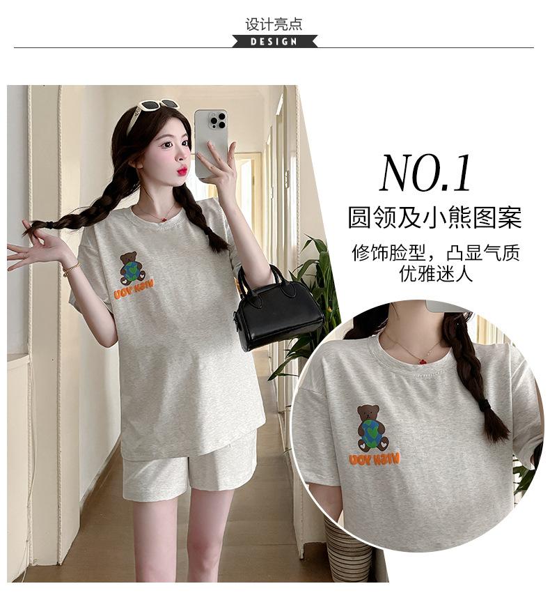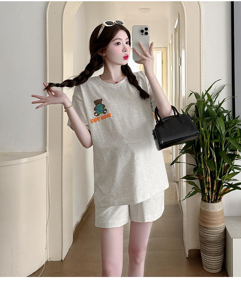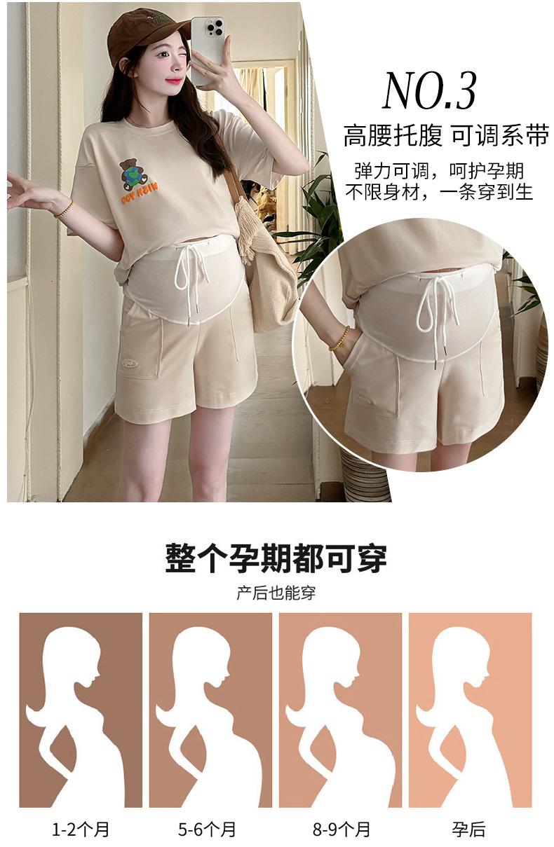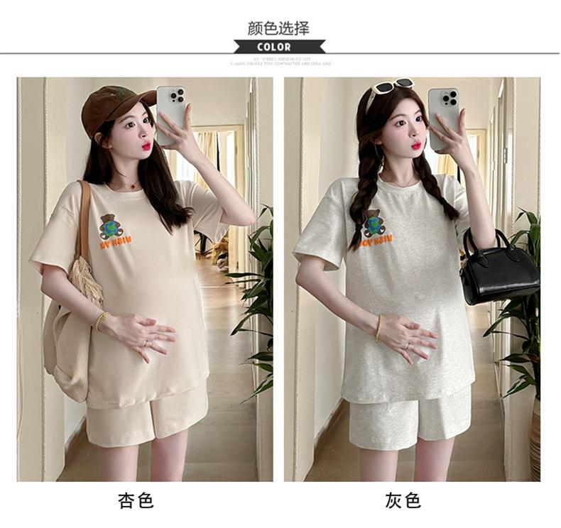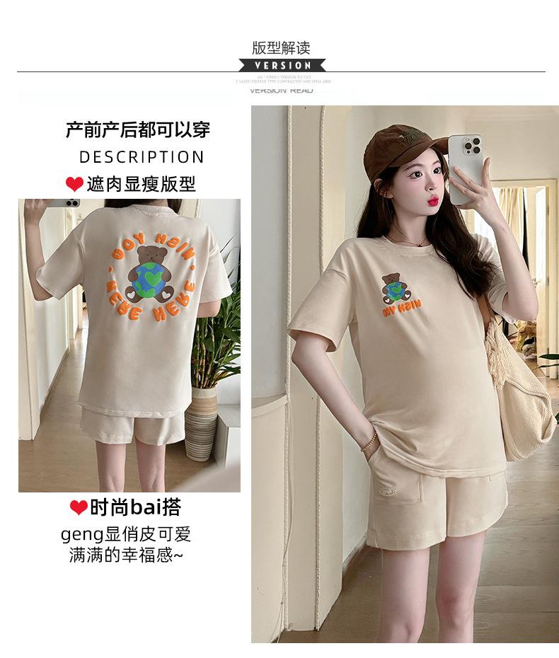 Traje de Mujer Embarazada 2025 Verano Nuevo Camiseta Suelta con Estampado de Letras Pantalones Cortos con Cordón Ajustable en el Vientre Conjunto de Dos Piezas