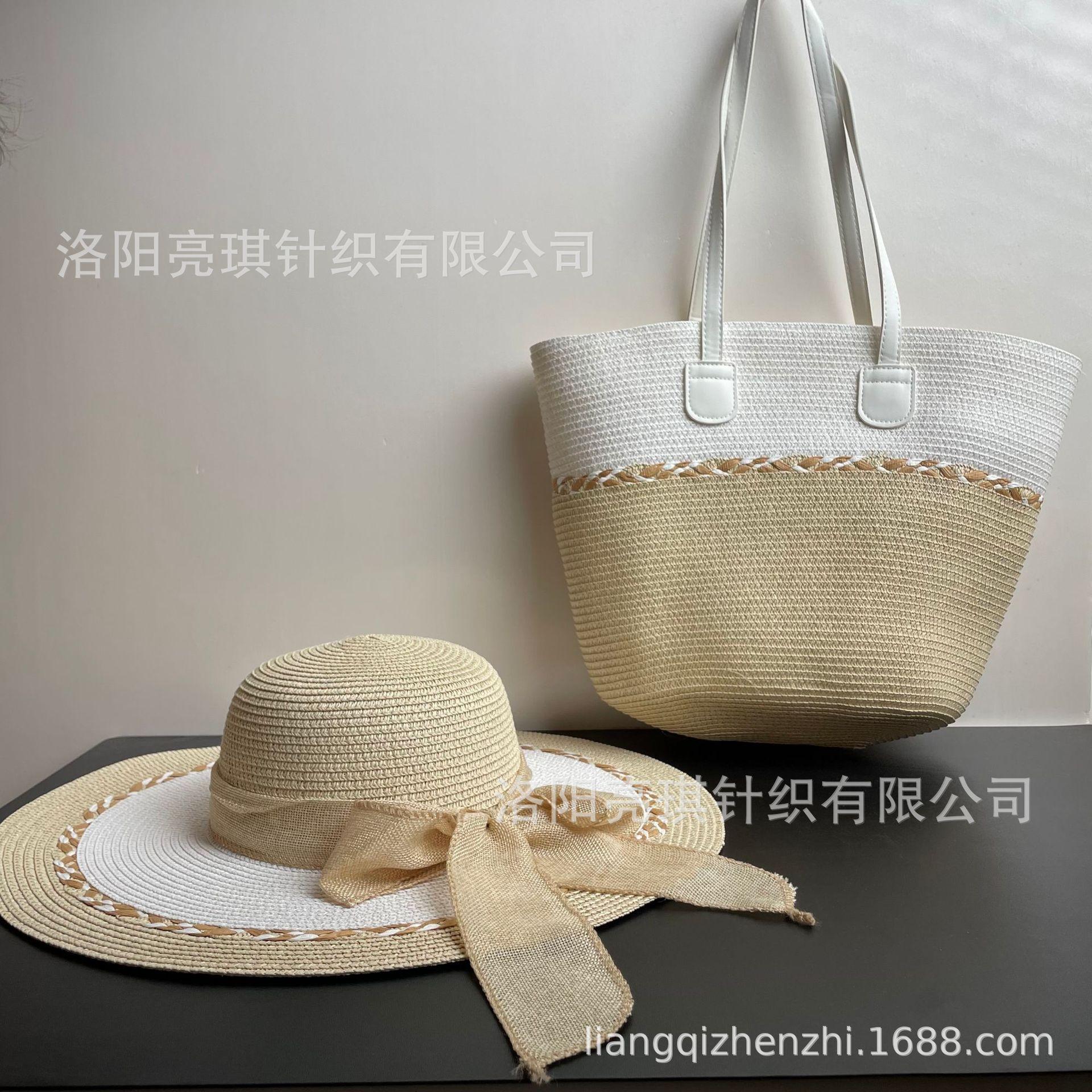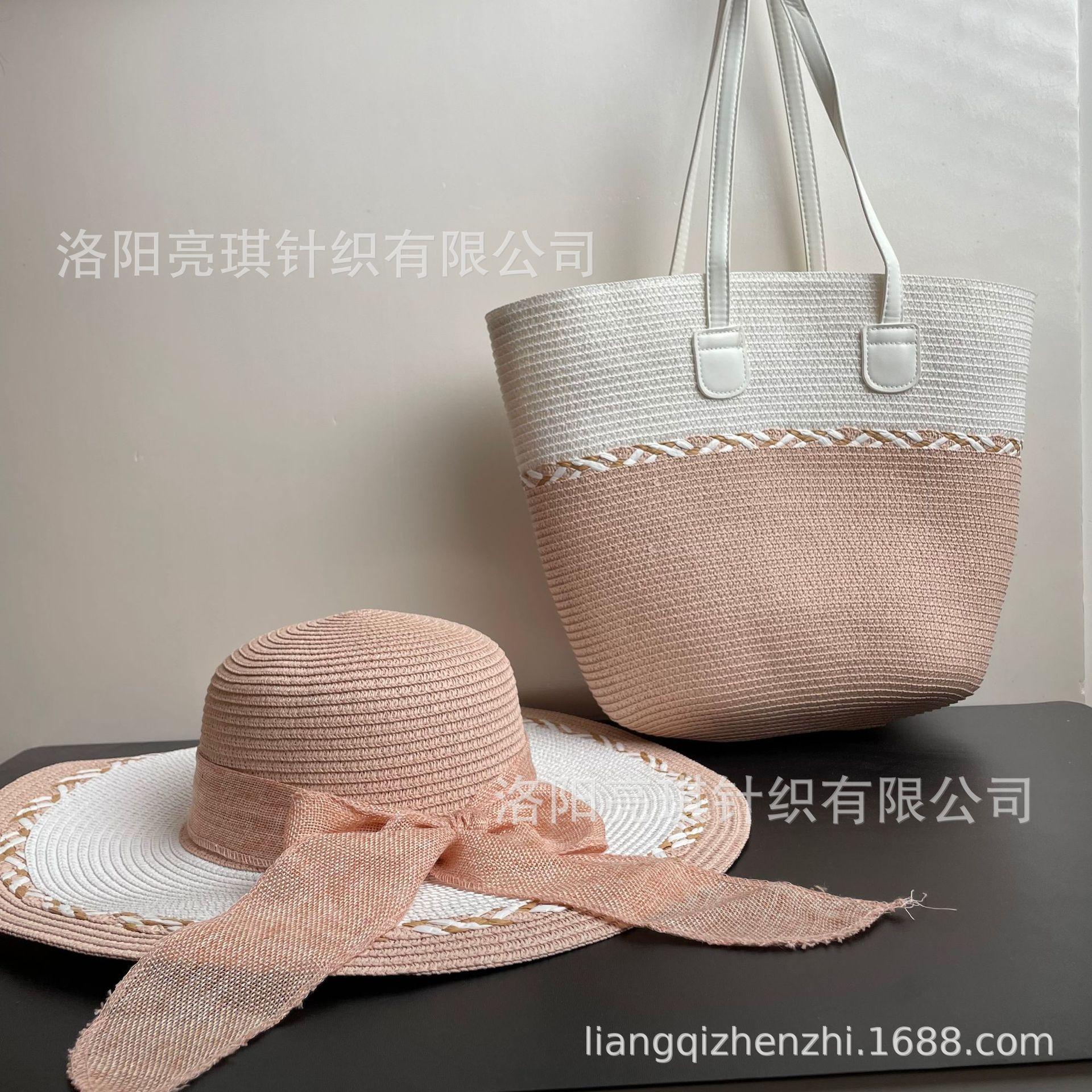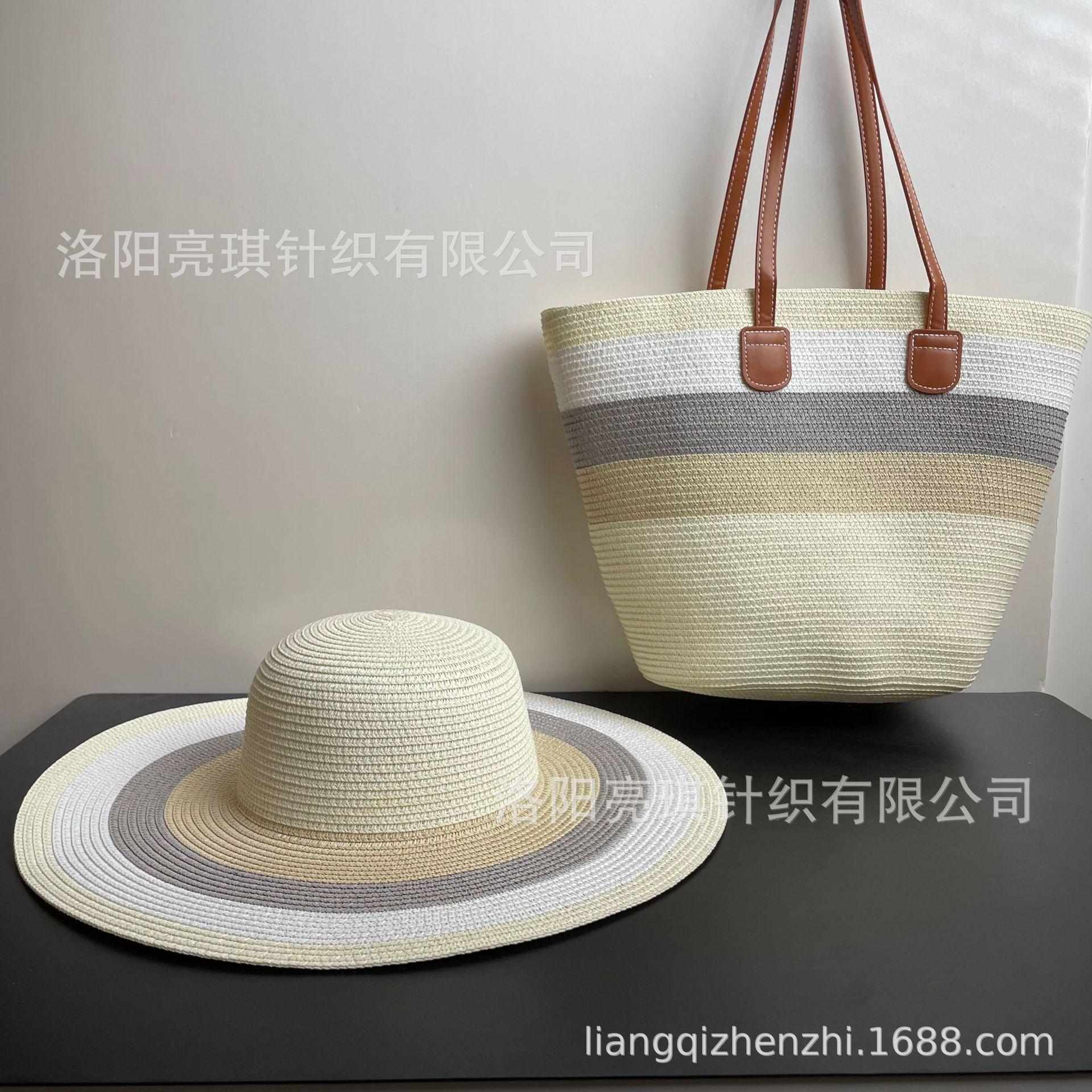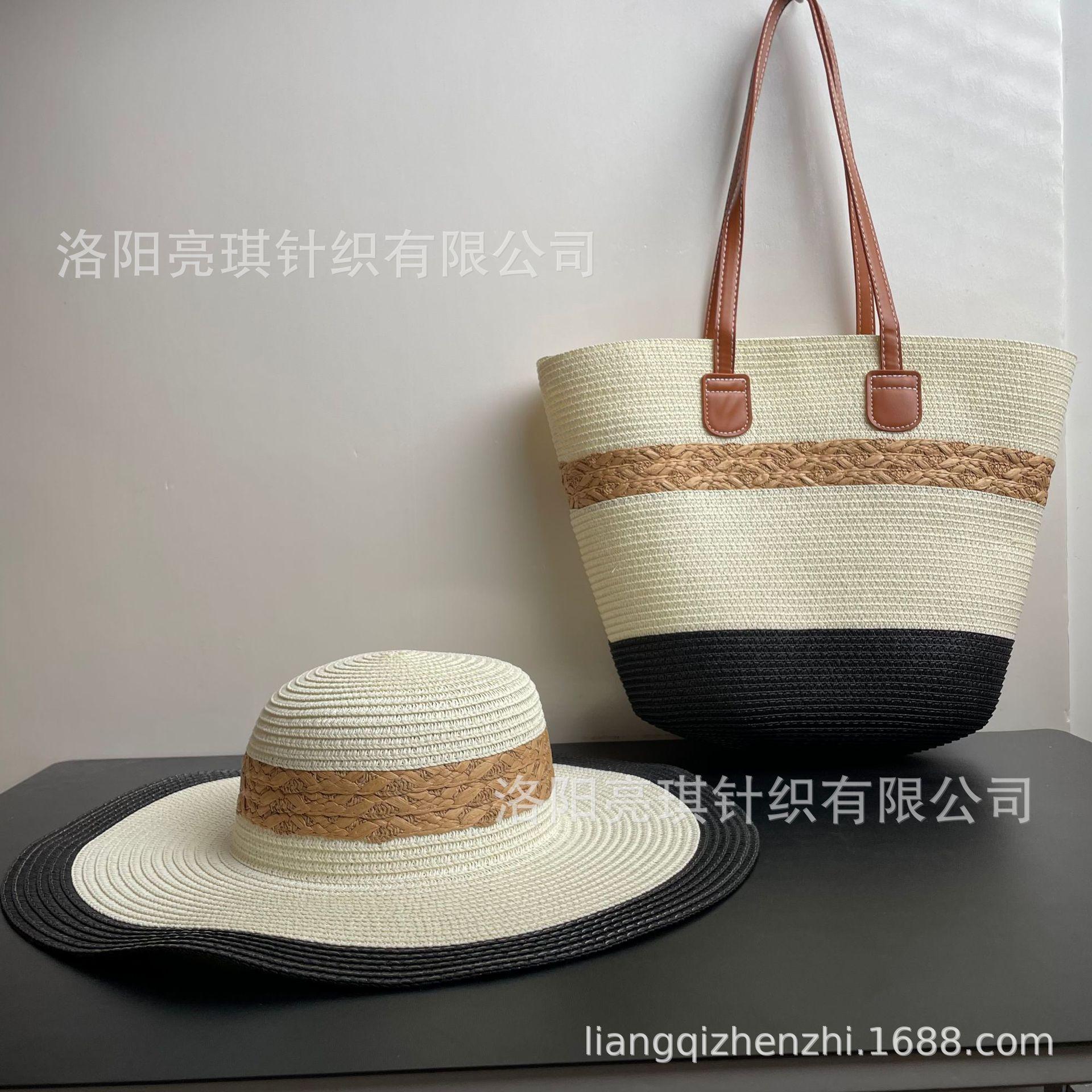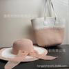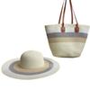 Sombrero de Paja de Ala Ancha para Mujer Viaje Verano Tejido Cúpula Bolso Tipo Cubo Versátil Viaje Playa Mar Conjunto de Sombrero