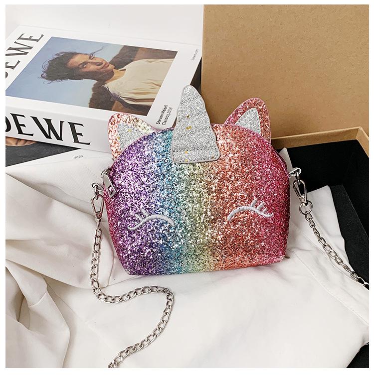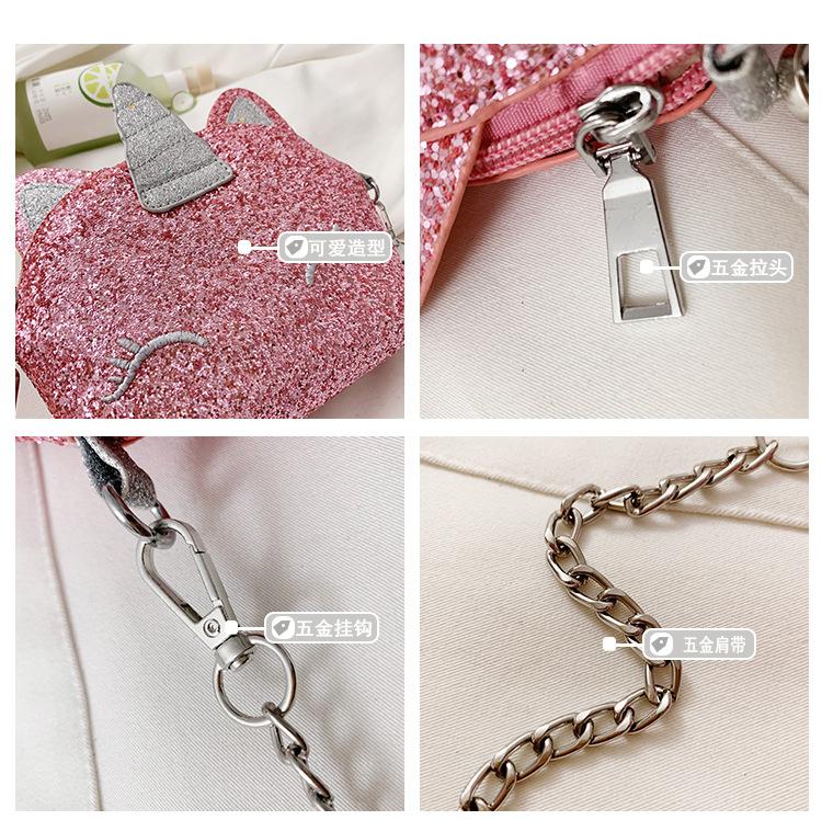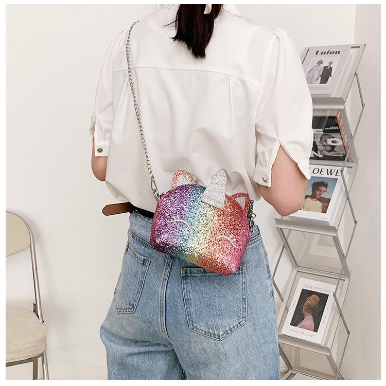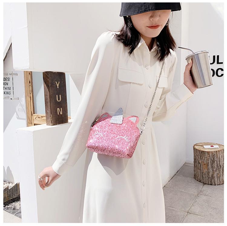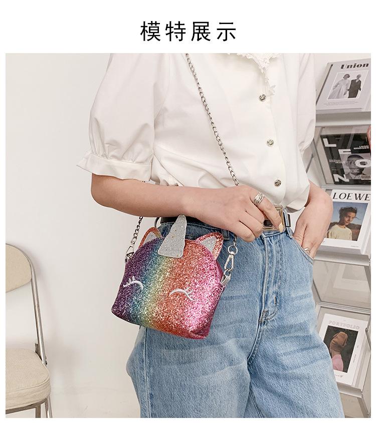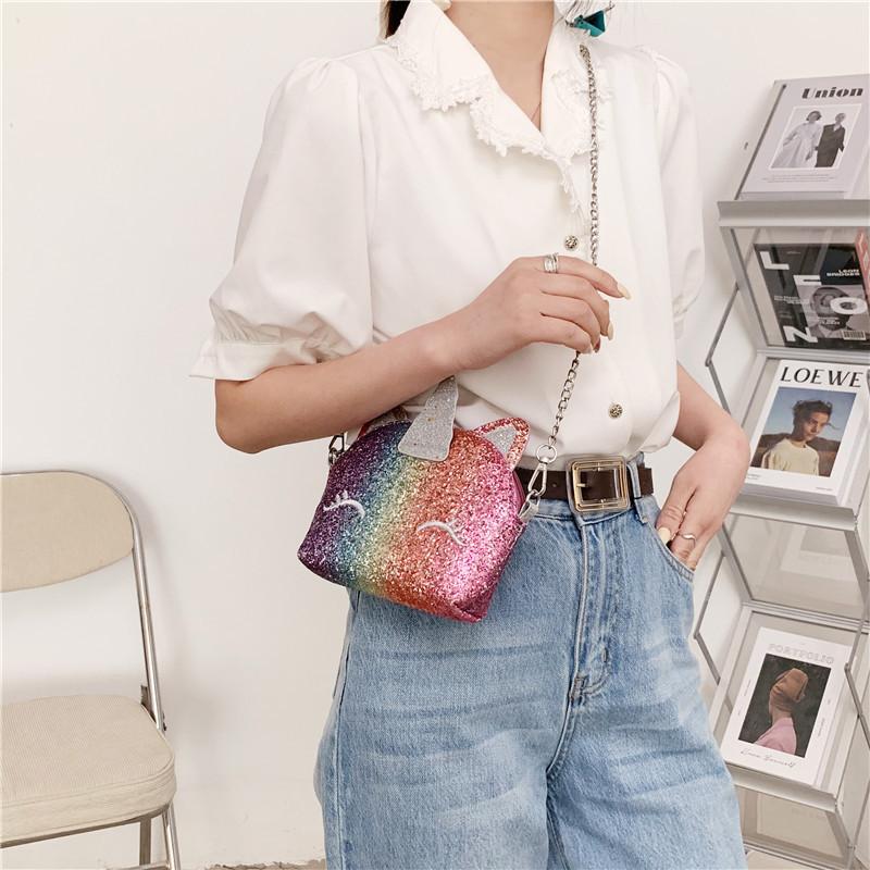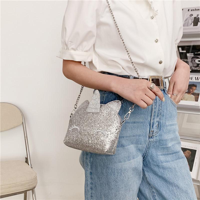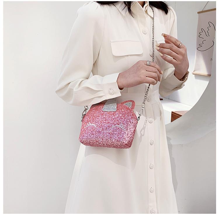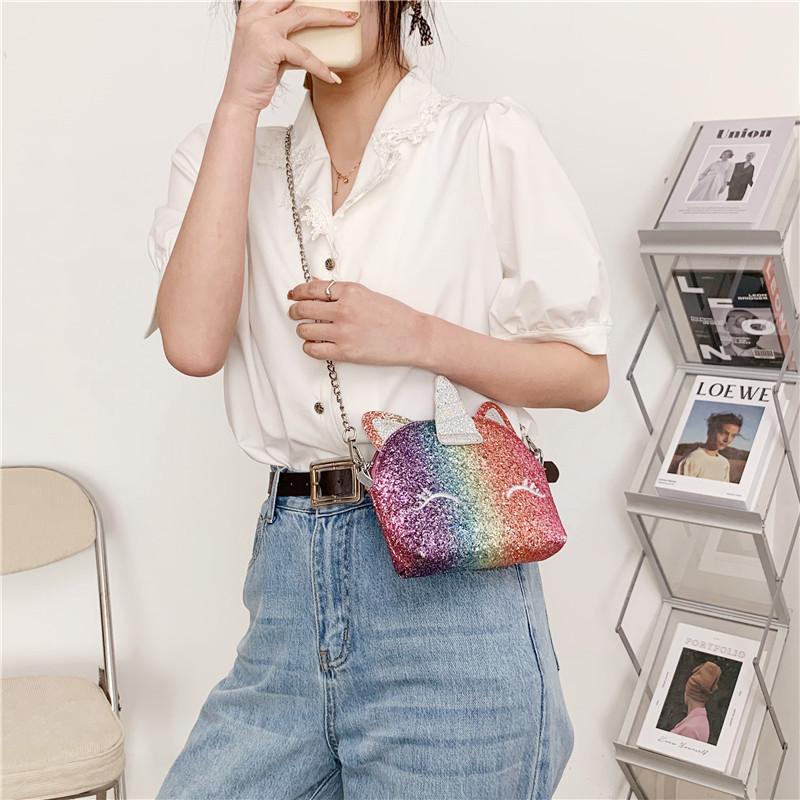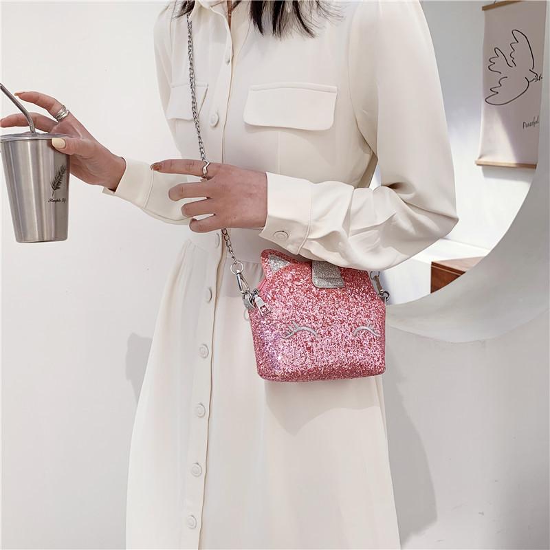 Bolso bandolera de cadena de PU de moda europea y americana personalizado, lindo, divertido, con personalidad, lentejuelas láser, gato bordado, bolso de mujer