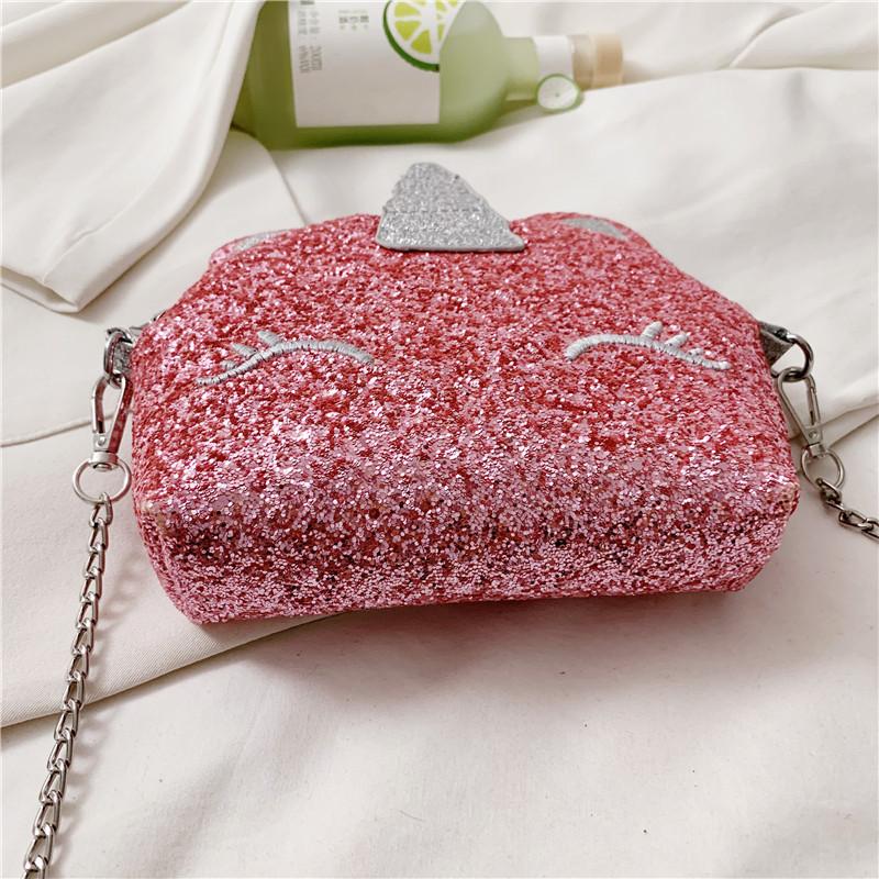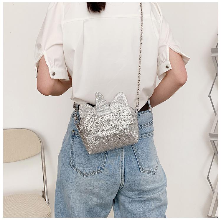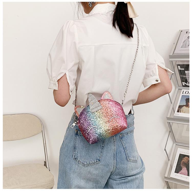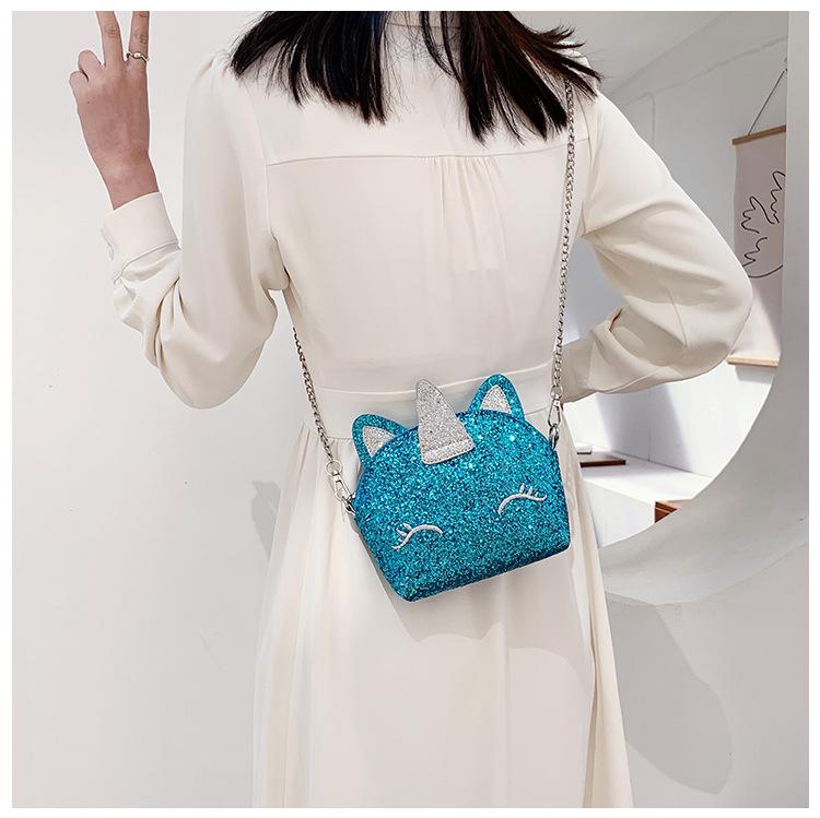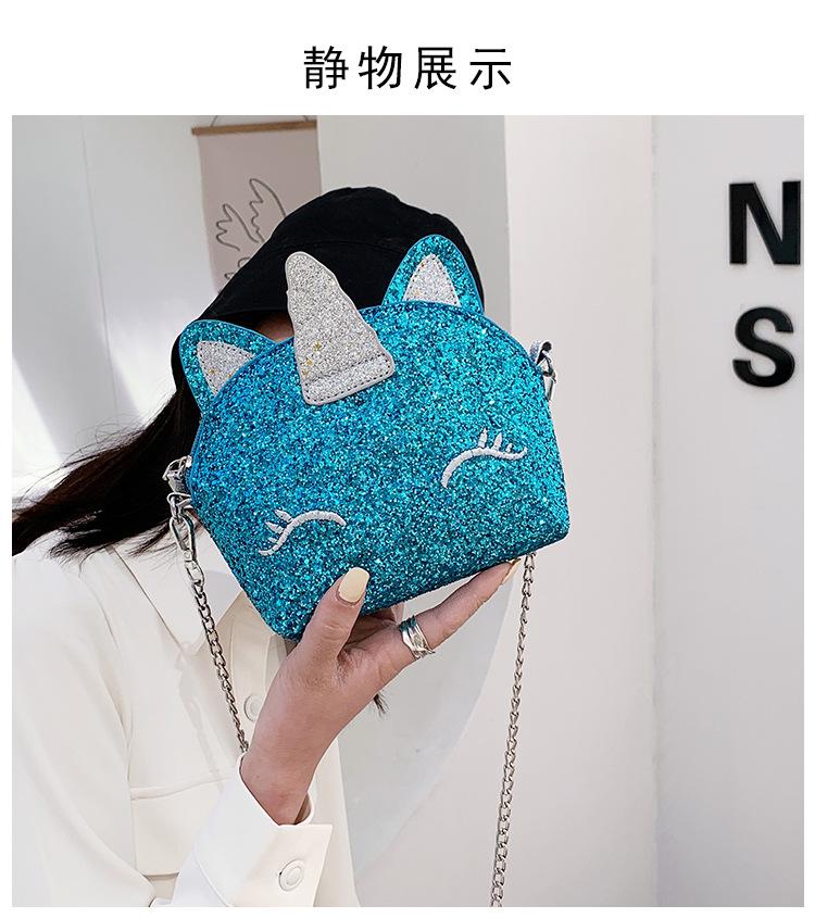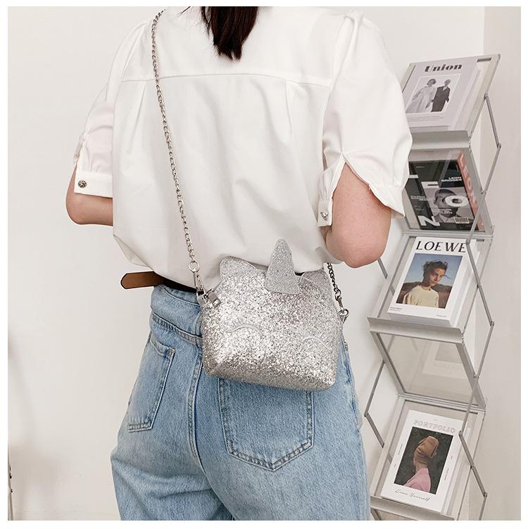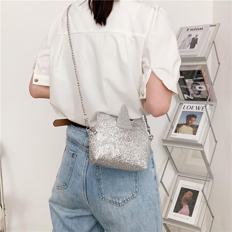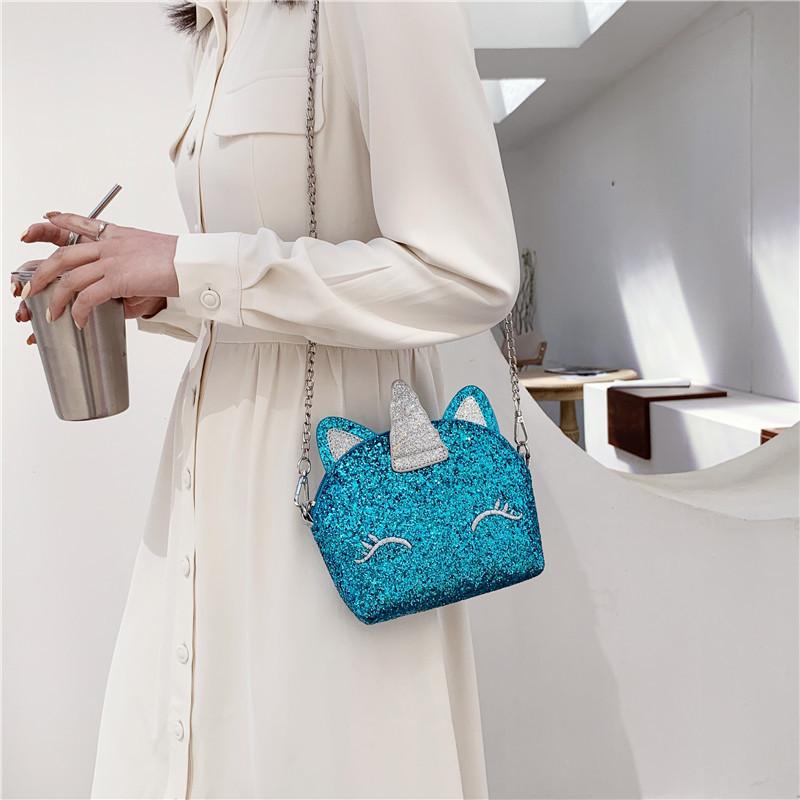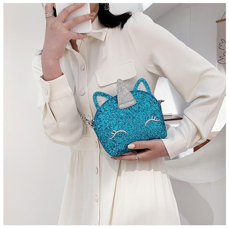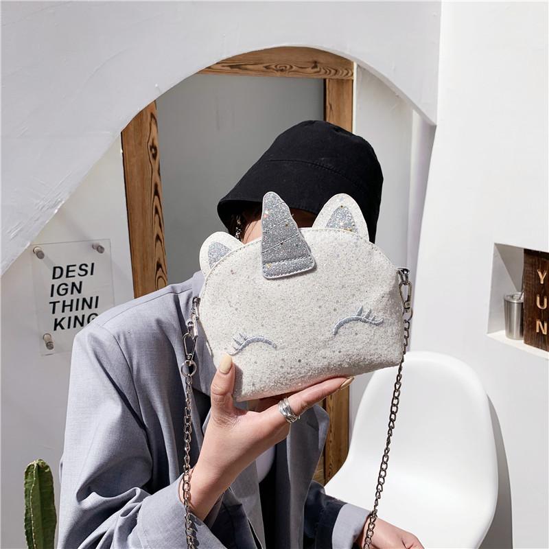 Bolso bandolera de cadena de PU de moda europea y americana personalizado, lindo, divertido, con personalidad, lentejuelas láser, gato bordado, bolso de mujer