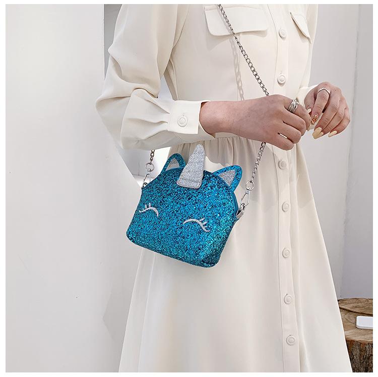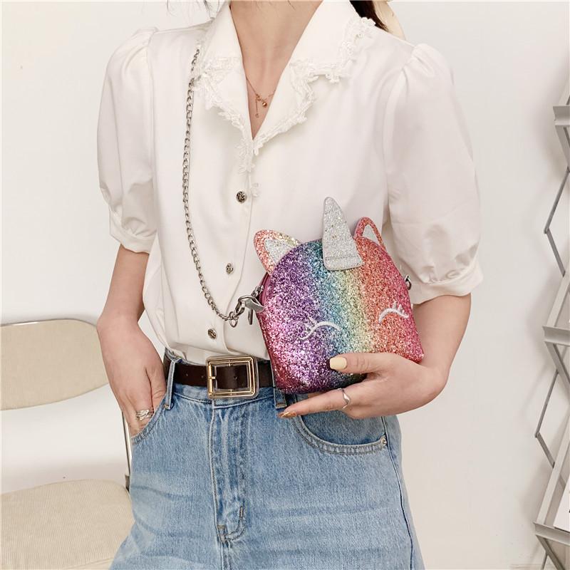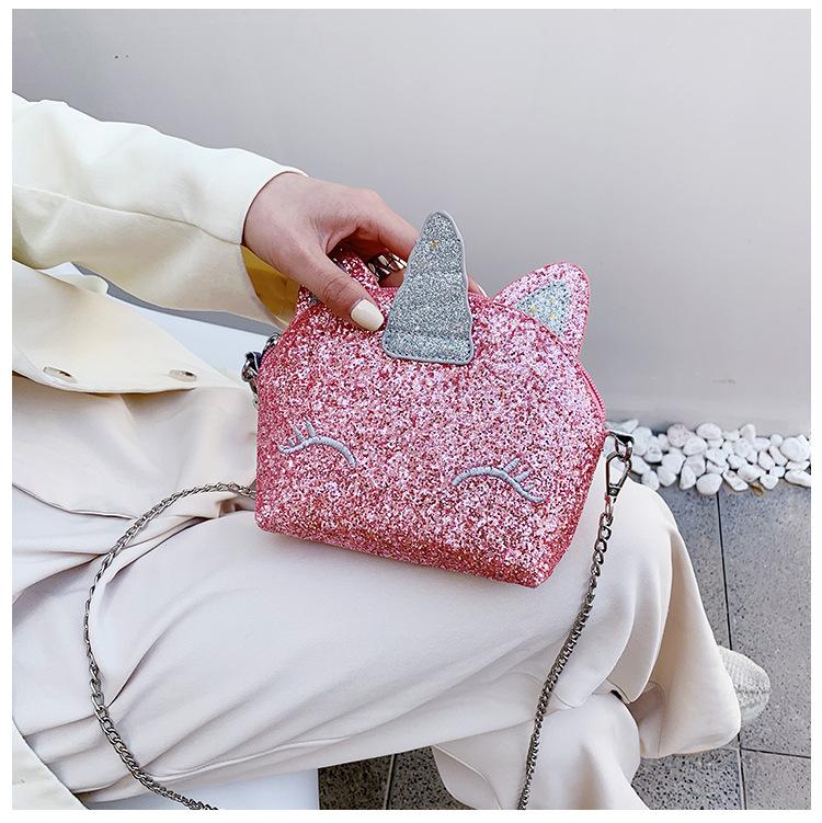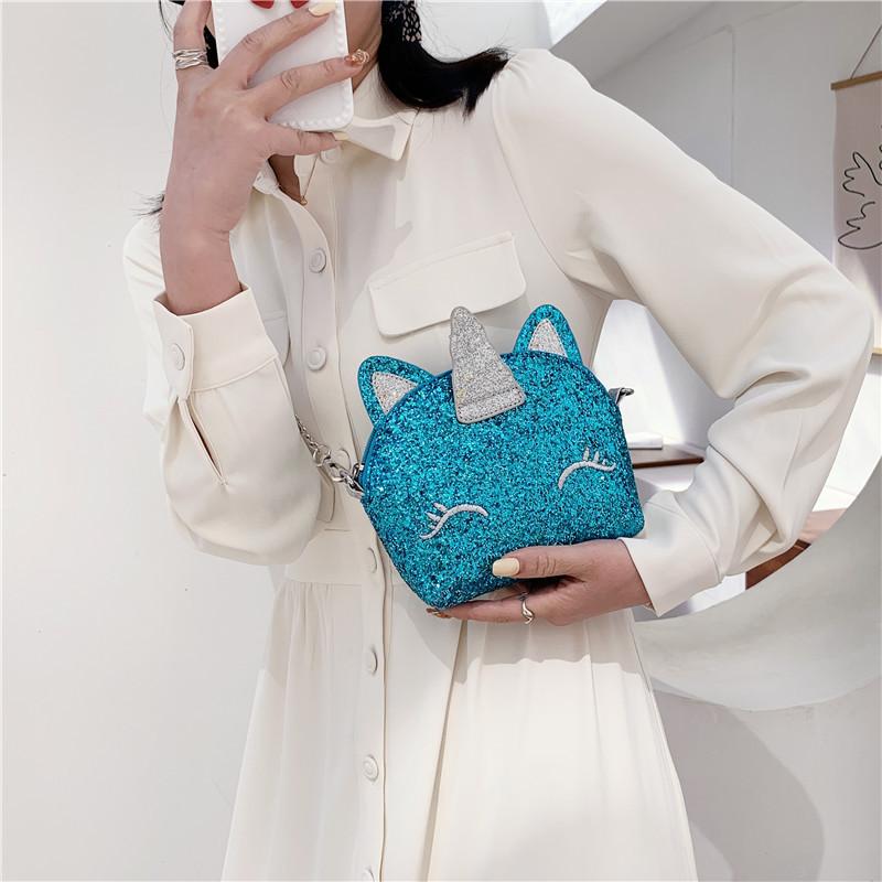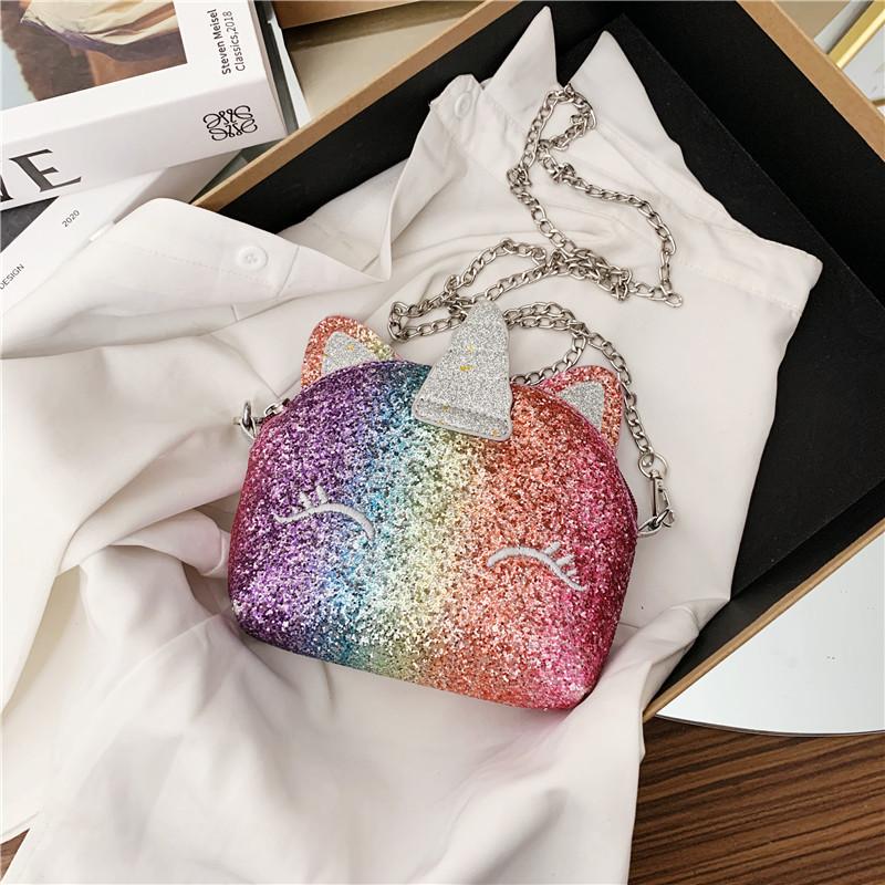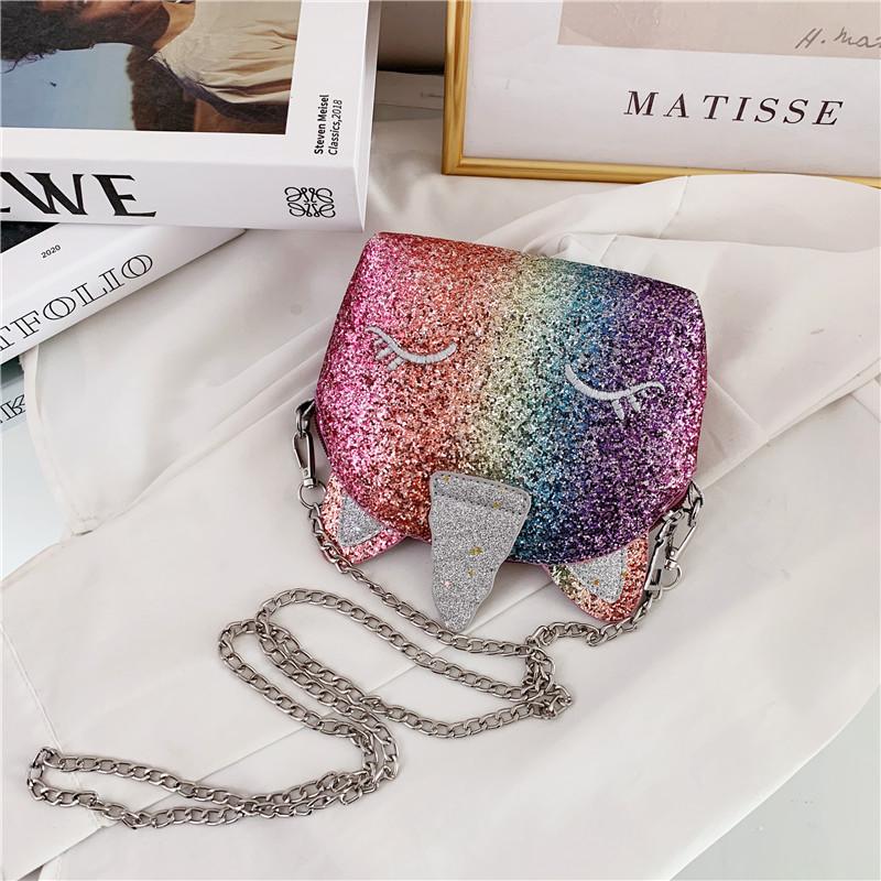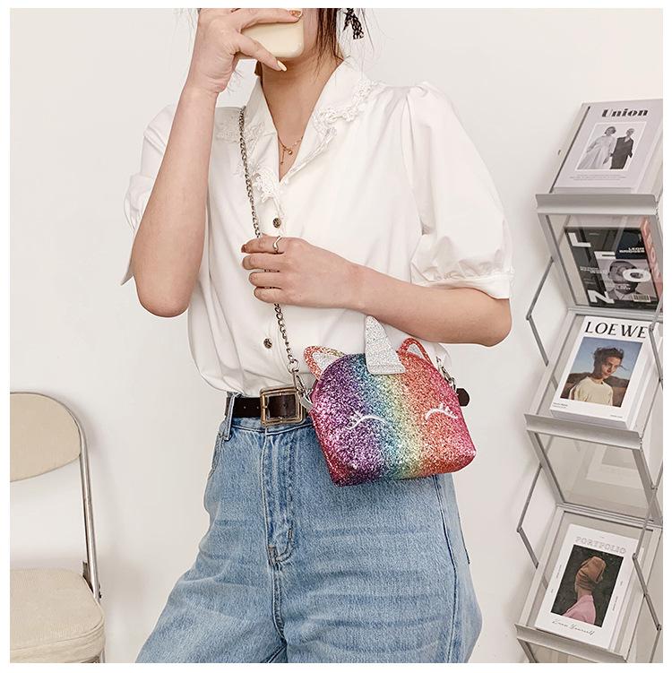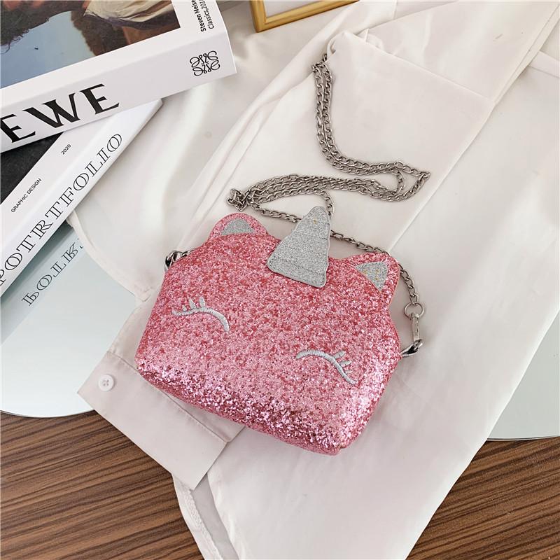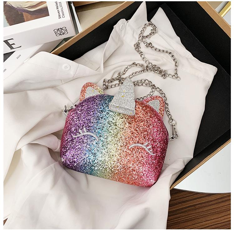 Bolso bandolera de cadena de PU de moda europea y americana personalizado, lindo, divertido, con personalidad, lentejuelas láser, gato bordado, bolso de mujer