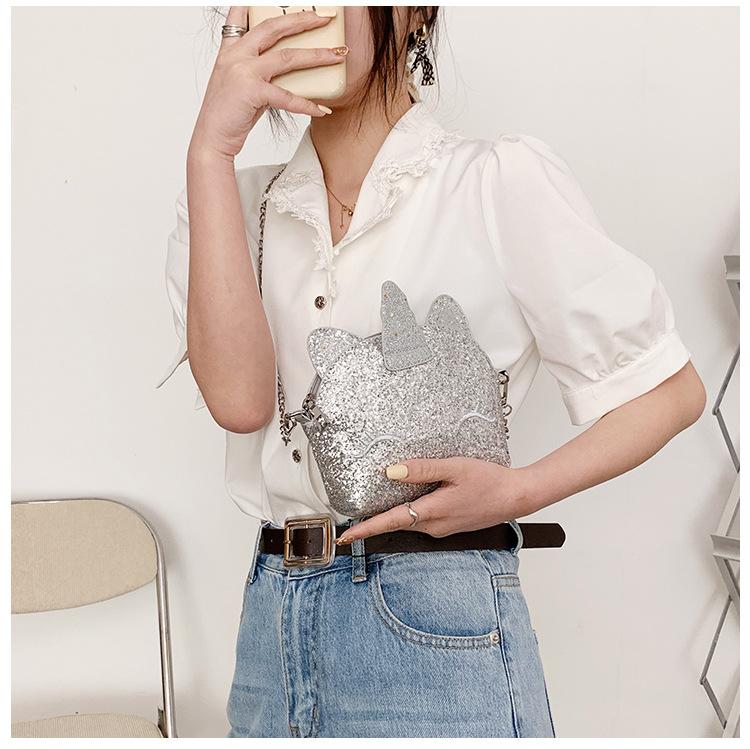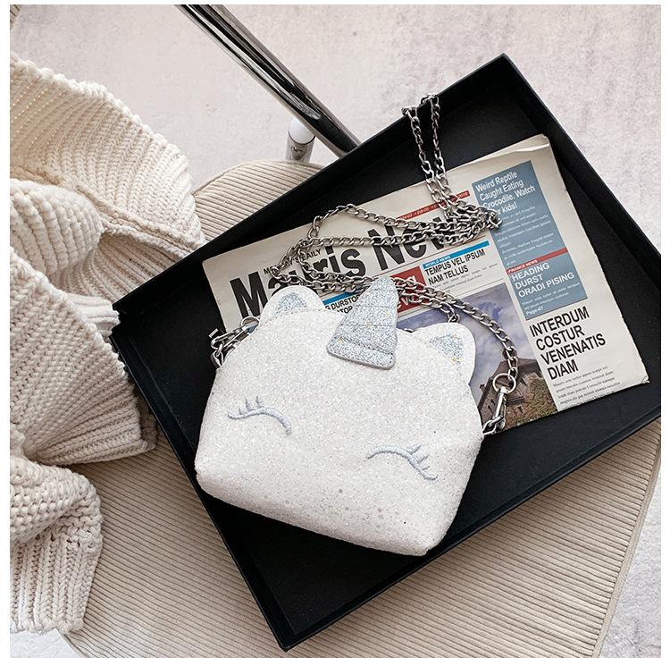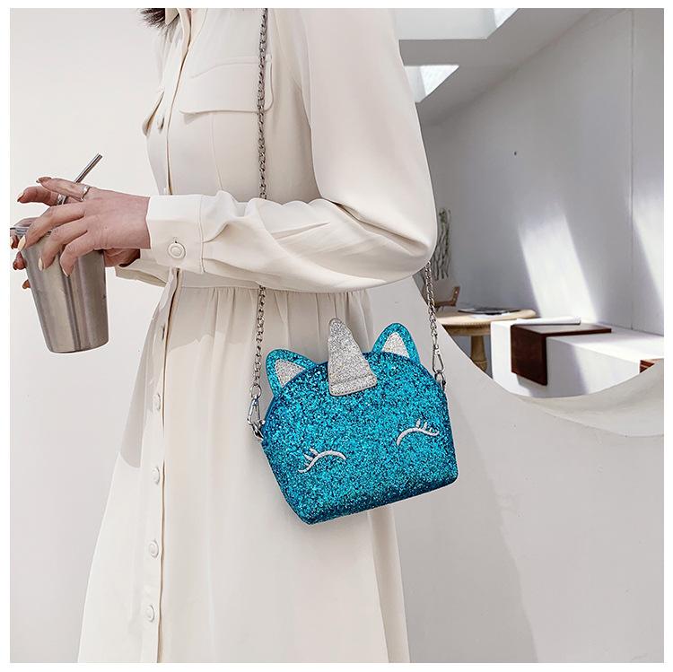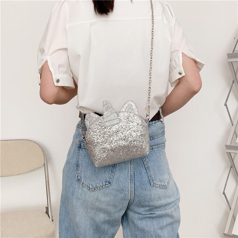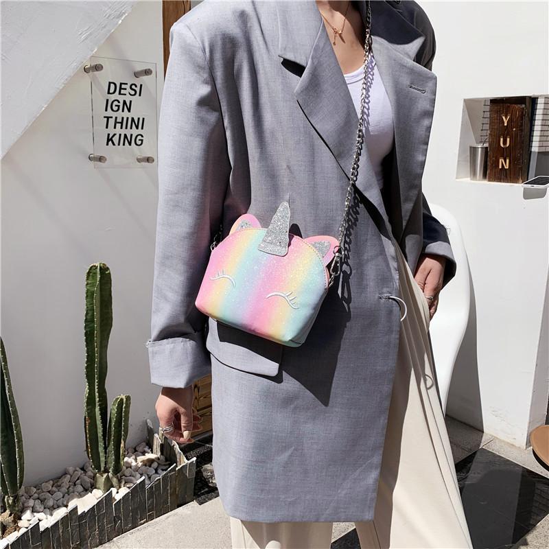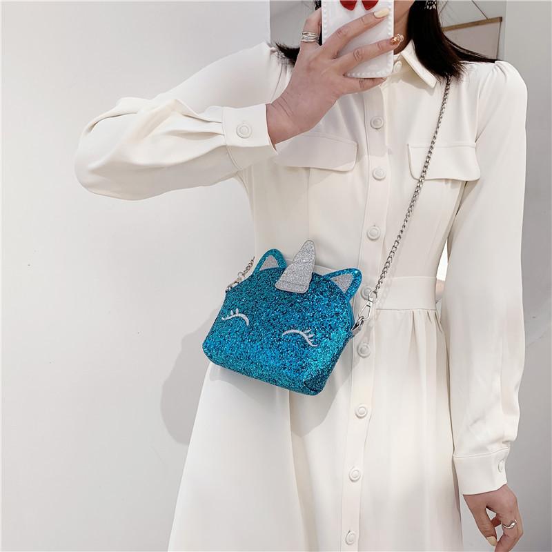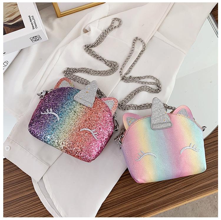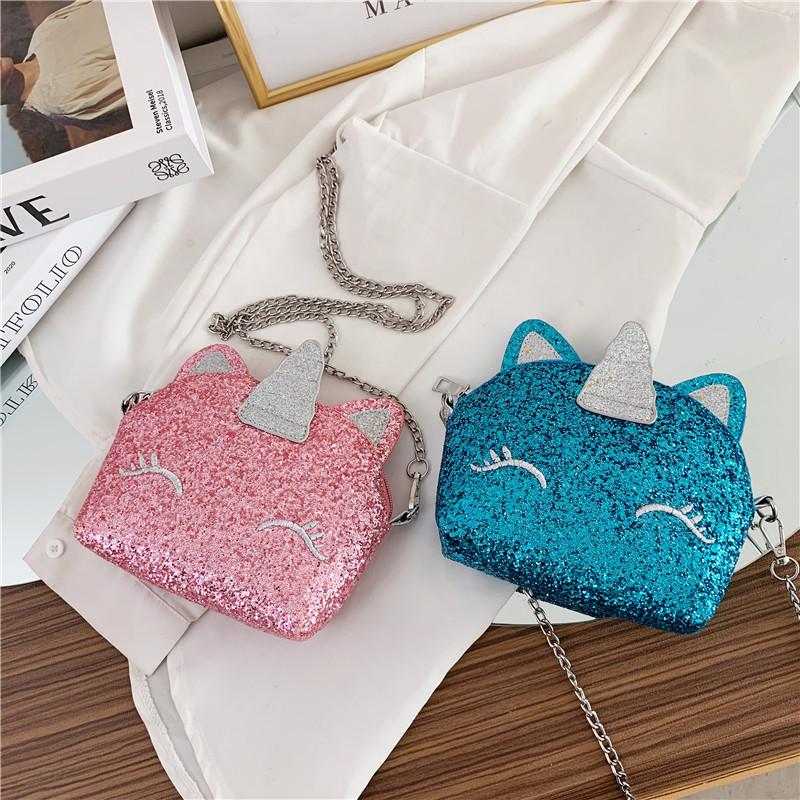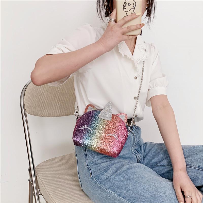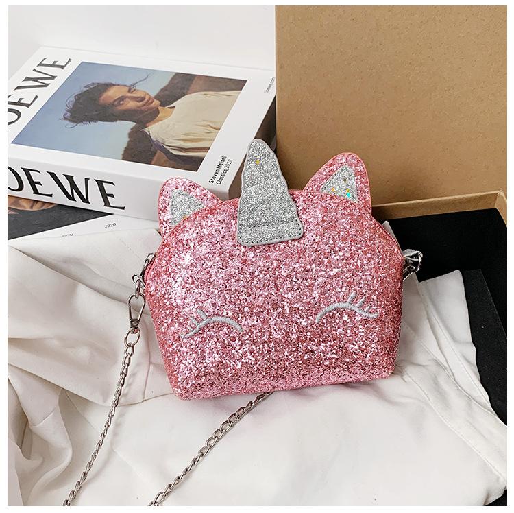 Bolso bandolera de cadena de PU de moda europea y americana personalizado, lindo, divertido, con personalidad, lentejuelas láser, gato bordado, bolso de mujer