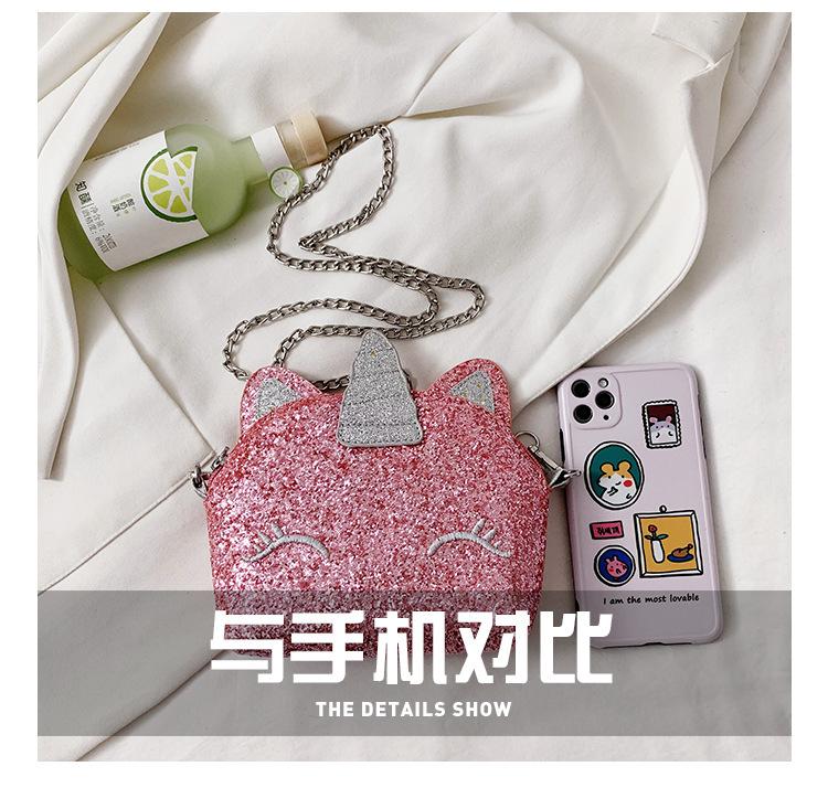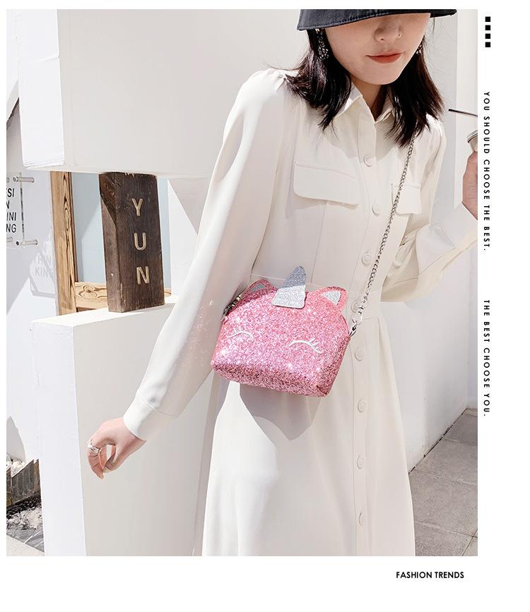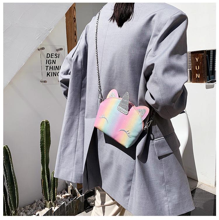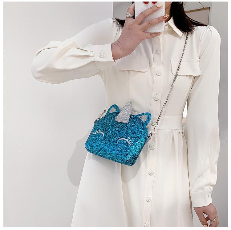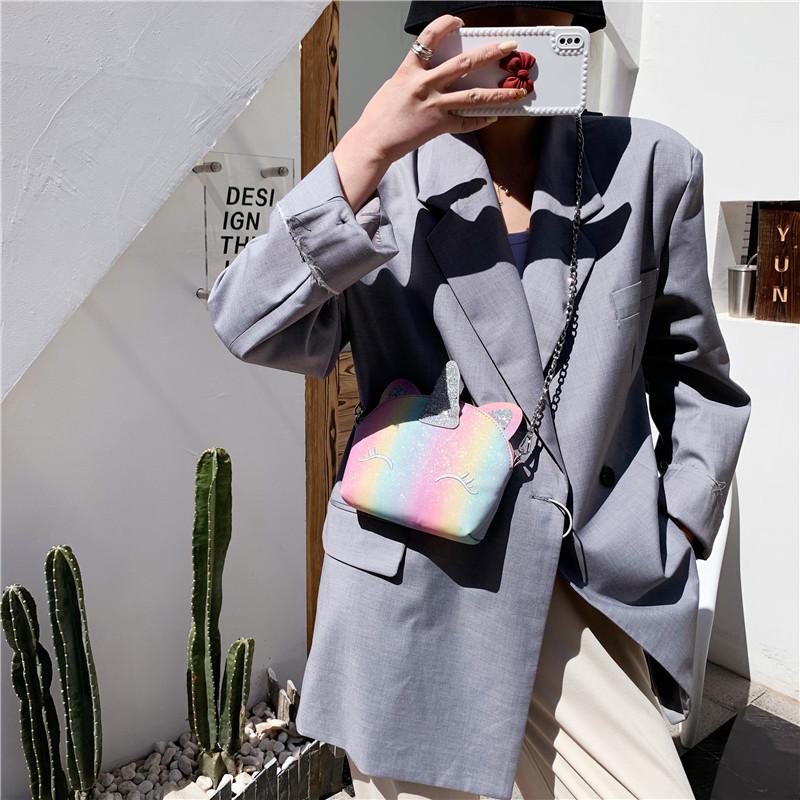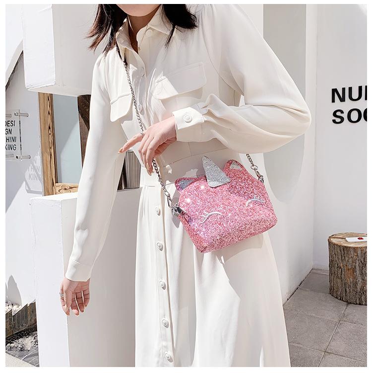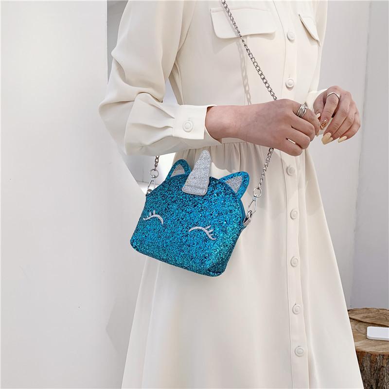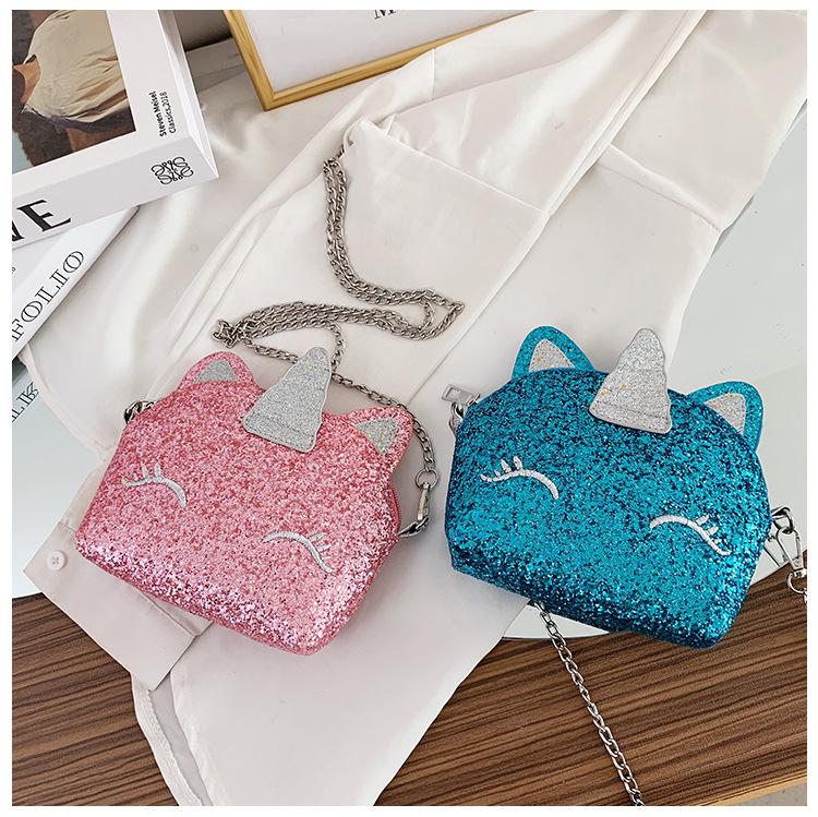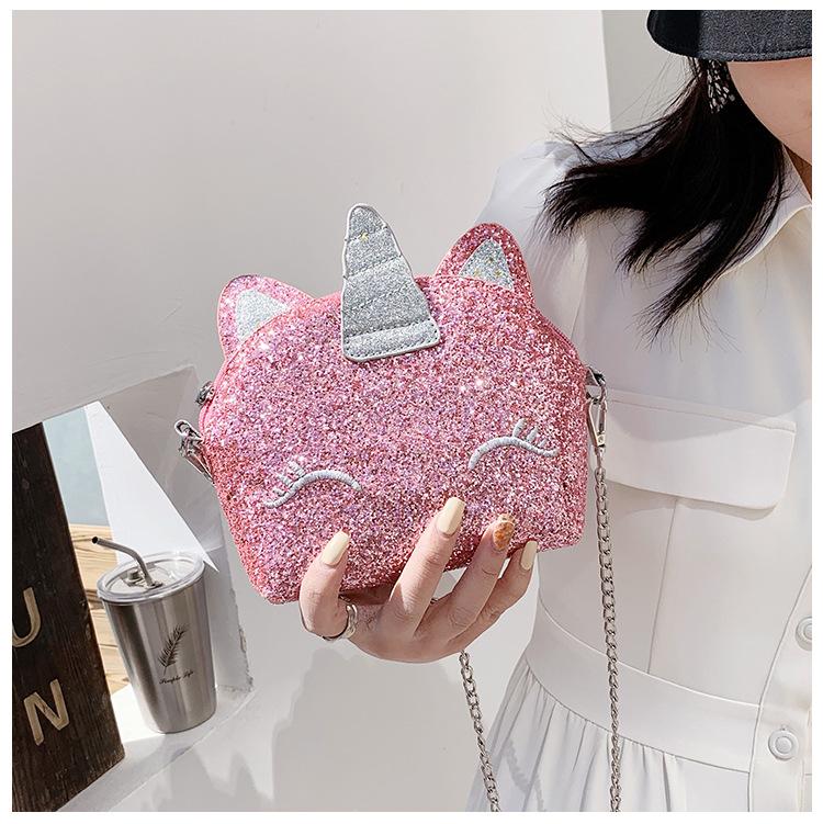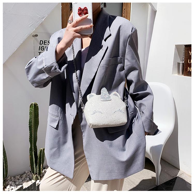Bolso bandolera de cadena de PU de moda europea y americana personalizado, lindo, divertido, con personalidad, lentejuelas láser, gato bordado, bolso de mujer