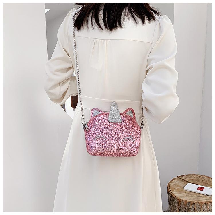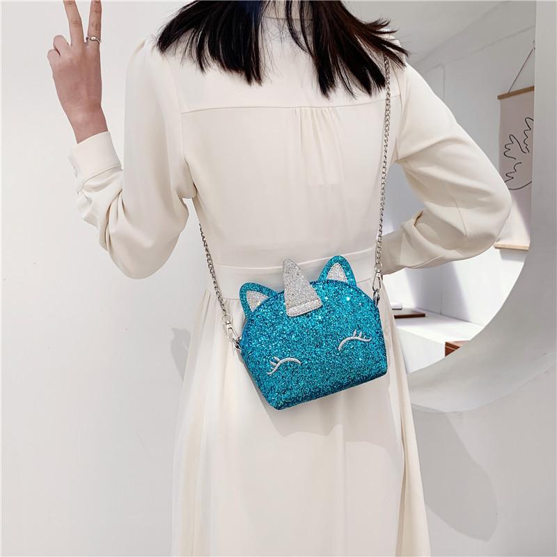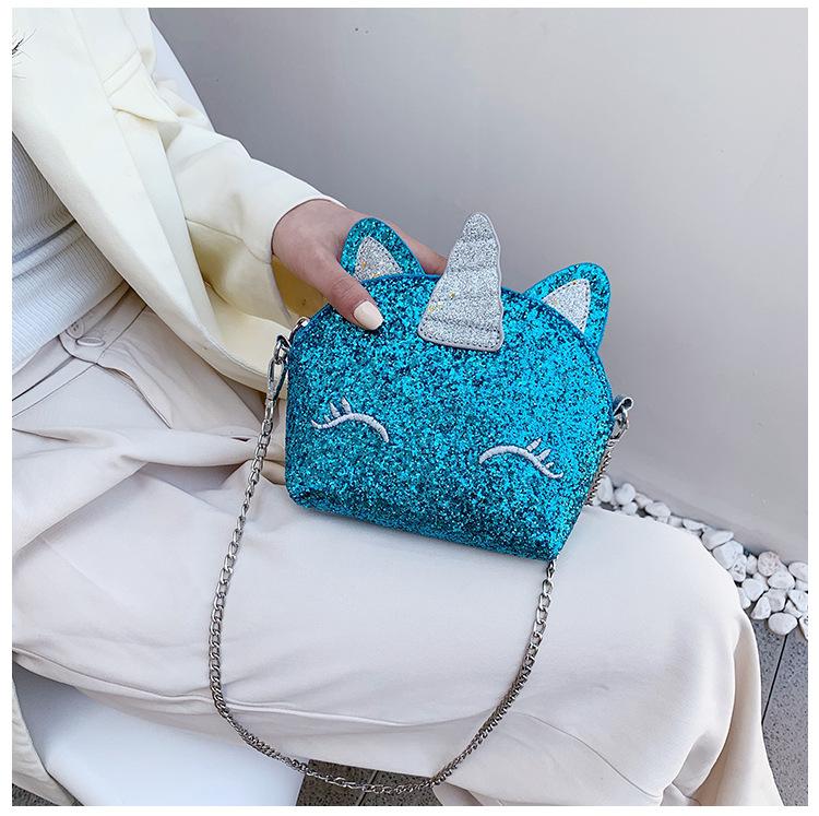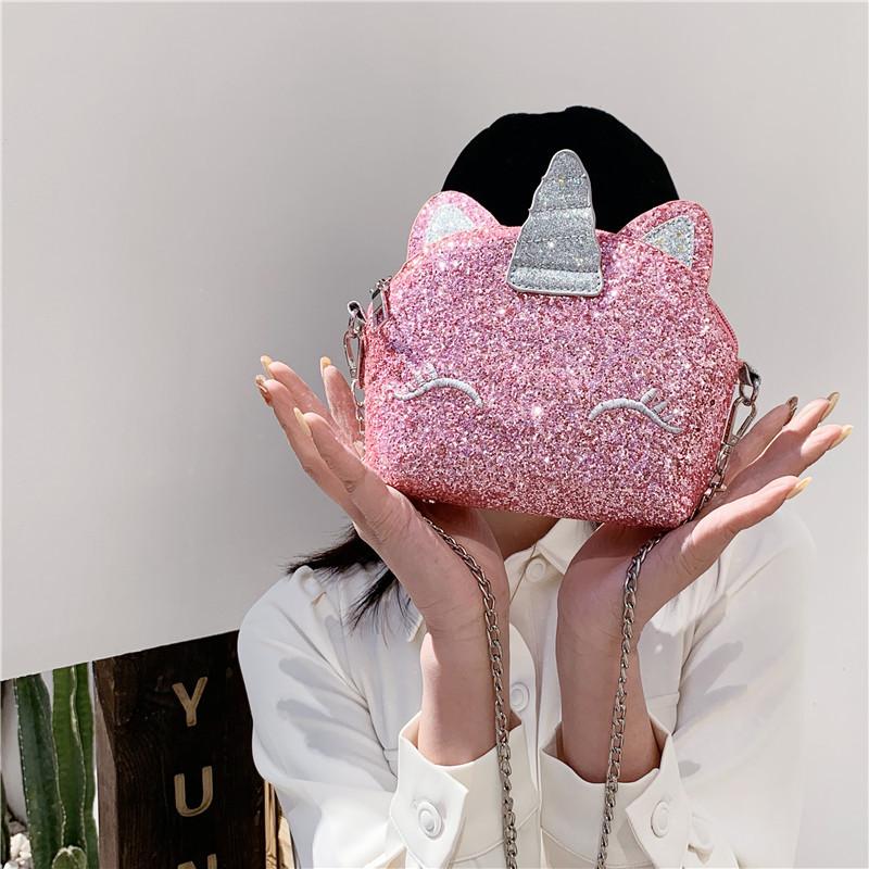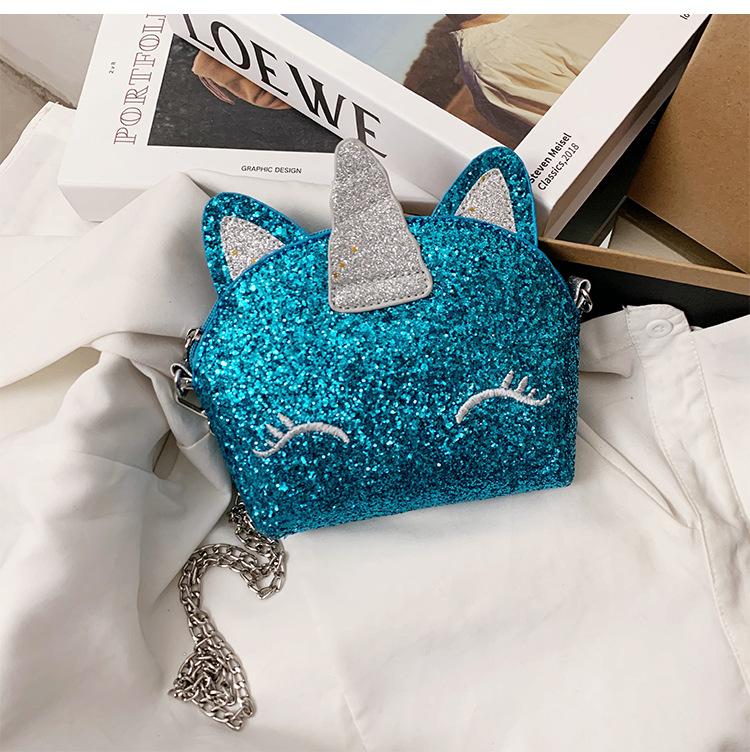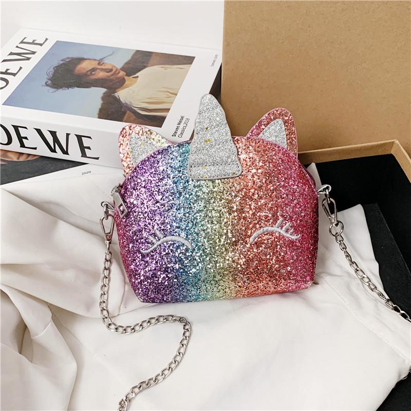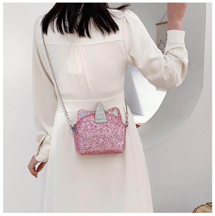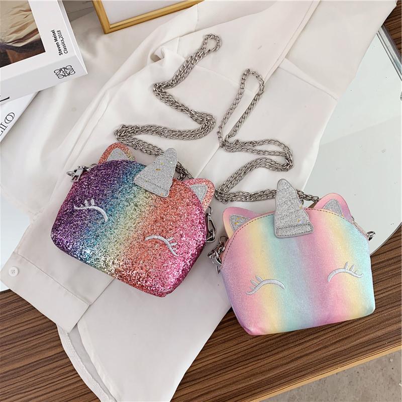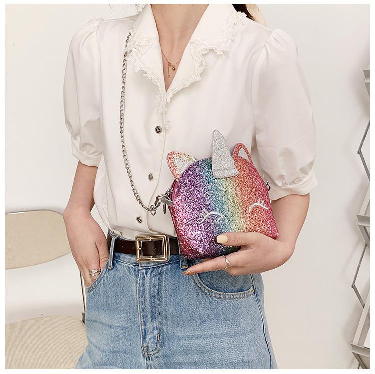 Bolso bandolera de cadena de PU de moda europea y americana personalizado, lindo, divertido, con personalidad, lentejuelas láser, gato bordado, bolso de mujer