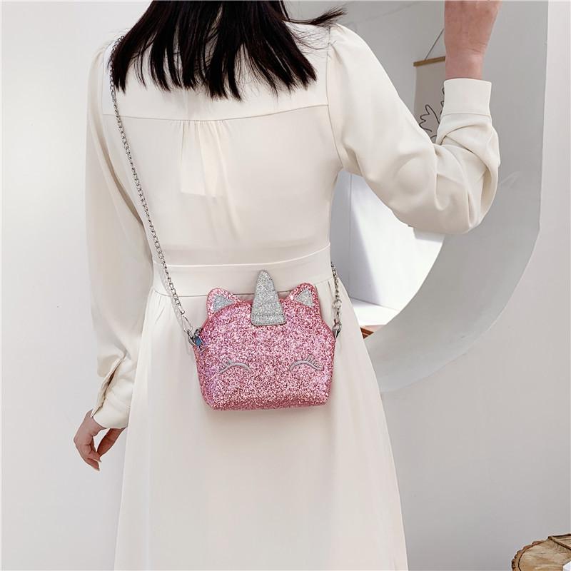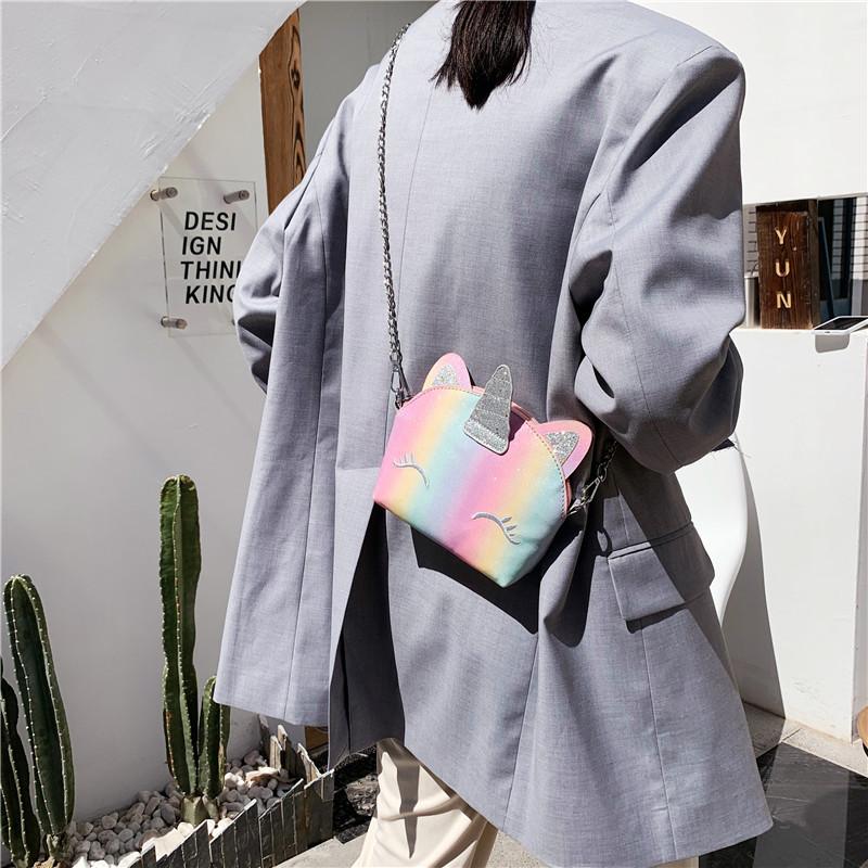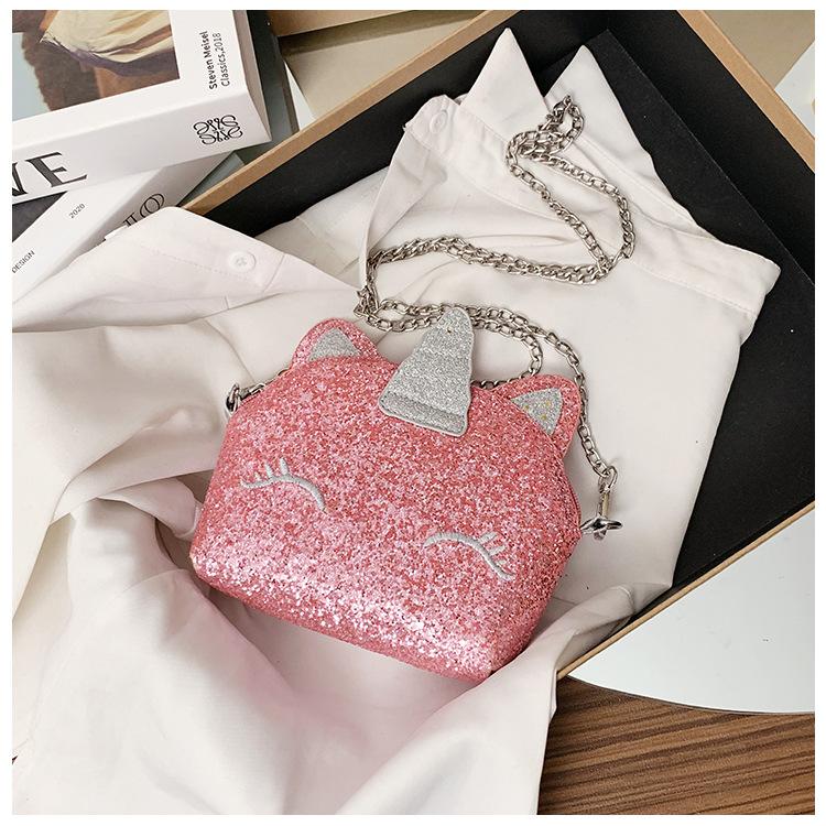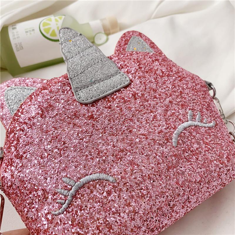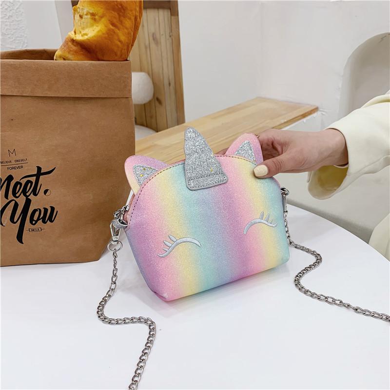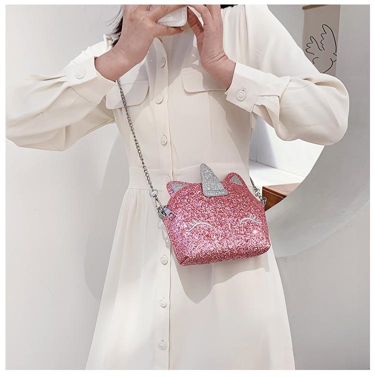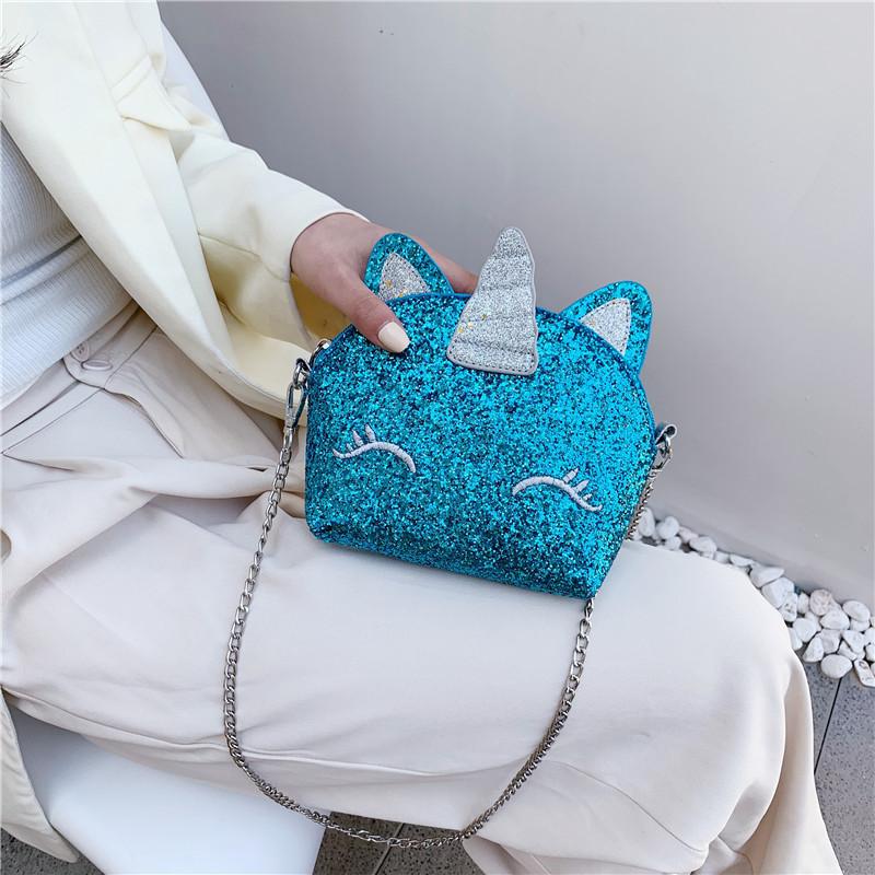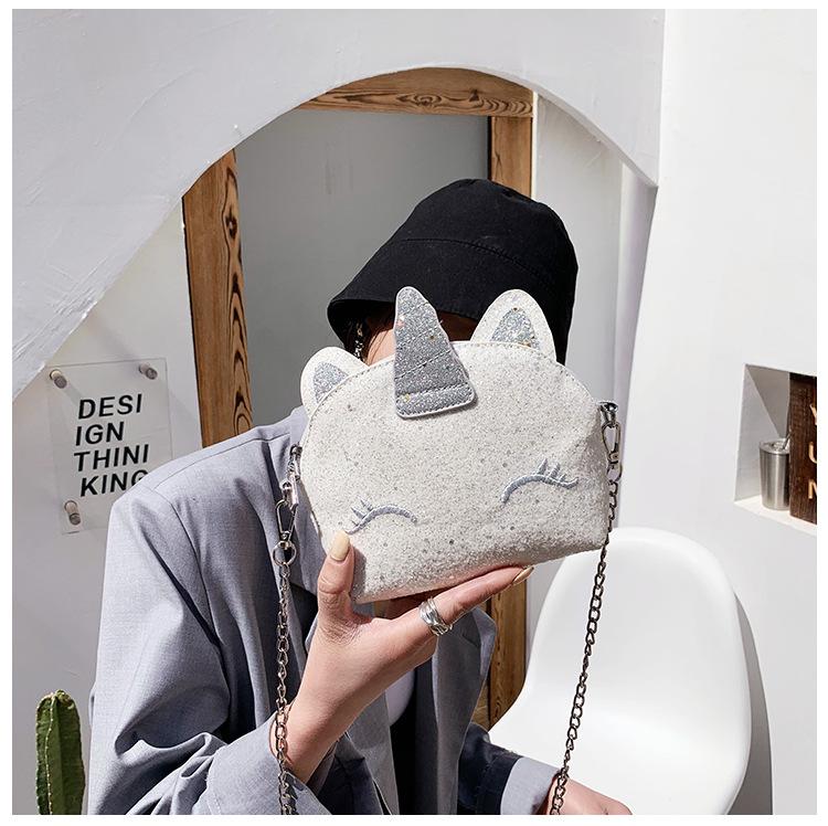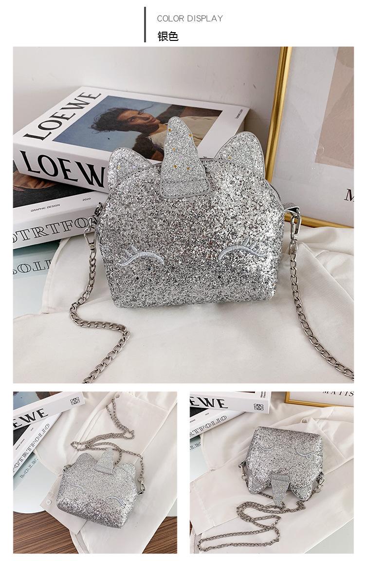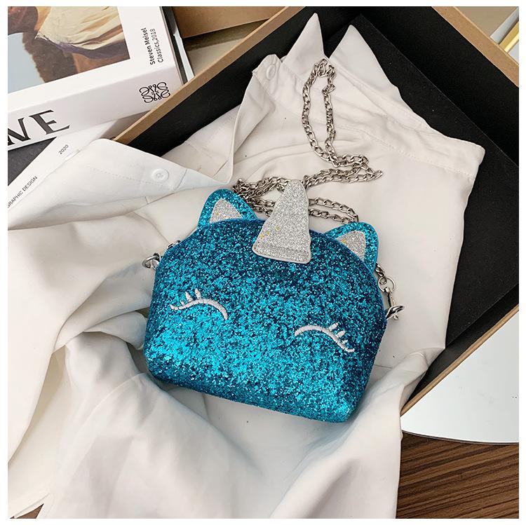 Bolso bandolera de cadena de PU de moda europea y americana personalizado, lindo, divertido, con personalidad, lentejuelas láser, gato bordado, bolso de mujer