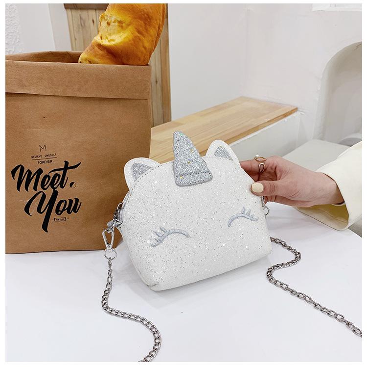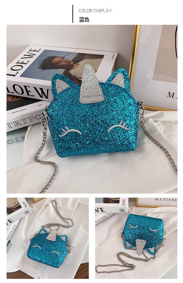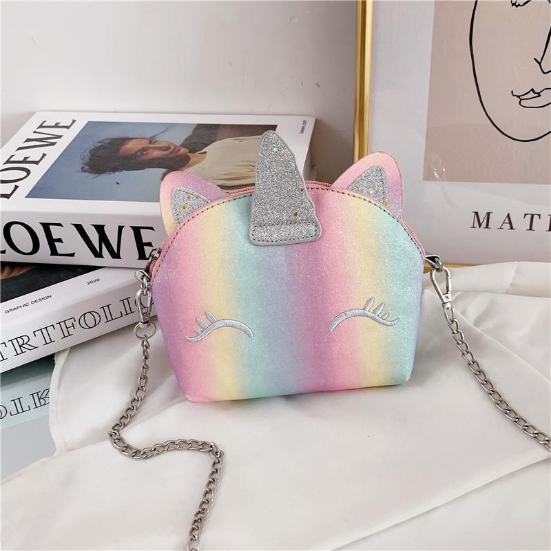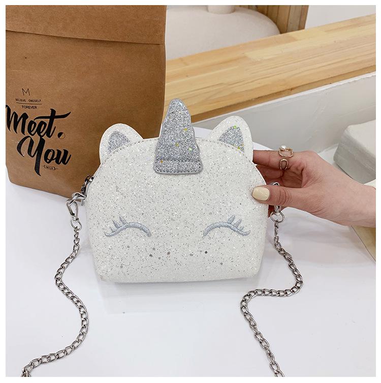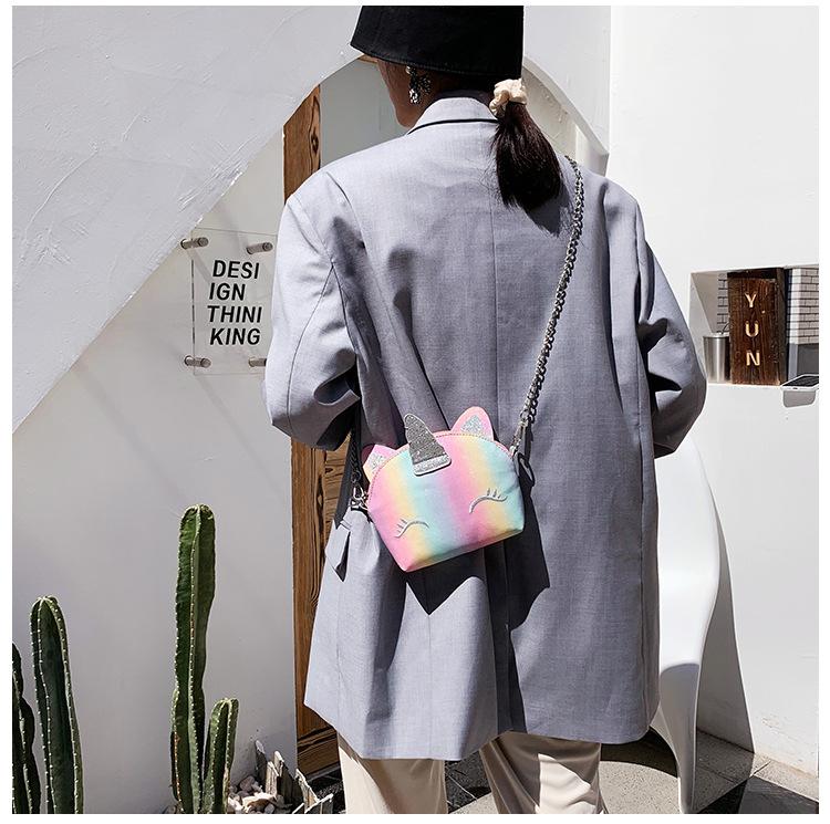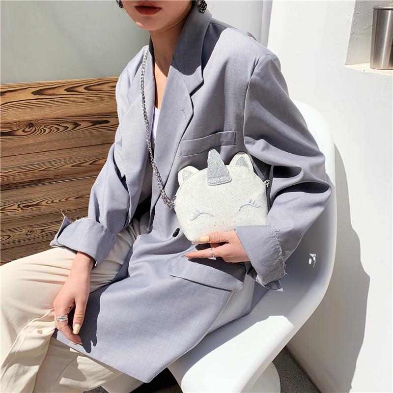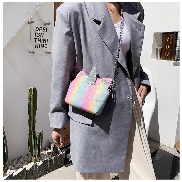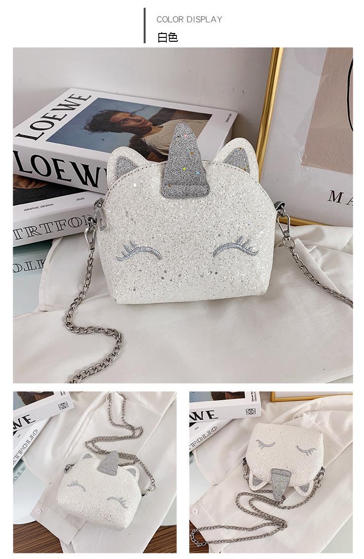 Bolso bandolera de cadena de PU de moda europea y americana personalizado, lindo, divertido, con personalidad, lentejuelas láser, gato bordado, bolso de mujer
