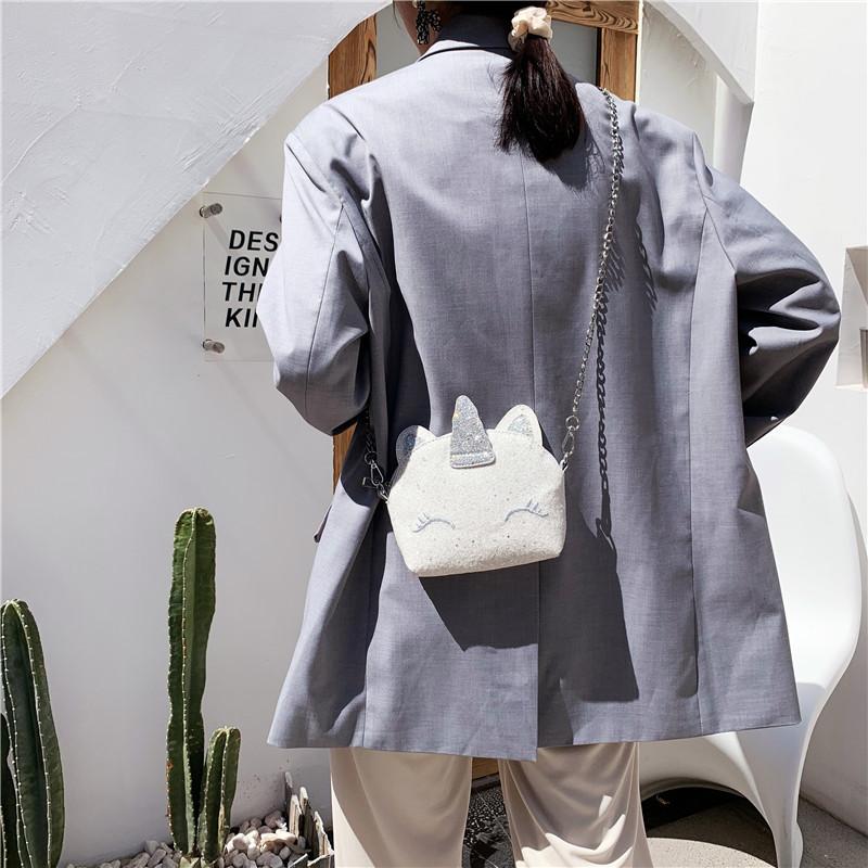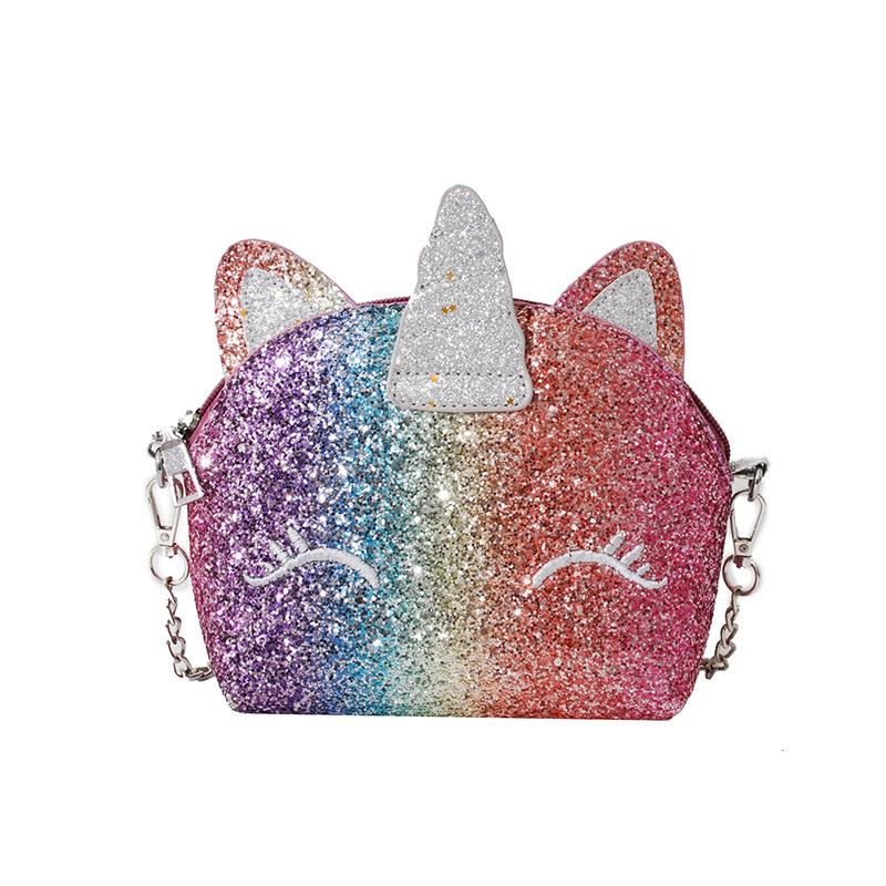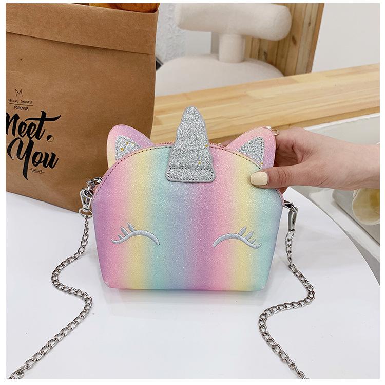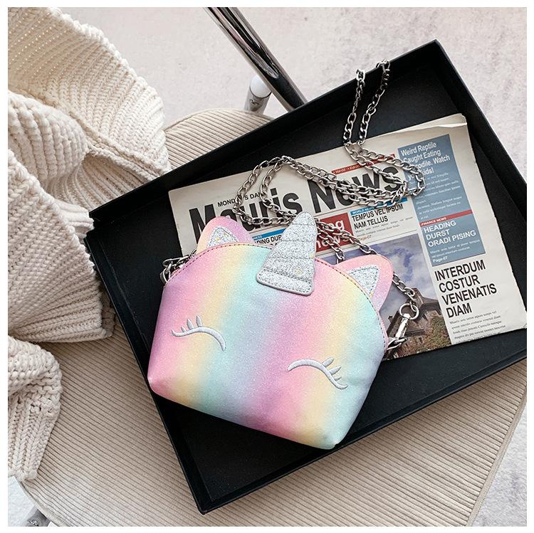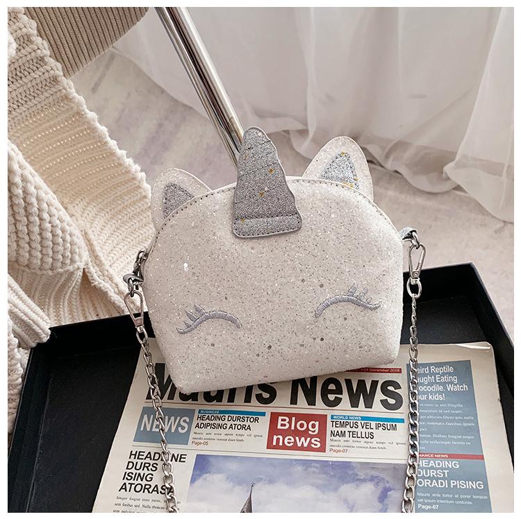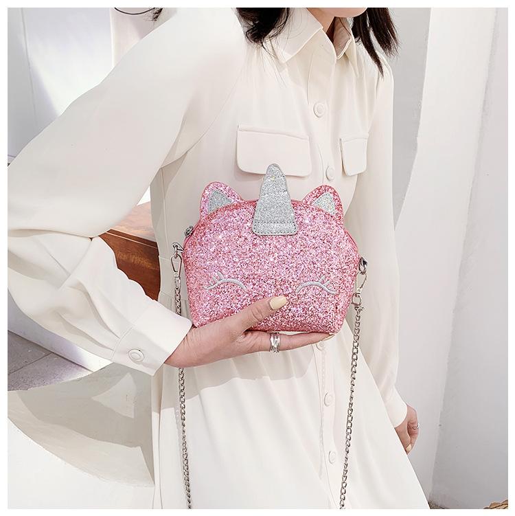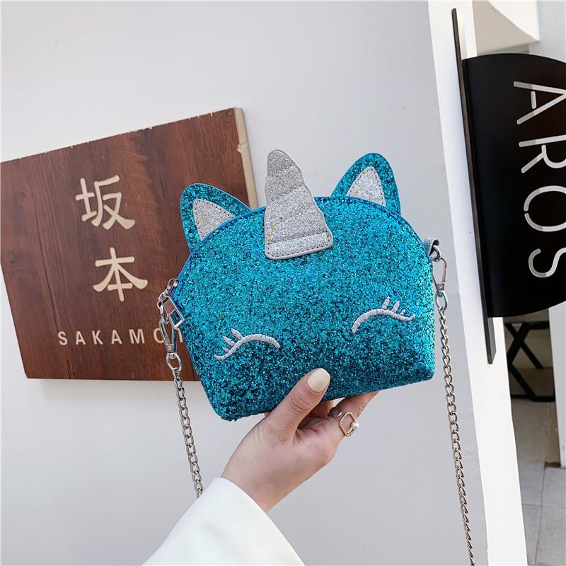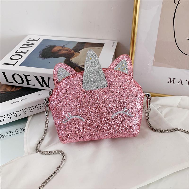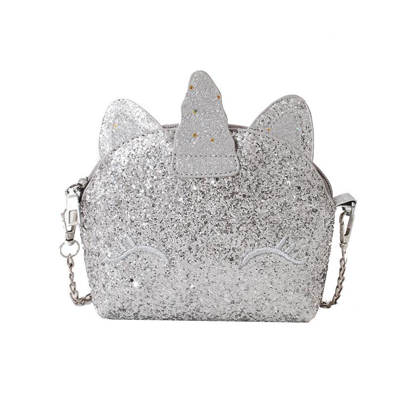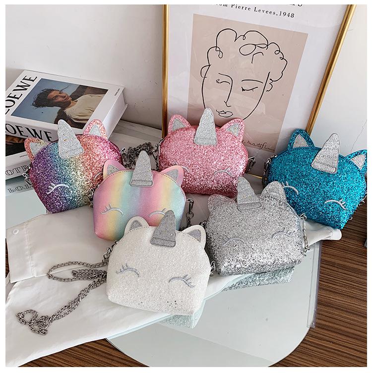 Bolso bandolera de cadena de PU de moda europea y americana personalizado, lindo, divertido, con personalidad, lentejuelas láser, gato bordado, bolso de mujer