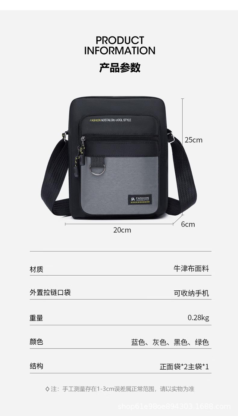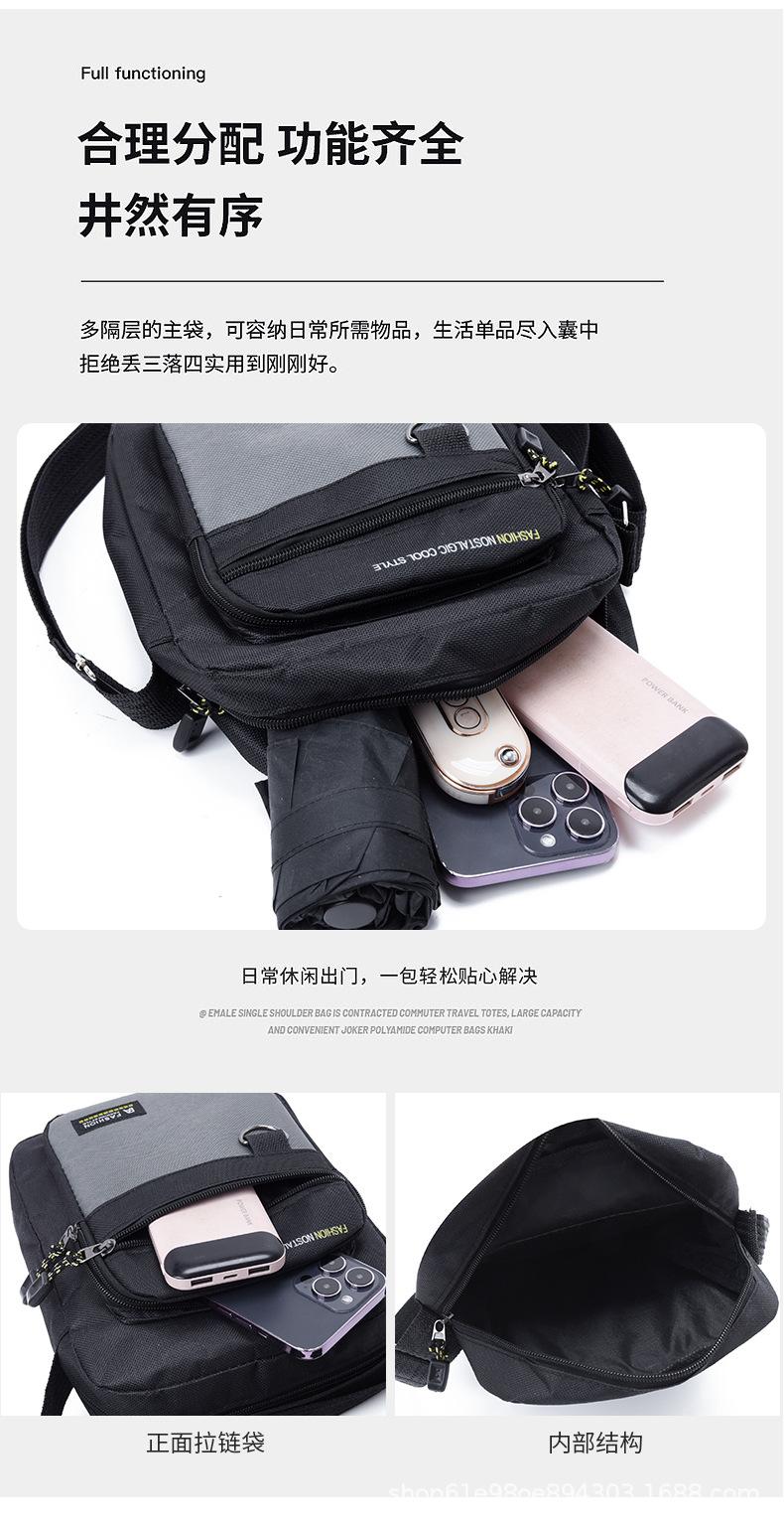 2025 Nueva Moda Casual Bolso Cruzado para Hombre Multicapa Impermeable Tela Oxford Cartera Bolso de Moda para Hombre Bolso de Hombro