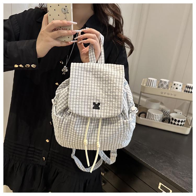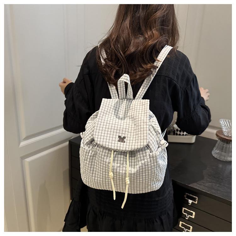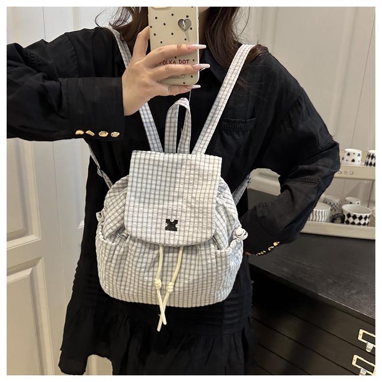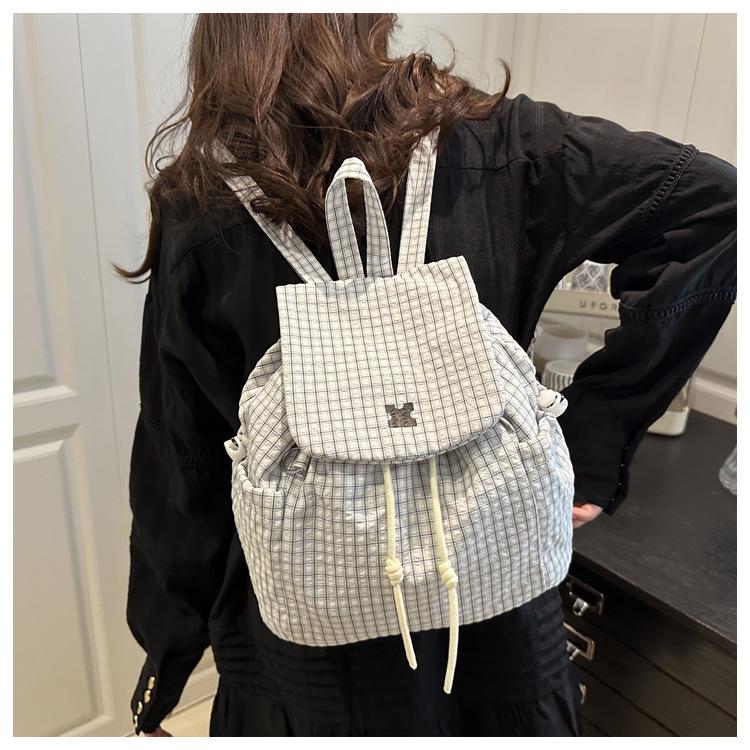 Mochila para Mujer 2025 Nuevo Estilo Coreano Casual Gran Capacidad Bolso de Mano Estudiante Universitario Ligera Cuadros Mochila de Mano Moderna