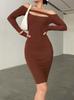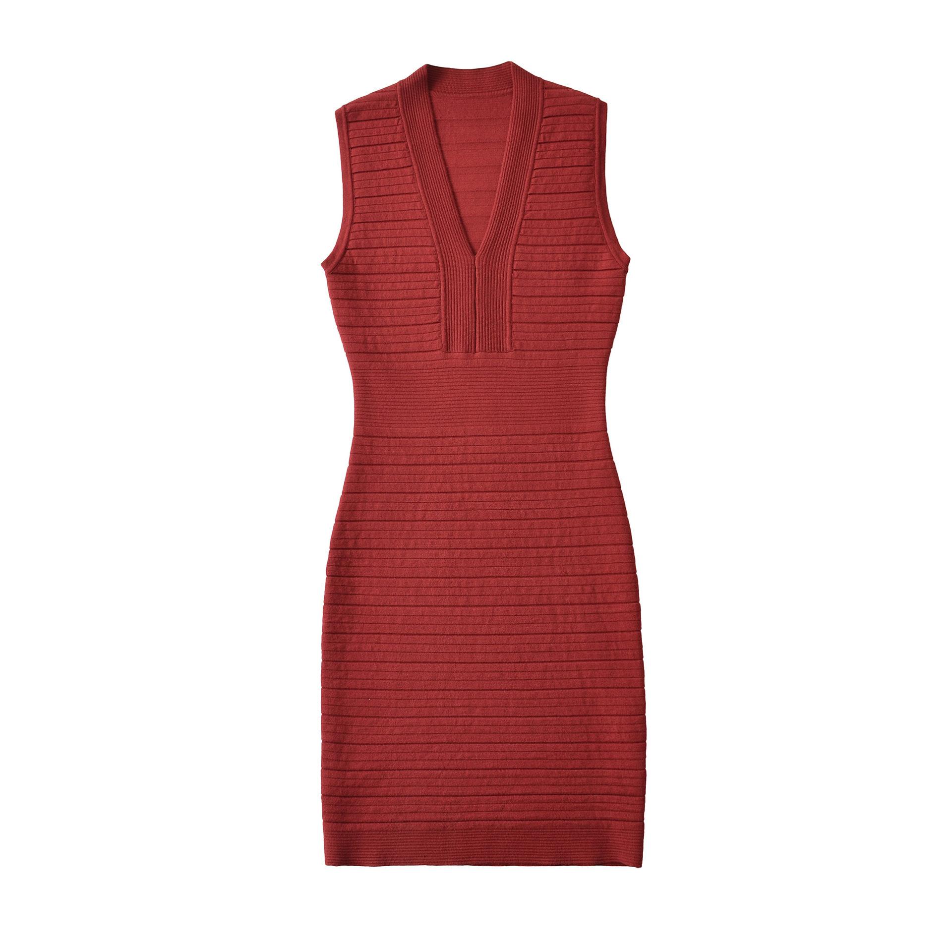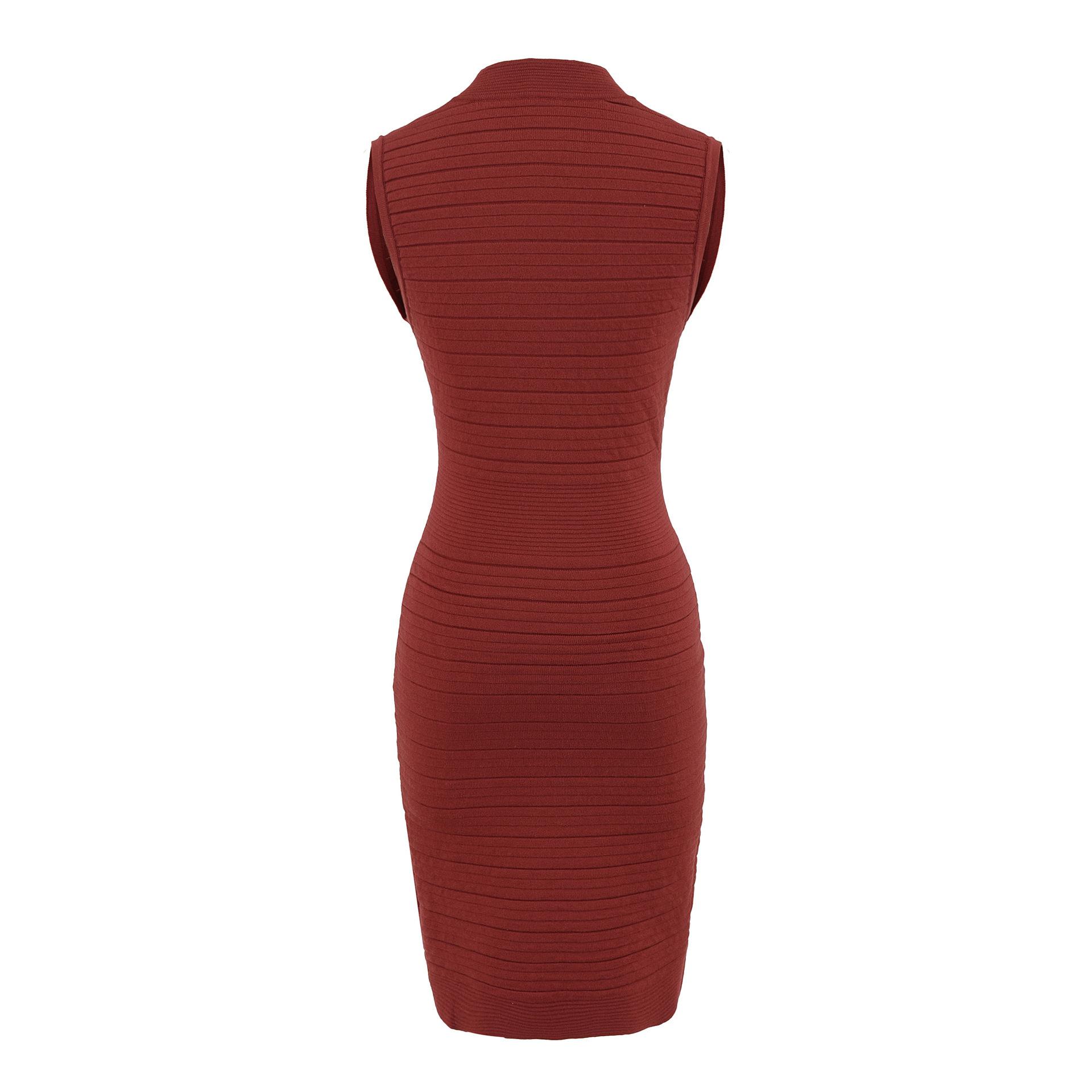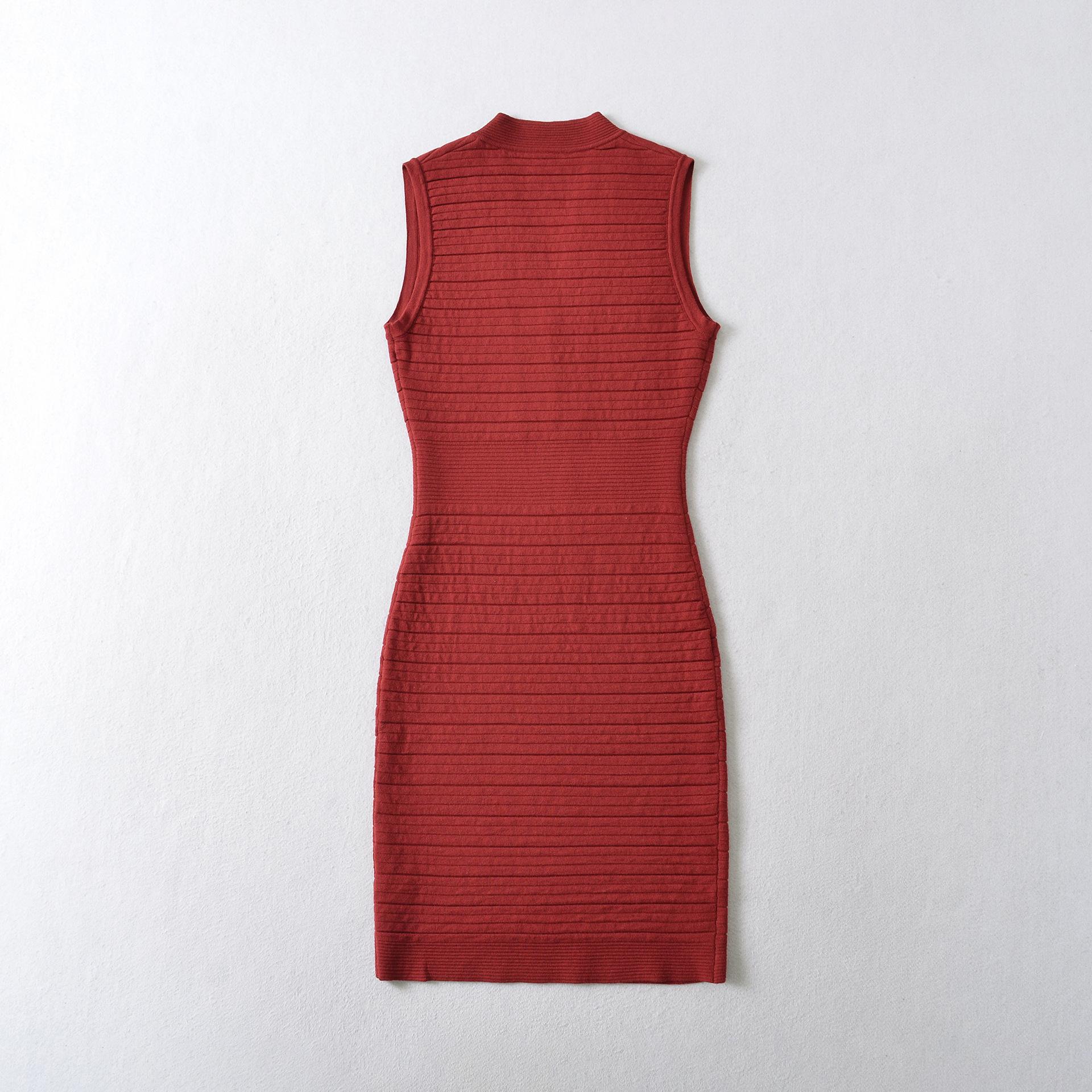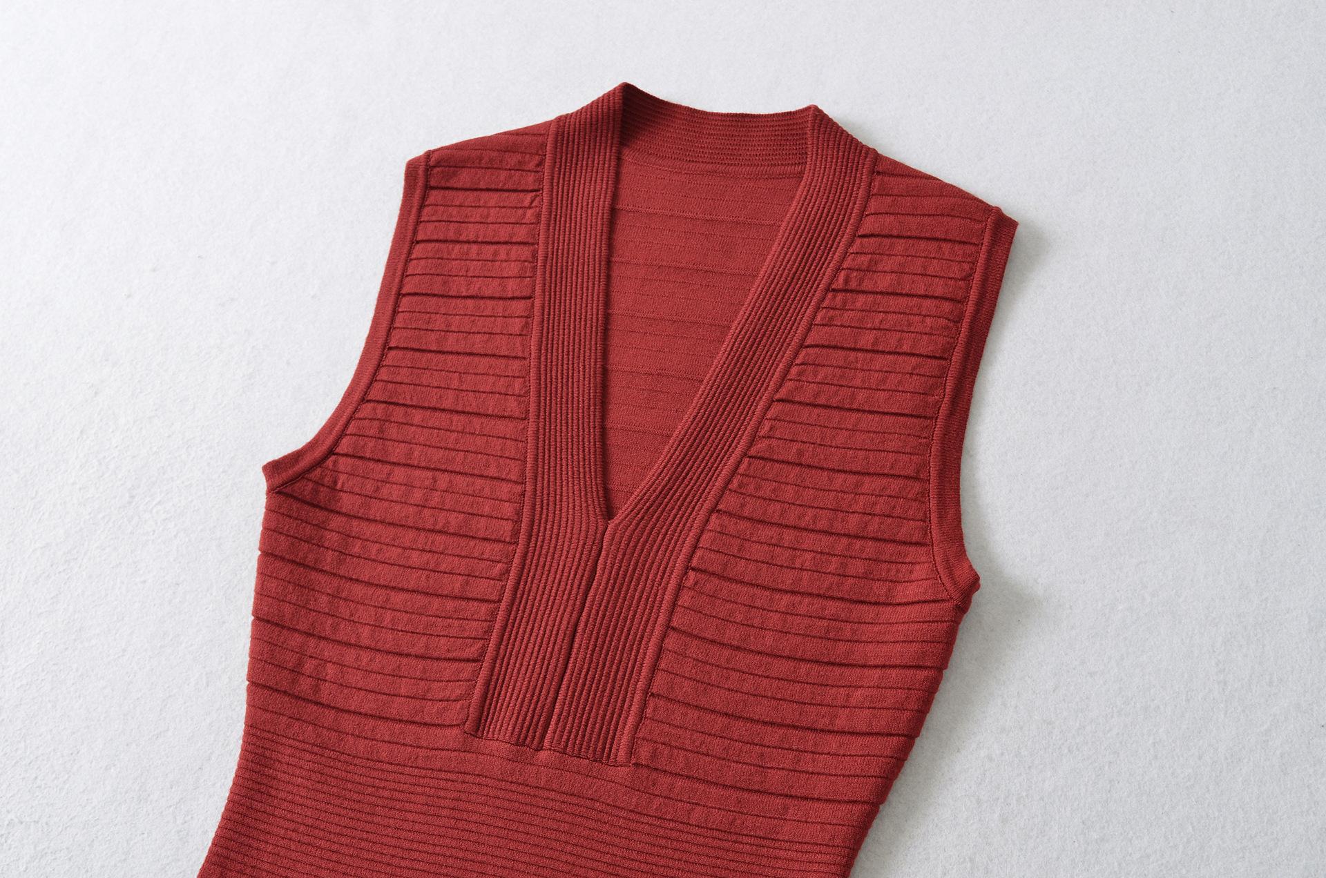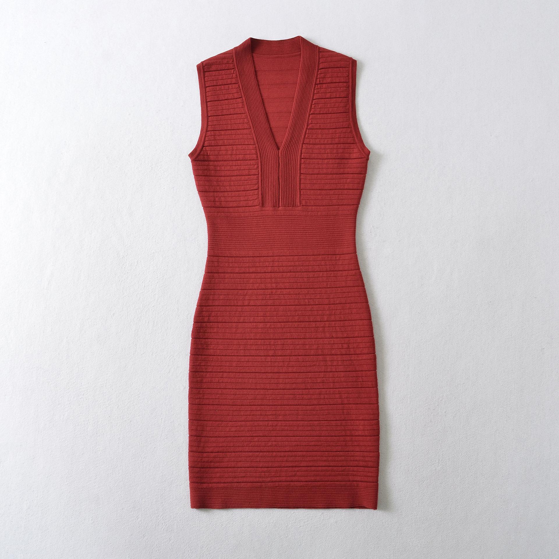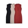 Color Avena Elegante Falda Ajustada a la Cadera para Mujer Cintura Alta Look Adelgazante Sexy Sexy Cuello en V Favorecedor de la Figura Vestido Tejido sin Mangas