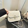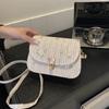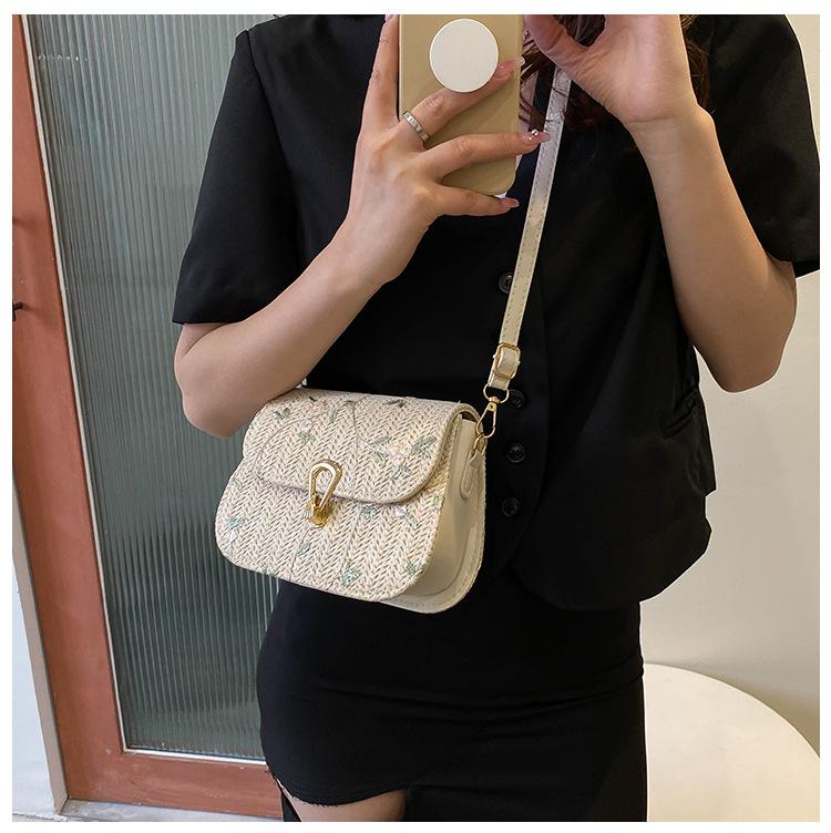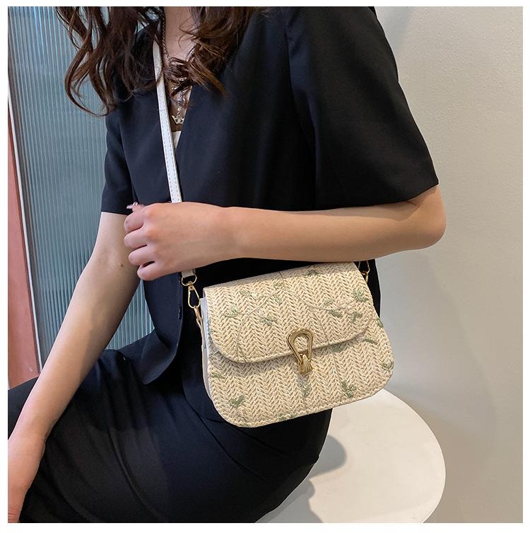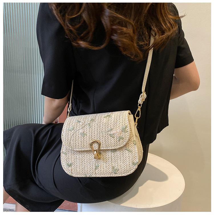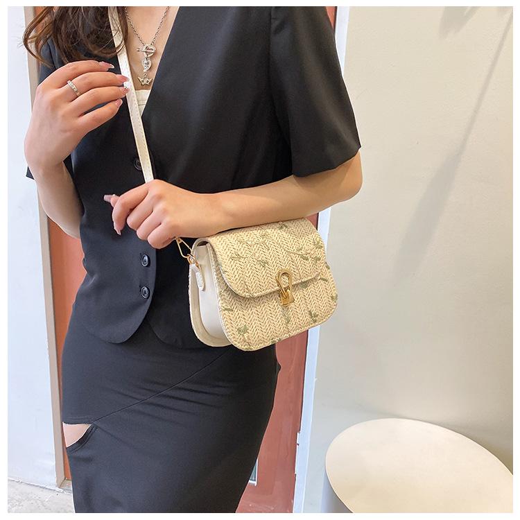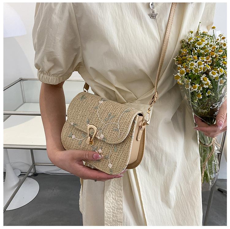 Bolso de Paja Tejido de Verano para Mujer 2025 Nuevo Estilo Pequeño Fresco Flor de Encaje Tejido Bolso de Silla de Montar Versátil Bolso de Hombro Cruzado