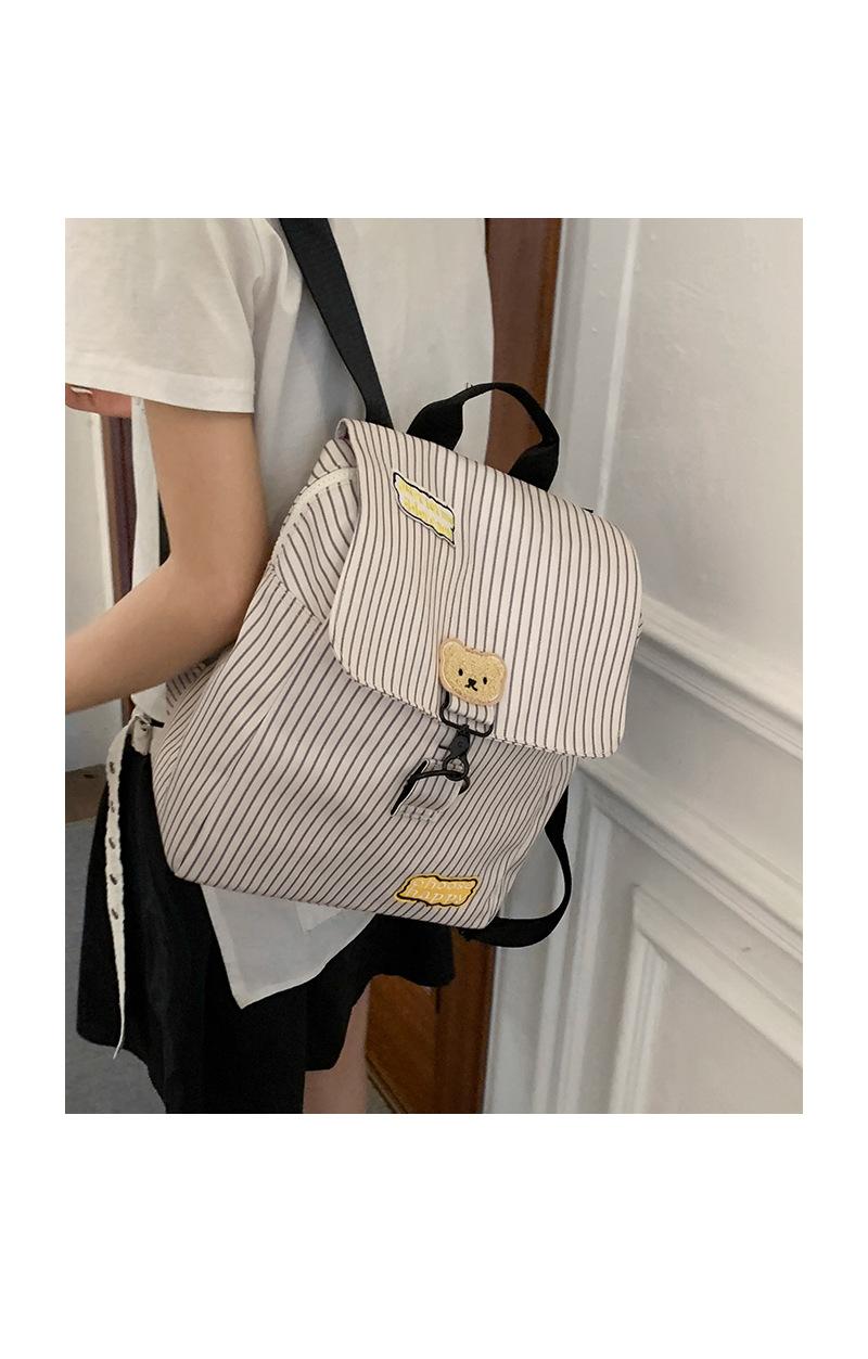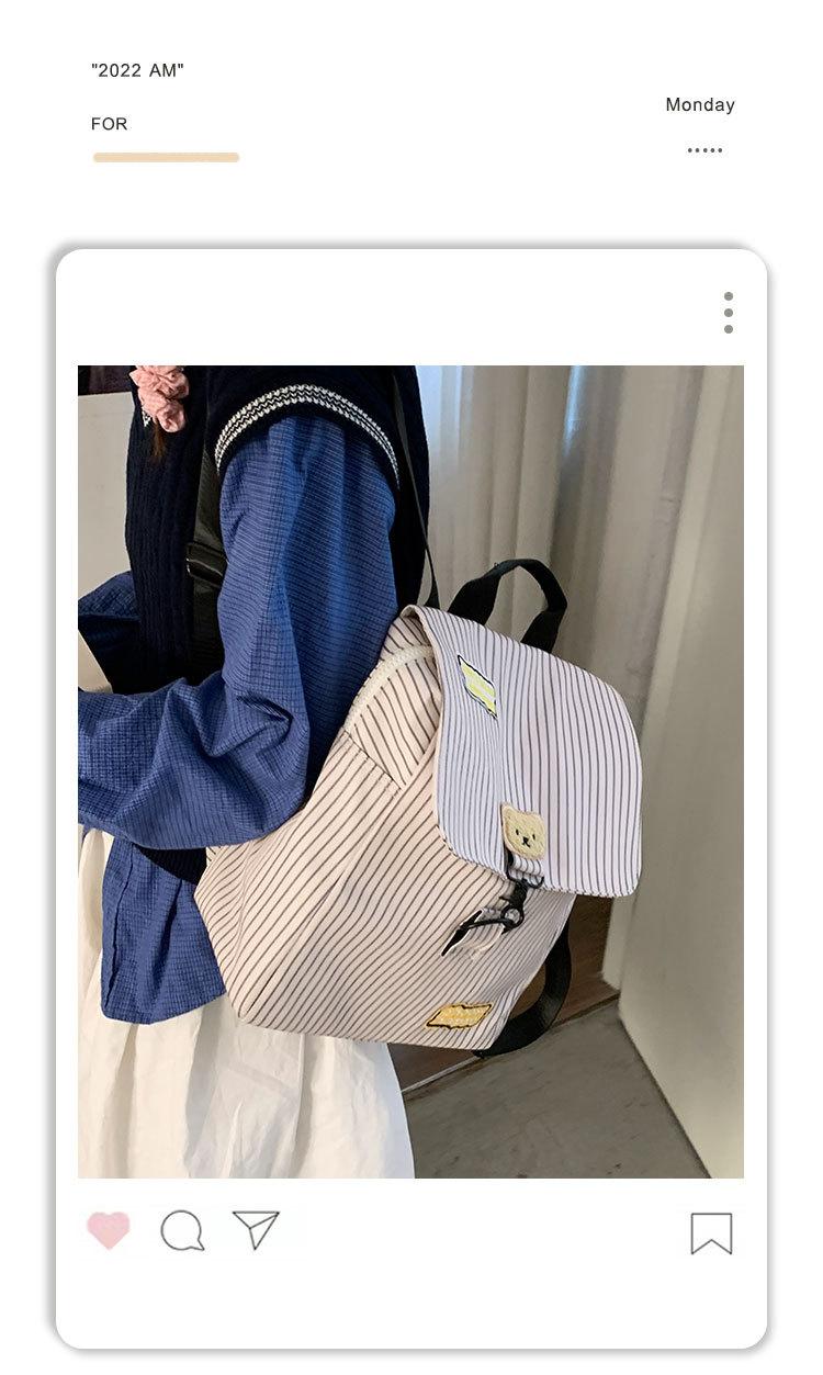 Mochila Casual para Mujer Estilo Universitario 2025 Nueva Bolsa de Lona Rayada Gran Capacidad Mochila para Estudiantes Dropshipping