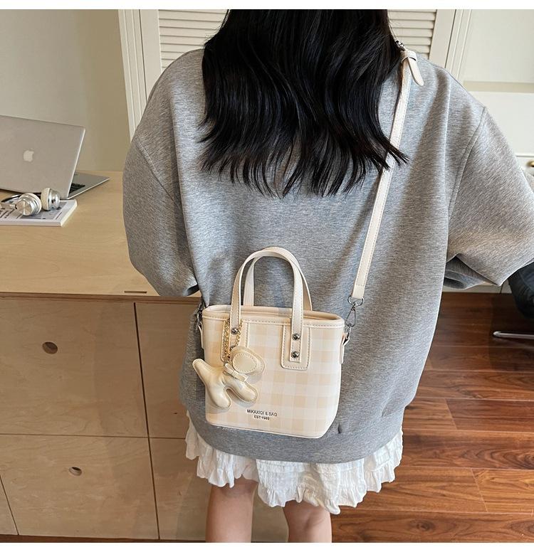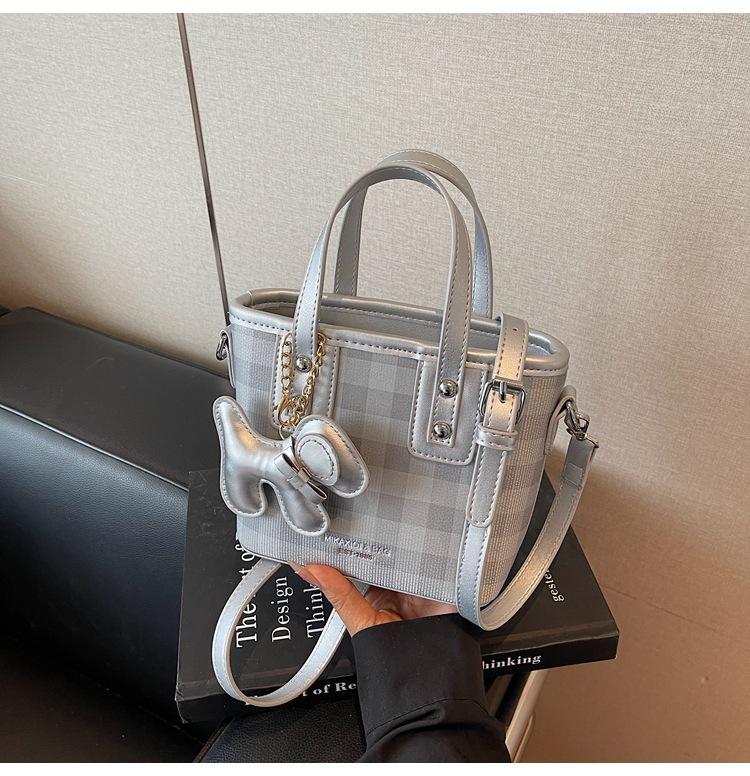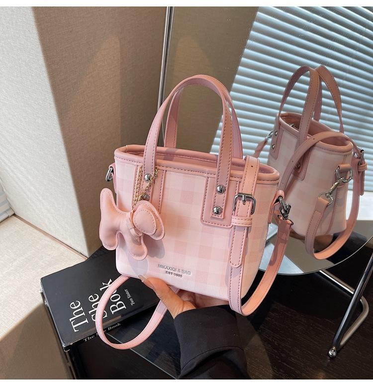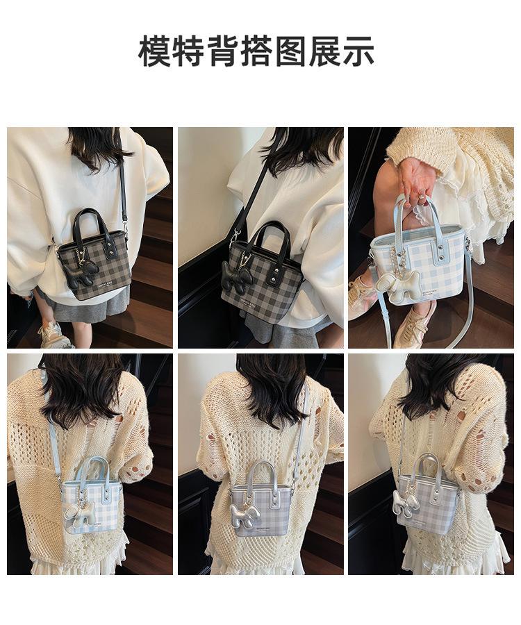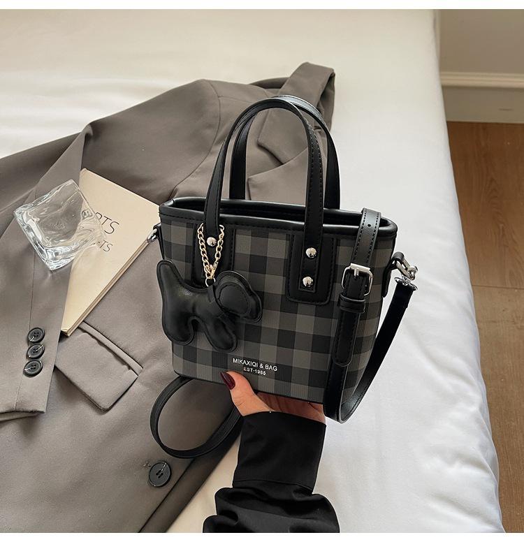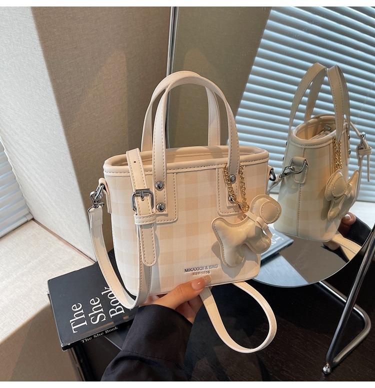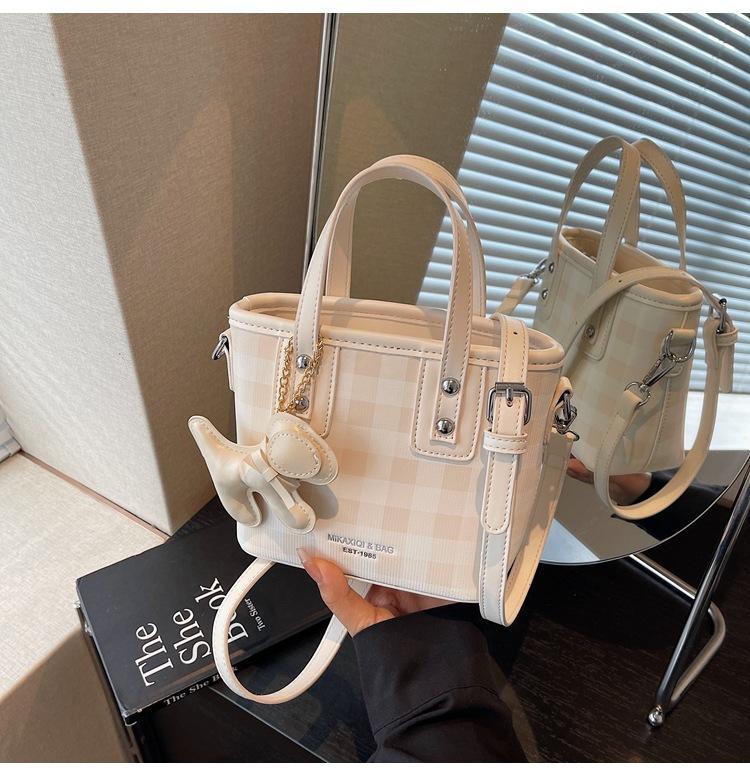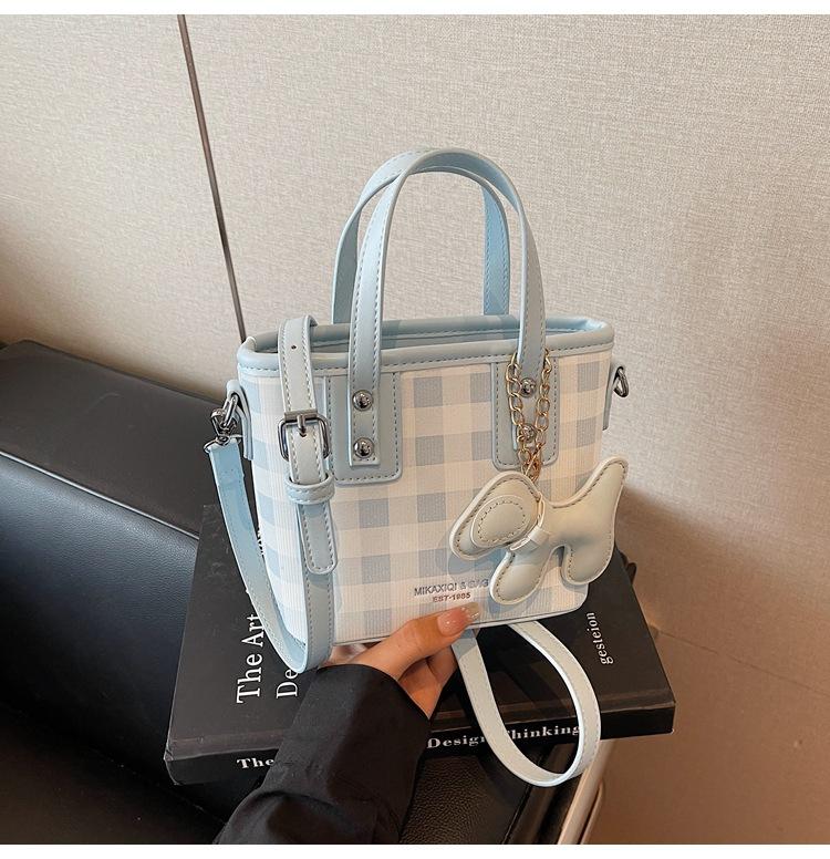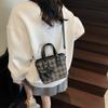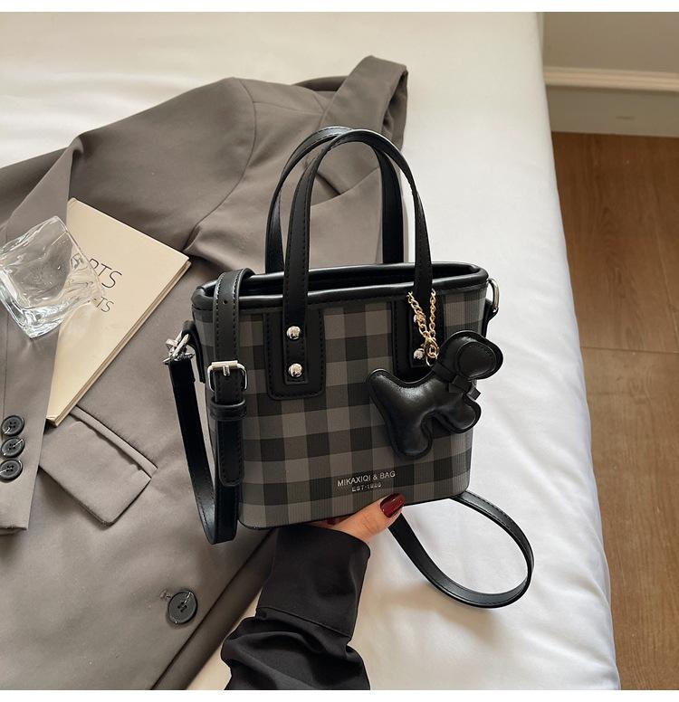 Bolso Pequeño Elegante Transfronterizo Bolso de Mujer 2025 Nuevo a Cuadros Versátil Hombro Bandolera Popular Bolso Cubo Portátil