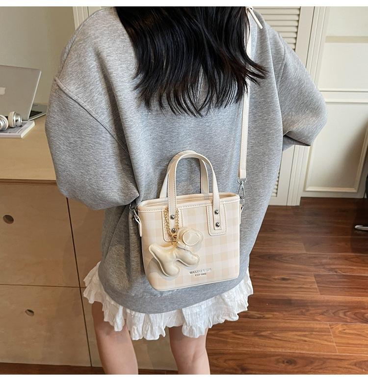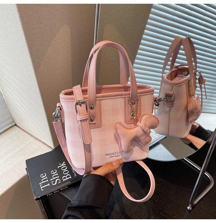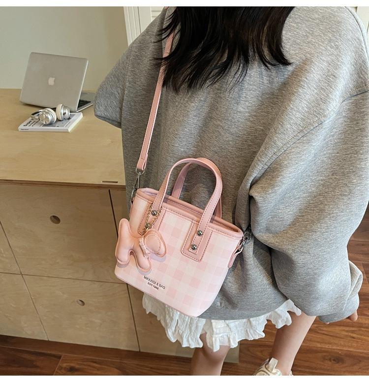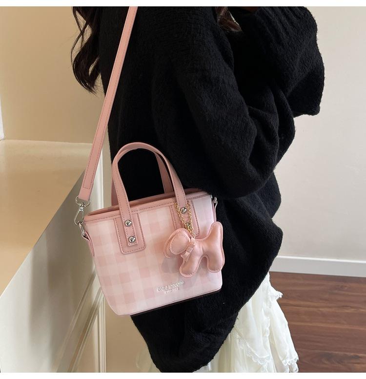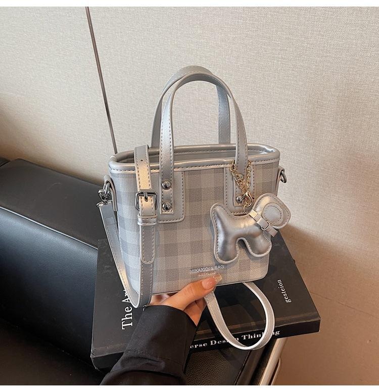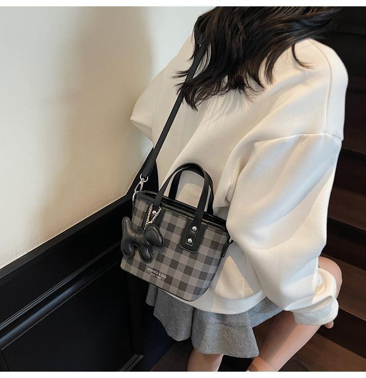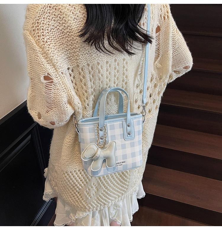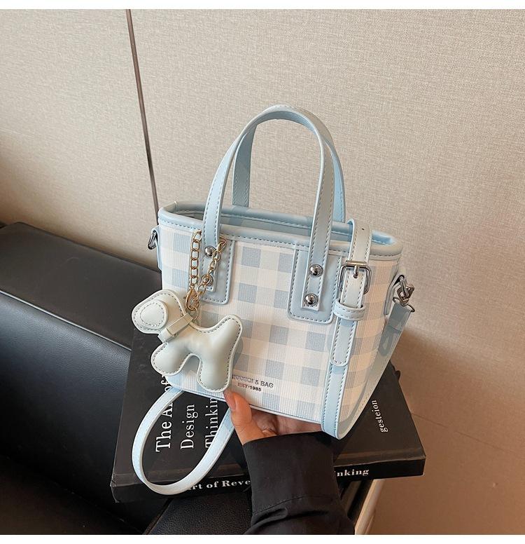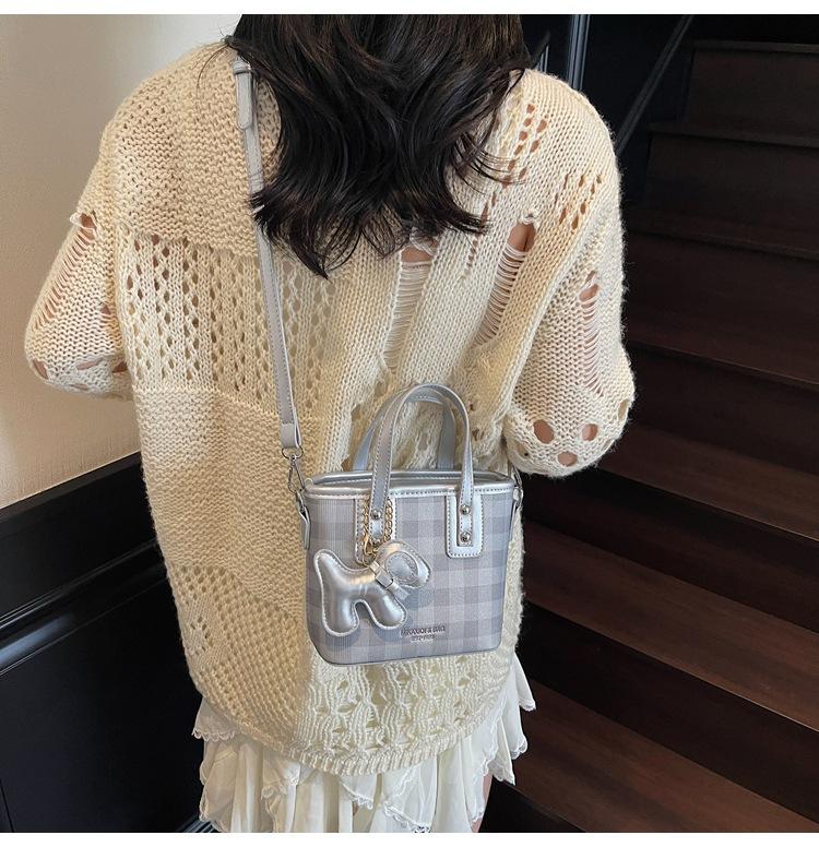 Bolso Pequeño Elegante Transfronterizo Bolso de Mujer 2025 Nuevo a Cuadros Versátil Hombro Bandolera Popular Bolso Cubo Portátil