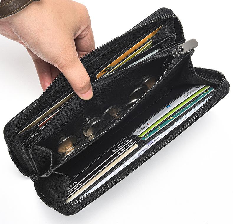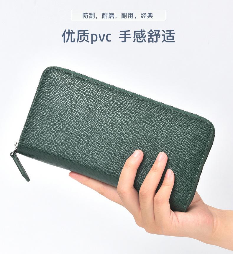 Estructura: 12 ranuras para tarjetas, 2 compartimentos para billetes, 1 bolsillo para teléfono, 1 bolsillo para monedas con cremallera en forma de L
