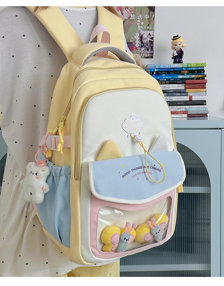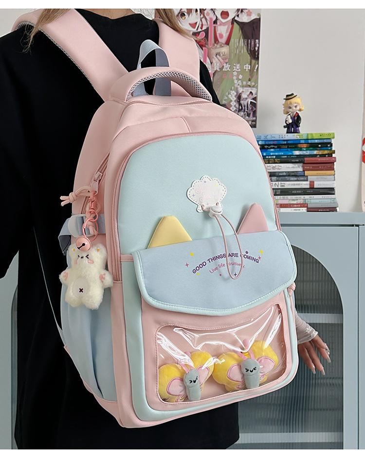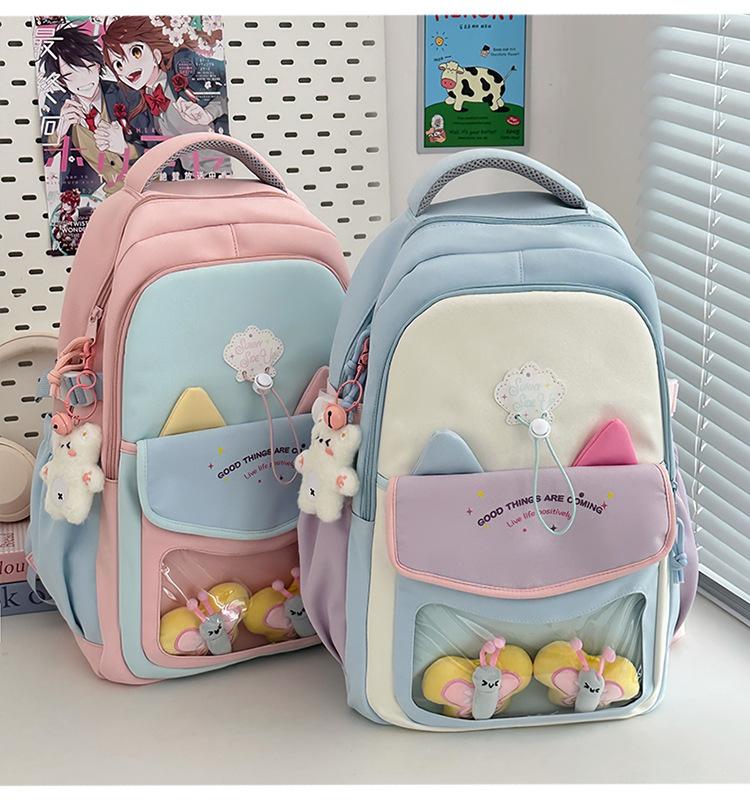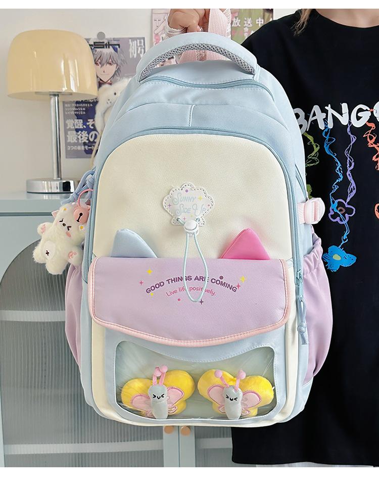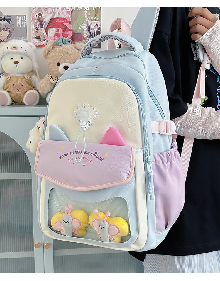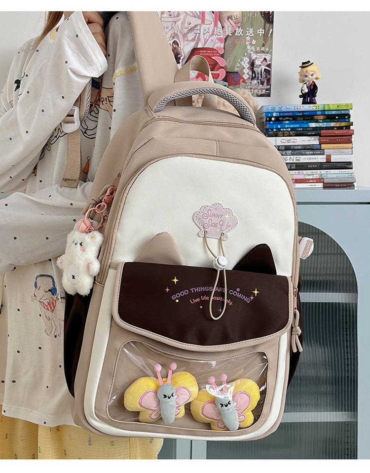 Mochila Versátil de Color Contrastante Estilo Bosque para Mujer Versión Coreana Campus Estudiante de Secundaria Estudiante Universitario Mochila Casual