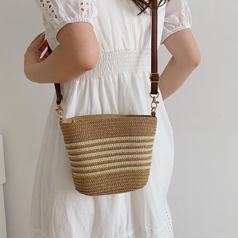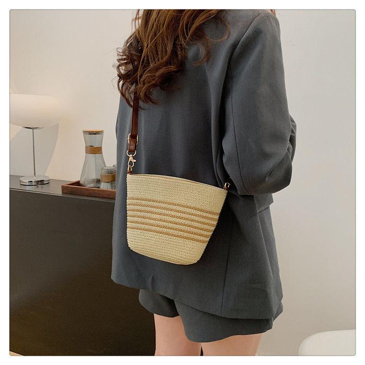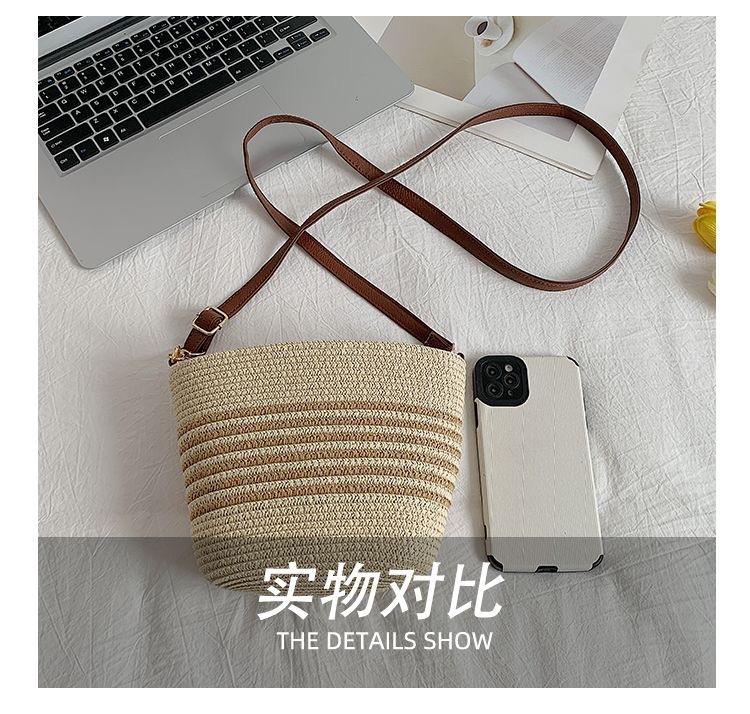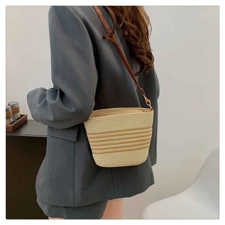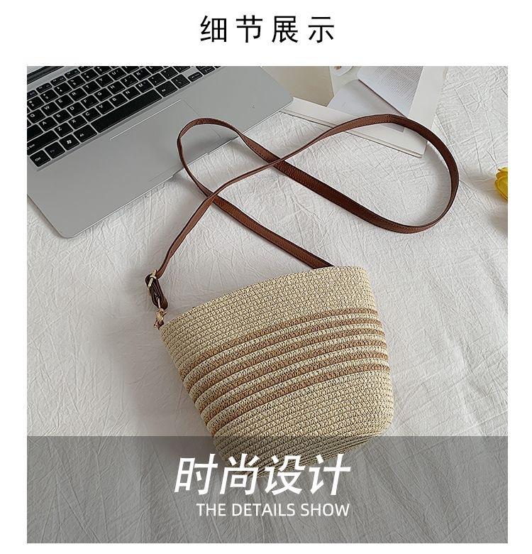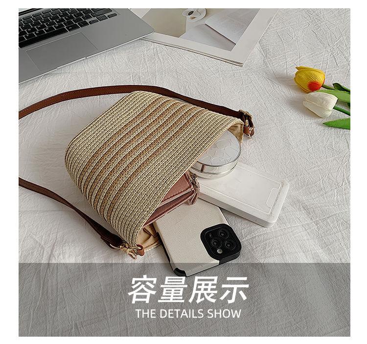 Bolso Pequeño Popular de Verano Tejido de Paja para Mujer 2025 Nuevo Bolso Tejido para Vacaciones en la Playa Bolso Balde Cruzado Casual Versátil