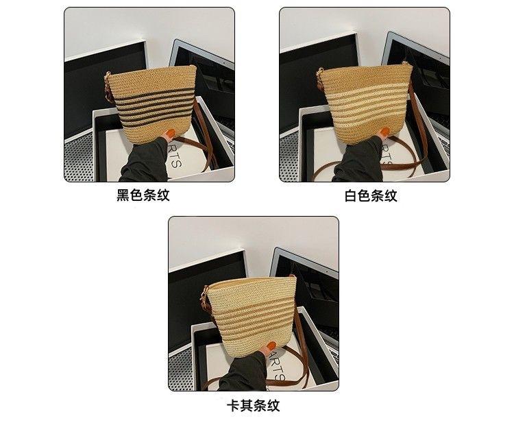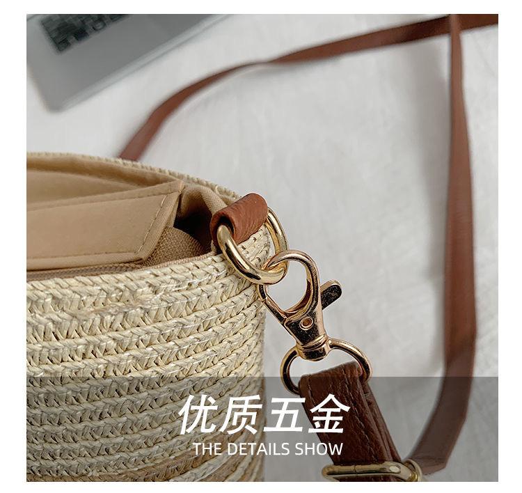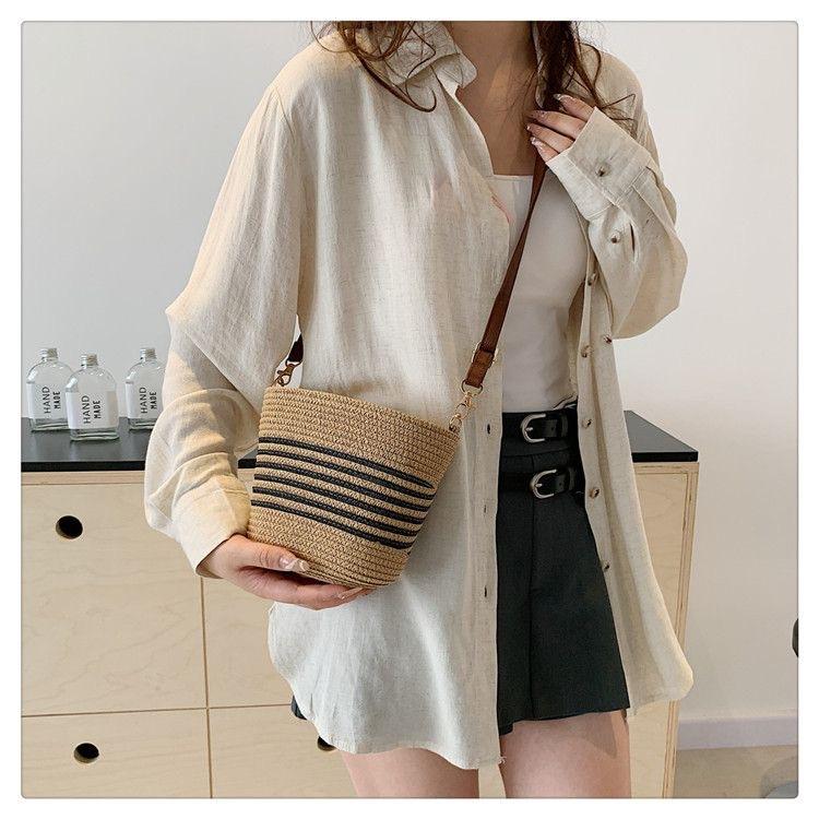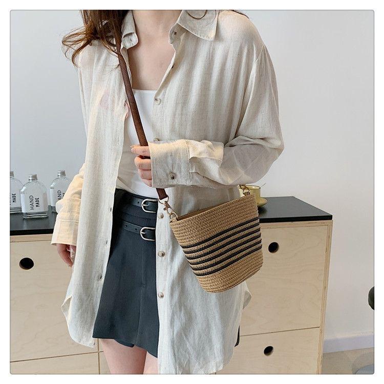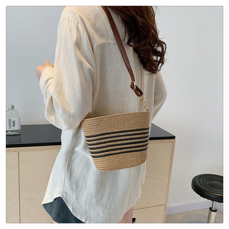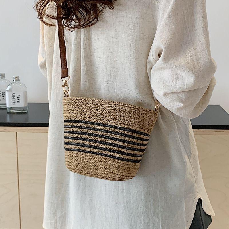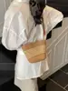 Bolso Pequeño Popular de Verano Tejido de Paja para Mujer 2025 Nuevo Bolso Tejido para Vacaciones en la Playa Bolso Balde Cruzado Casual Versátil