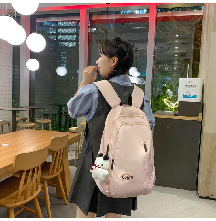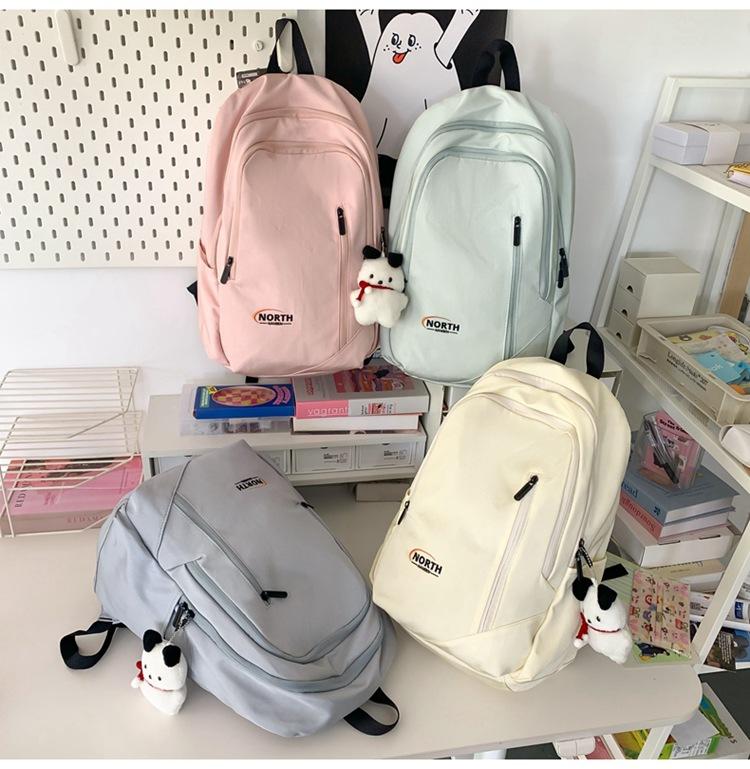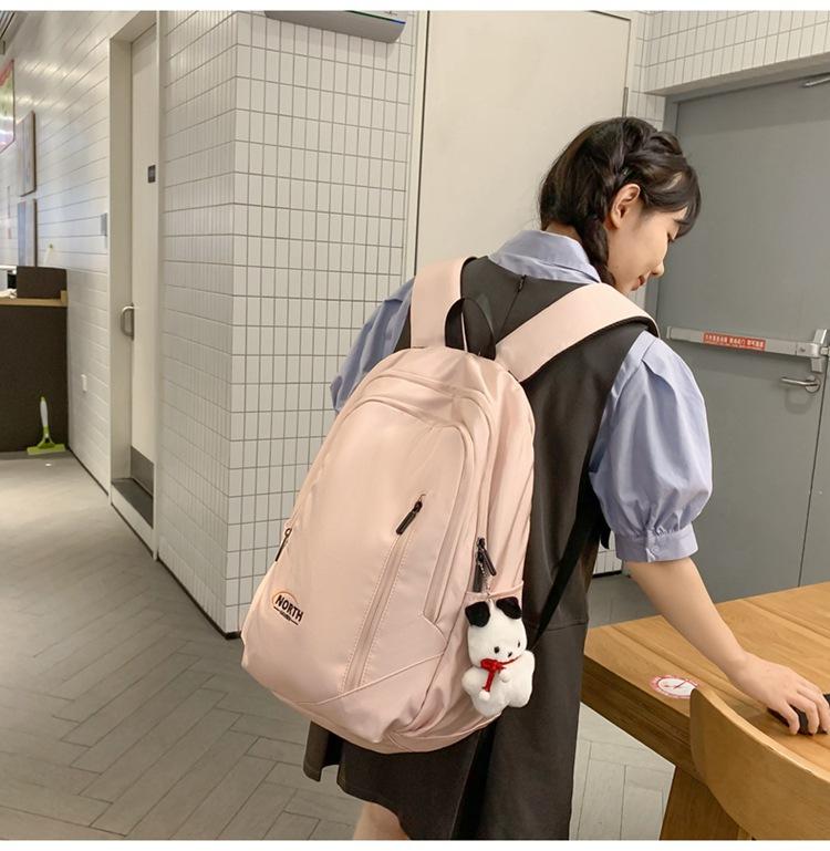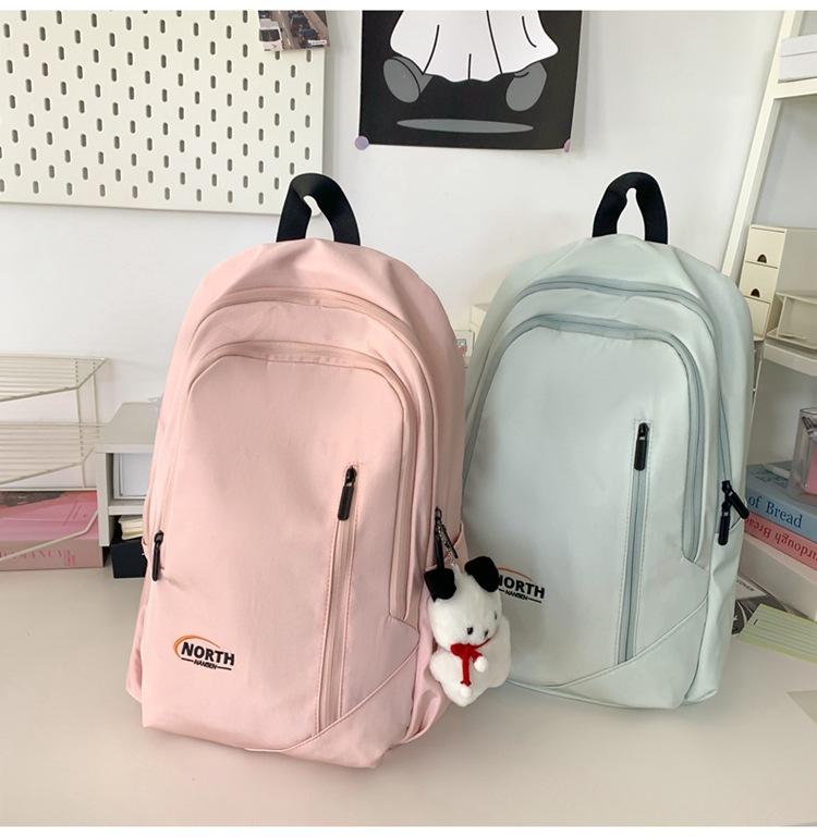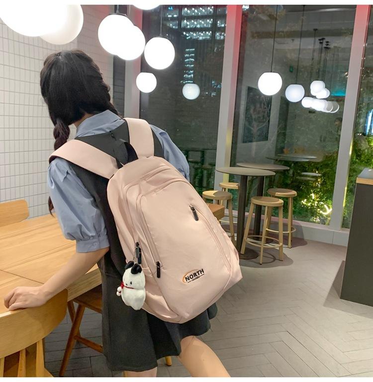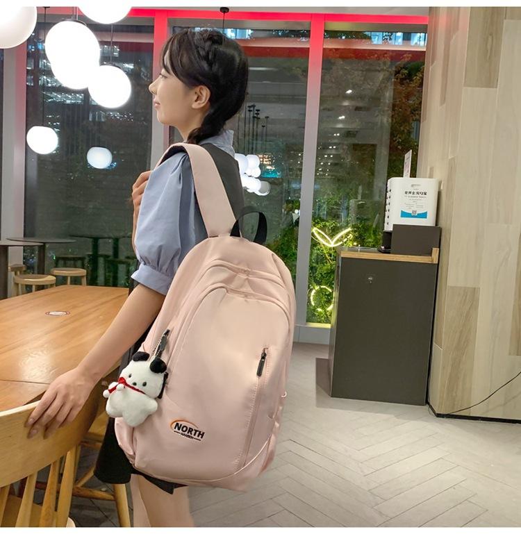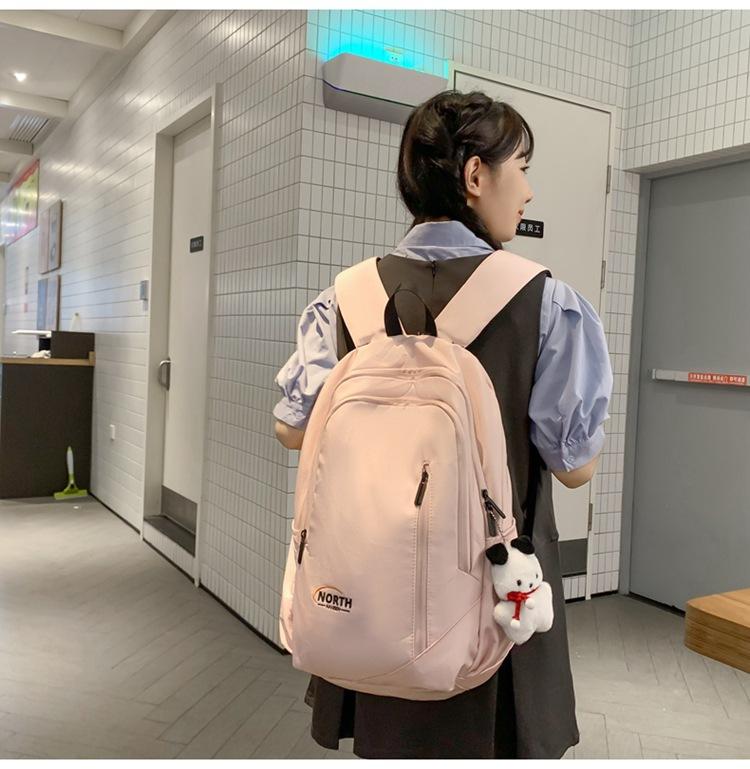 Mochila Escolar de Nuevo Estilo Transfronteriza para Mujer Sencilla Combinable Color Sólido Secundaria Superior Bachillerato Estudiante Universitario Mochila de Viaje Gran Capacidad
