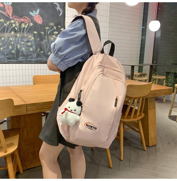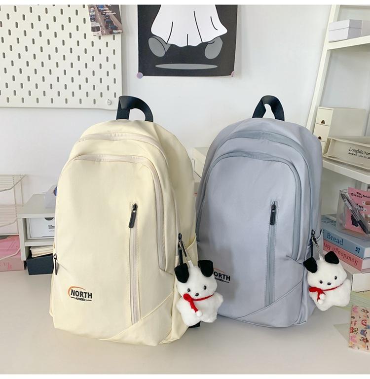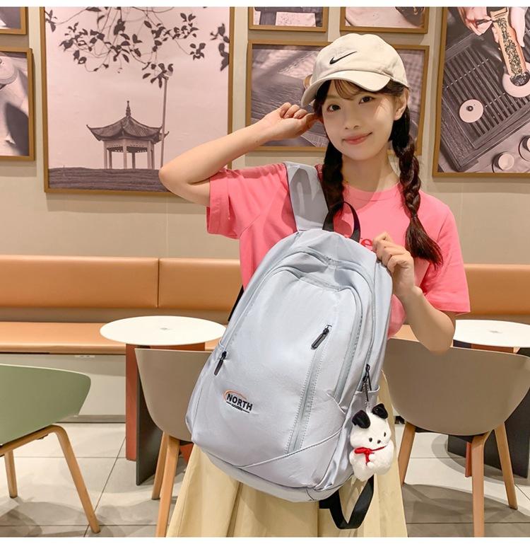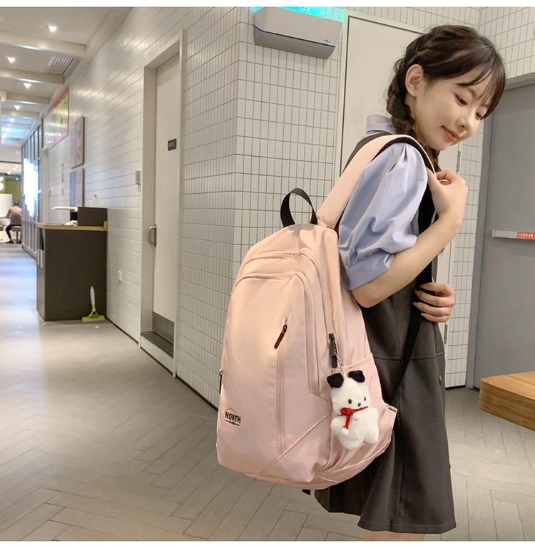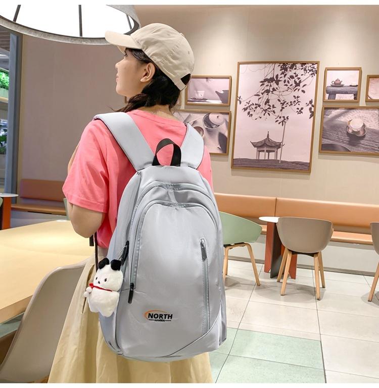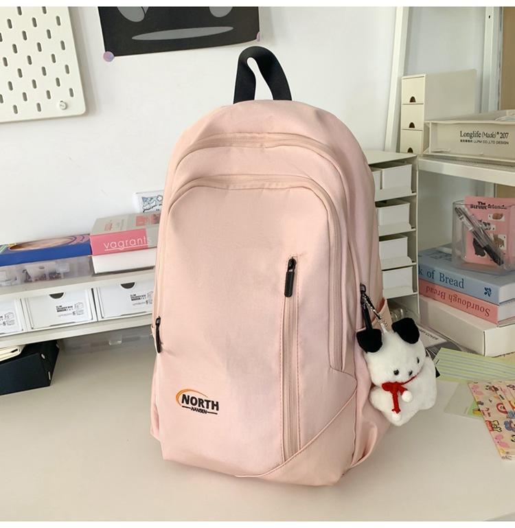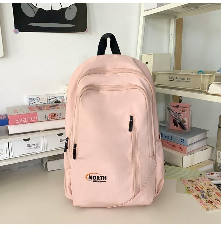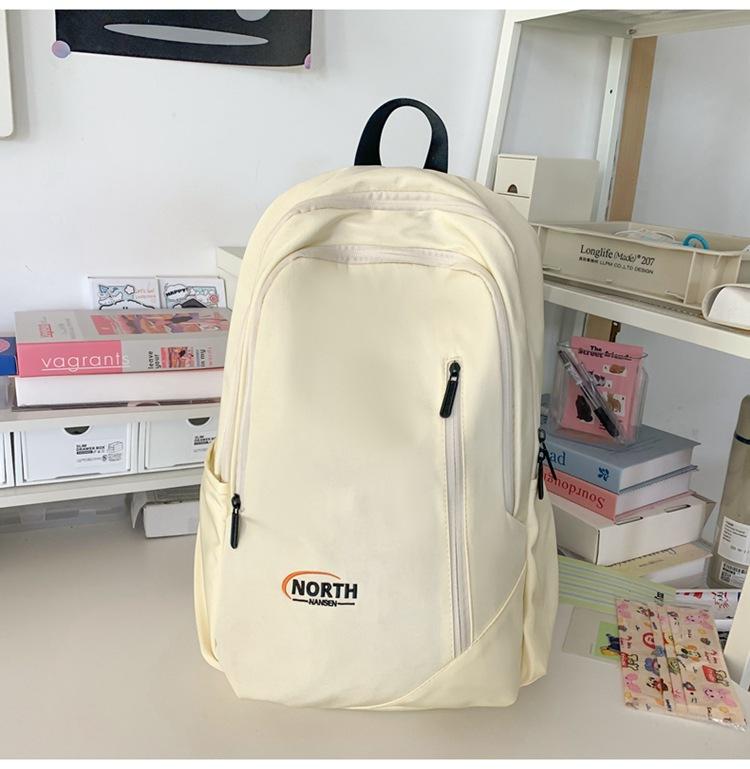 Mochila Escolar de Nuevo Estilo Transfronteriza para Mujer Sencilla Combinable Color Sólido Secundaria Superior Bachillerato Estudiante Universitario Mochila de Viaje Gran Capacidad
