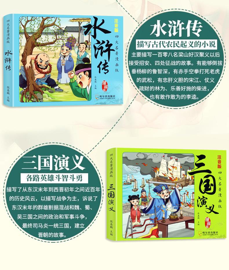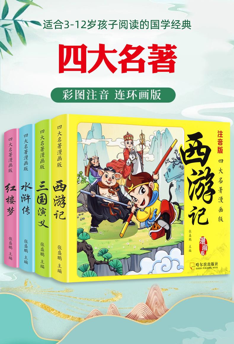 Versión animada de las cuatro obras maestras Cómics Versión para estudiantes de primaria de la versión fonética del Romance de los Tres Reinos A la orilla del agua El sueño del pabellón rojo Viaje al Oeste