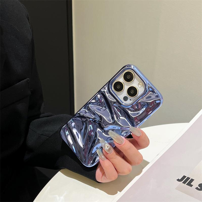 Adecuado para Funda de Teléfono Móvil Iphone15 Apple 16Promax Patrón Plisado Electrochapado 14Pro Sencilla 13/12 Cubierta Protectora