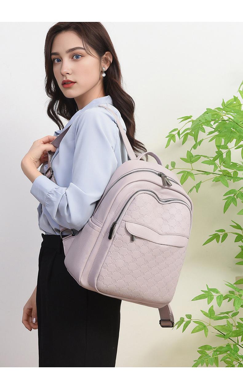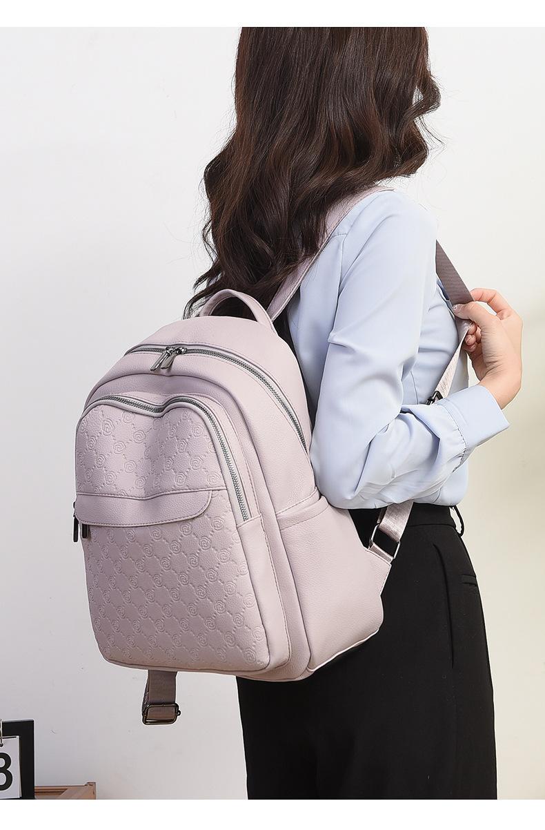 Mochila Casual de Cuero Suave Simple para Mujer, Mochila de Viaje para Traslados, Versión Coreana, Color Sólido, Versátil, Bolsa Antirrobo para Mamá