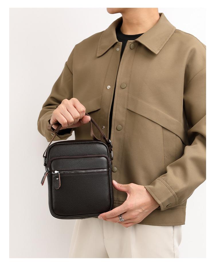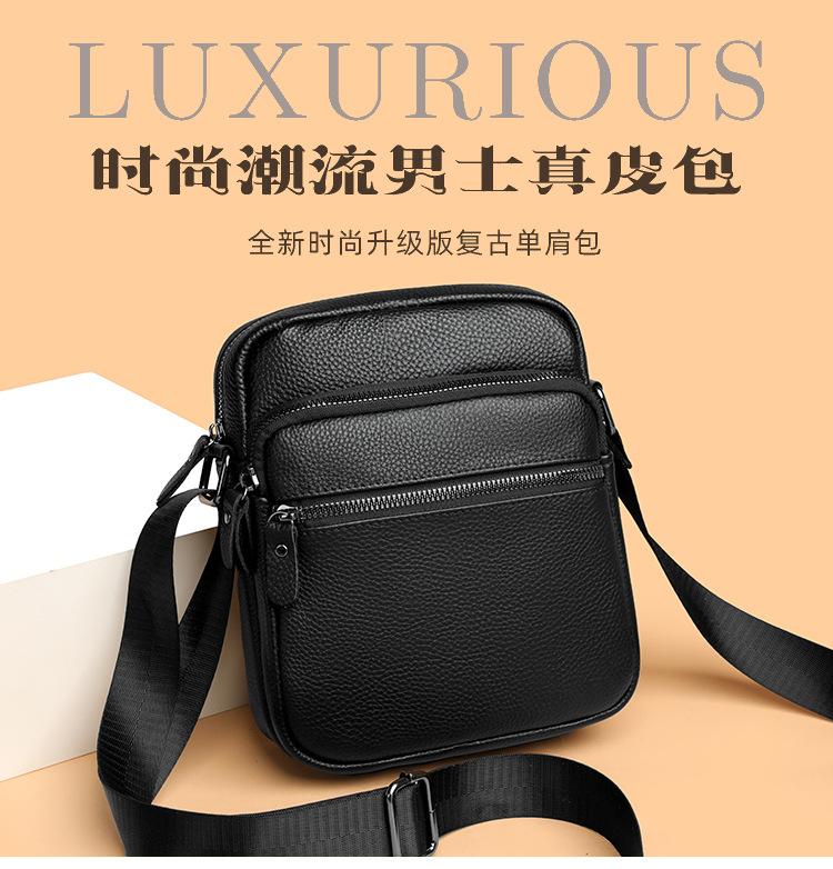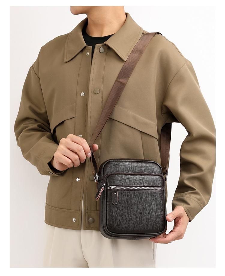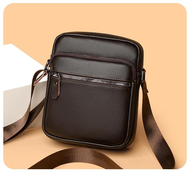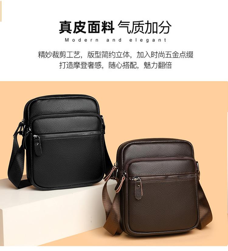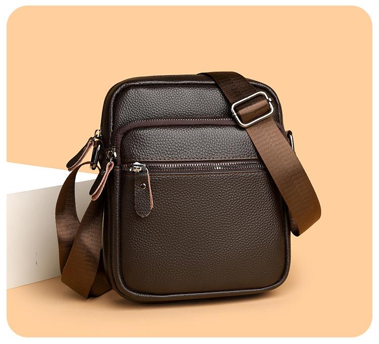 Nuevo Bolso de Hombro de Cuero Genuino para Hombre Transfronterizo Bolso Cruzado de Negocios Cuero Vacuno de Primera Capa Mochila Casual Bolso Cuadrado Pequeño Bolso de Hombro Moderno