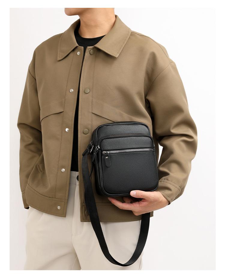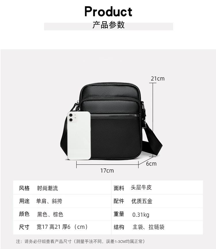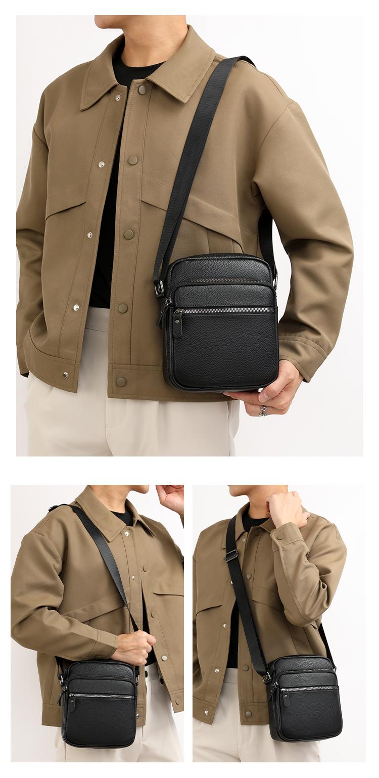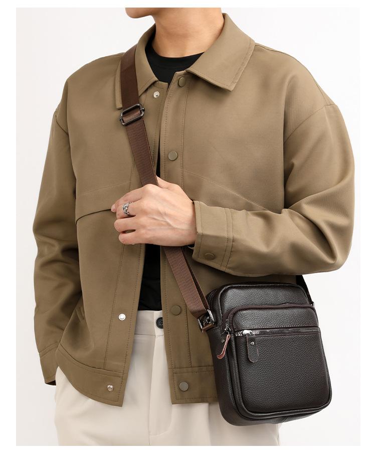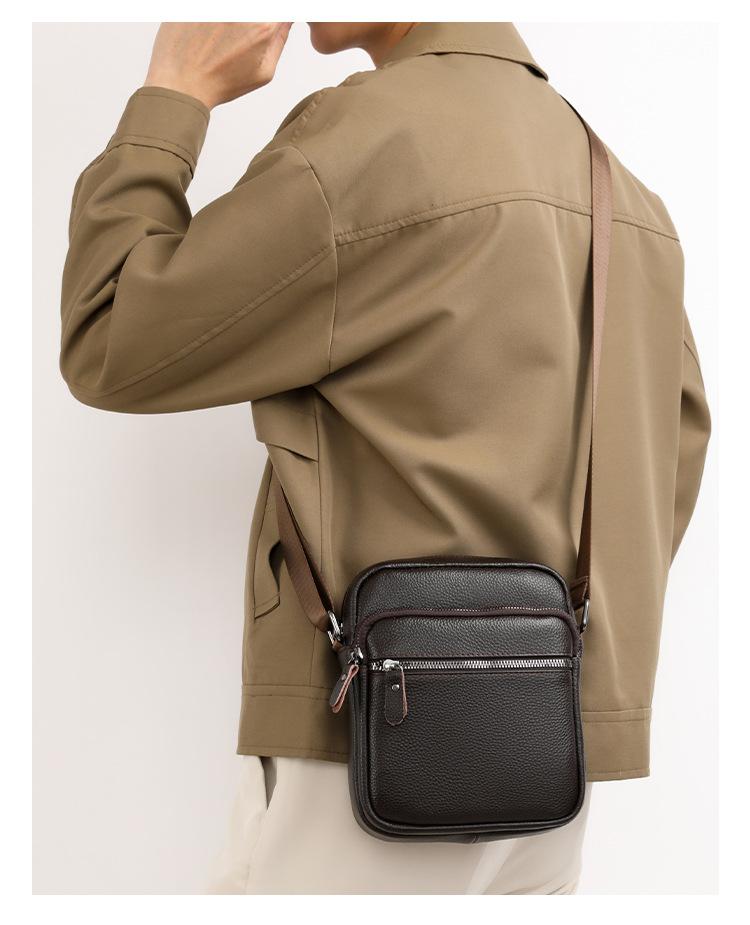 Nuevo Bolso de Hombro de Cuero Genuino para Hombre Transfronterizo Bolso Cruzado de Negocios Cuero Vacuno de Primera Capa Mochila Casual Bolso Cuadrado Pequeño Bolso de Hombro Moderno