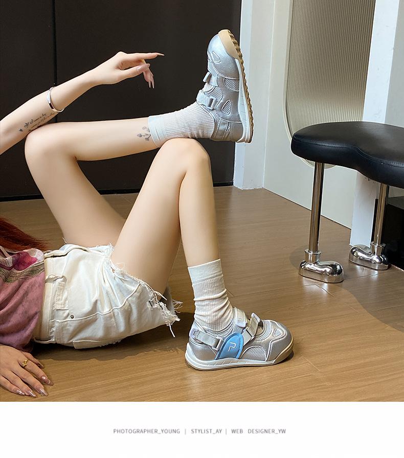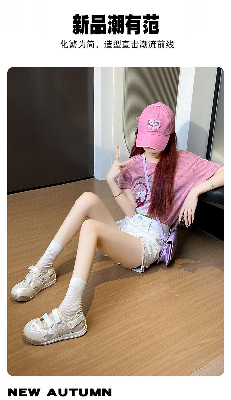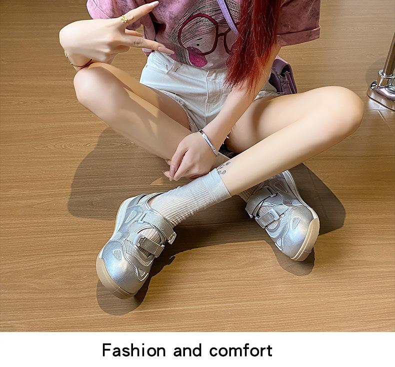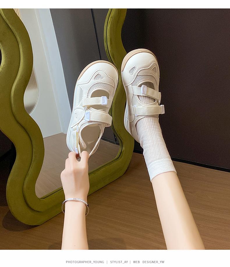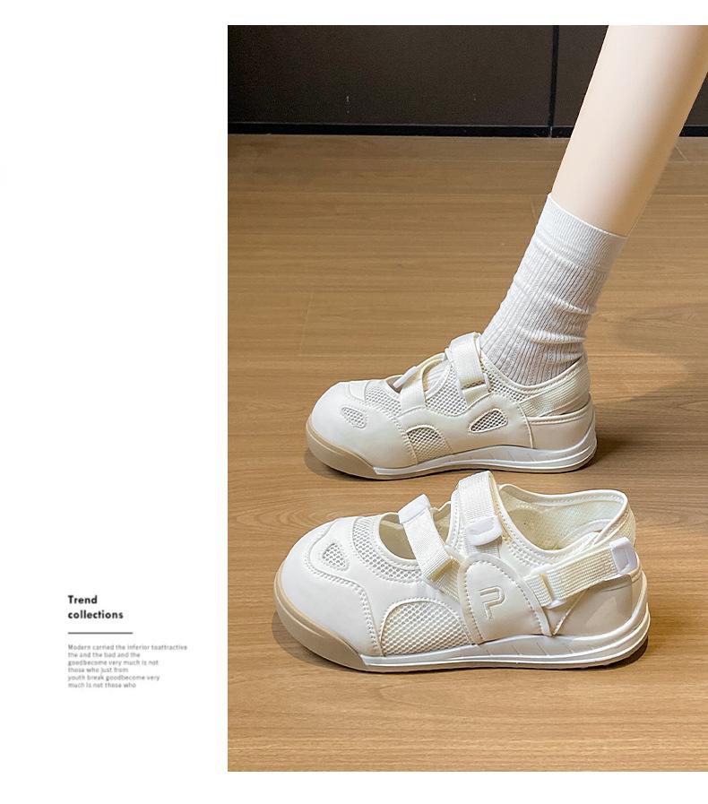 Zapatos Blancos Nuevos para Mujer 2025 para Otoño Estilo Coreano Velcro Estudiantes Casual Malla Zapatillas Versátiles Street Shooting