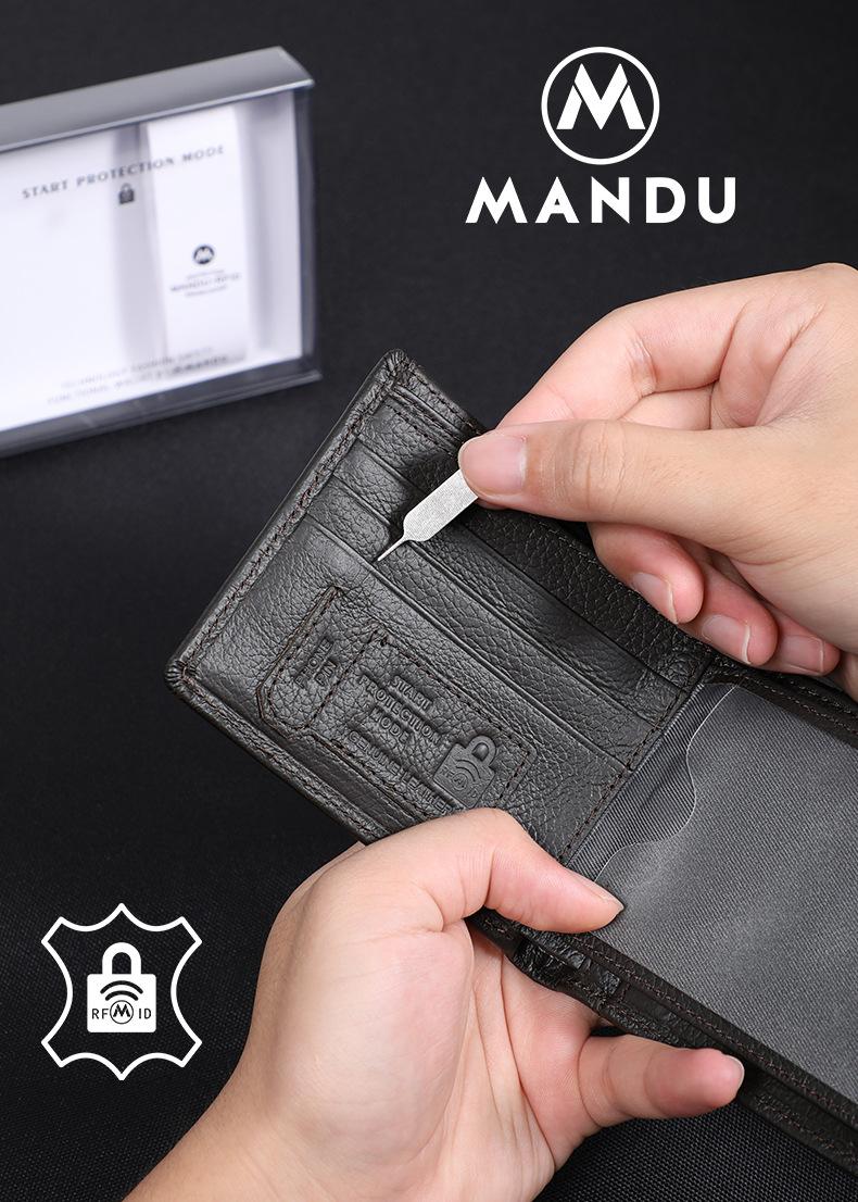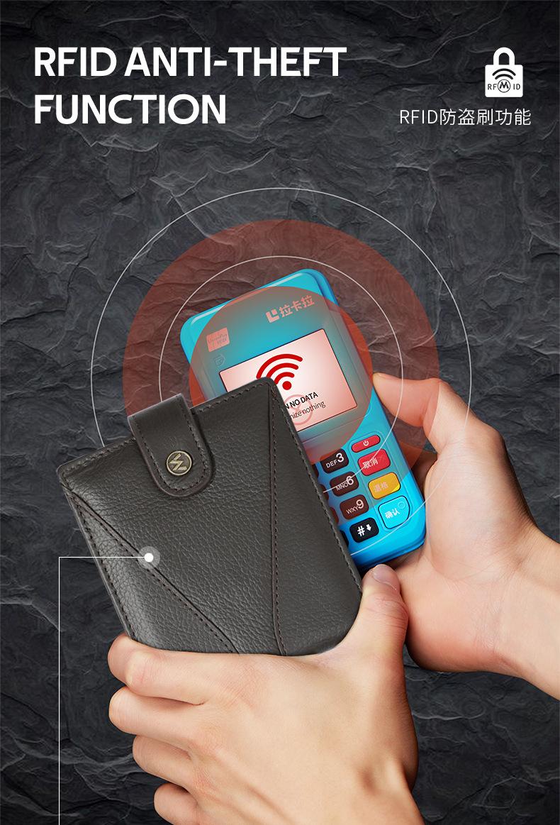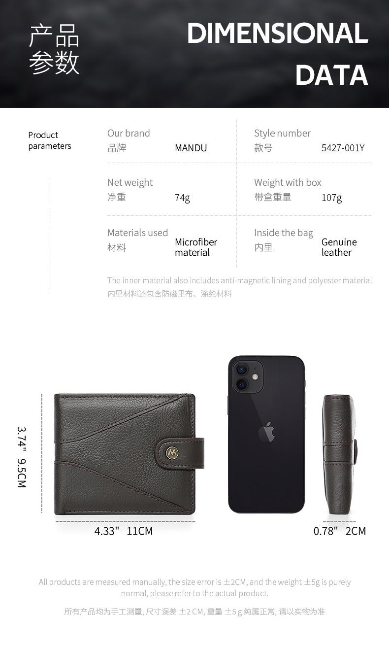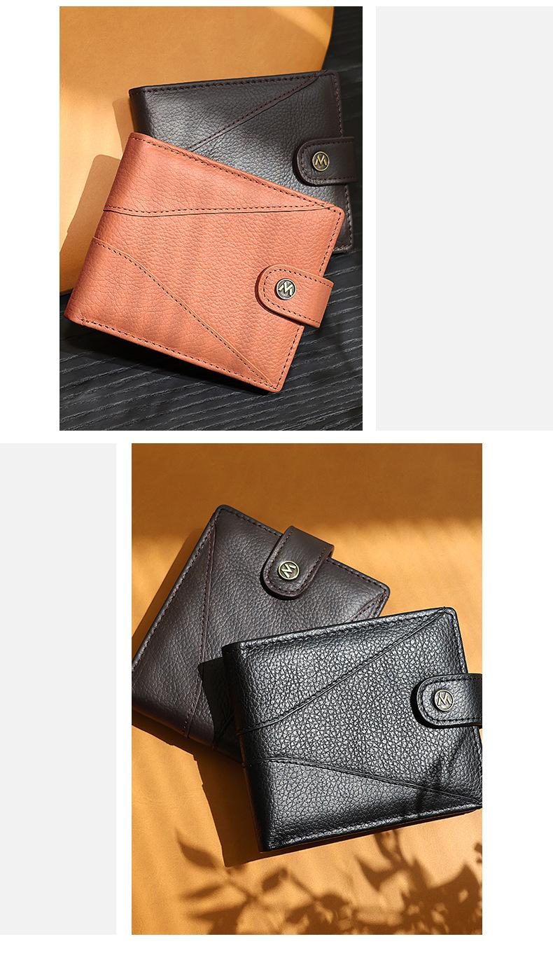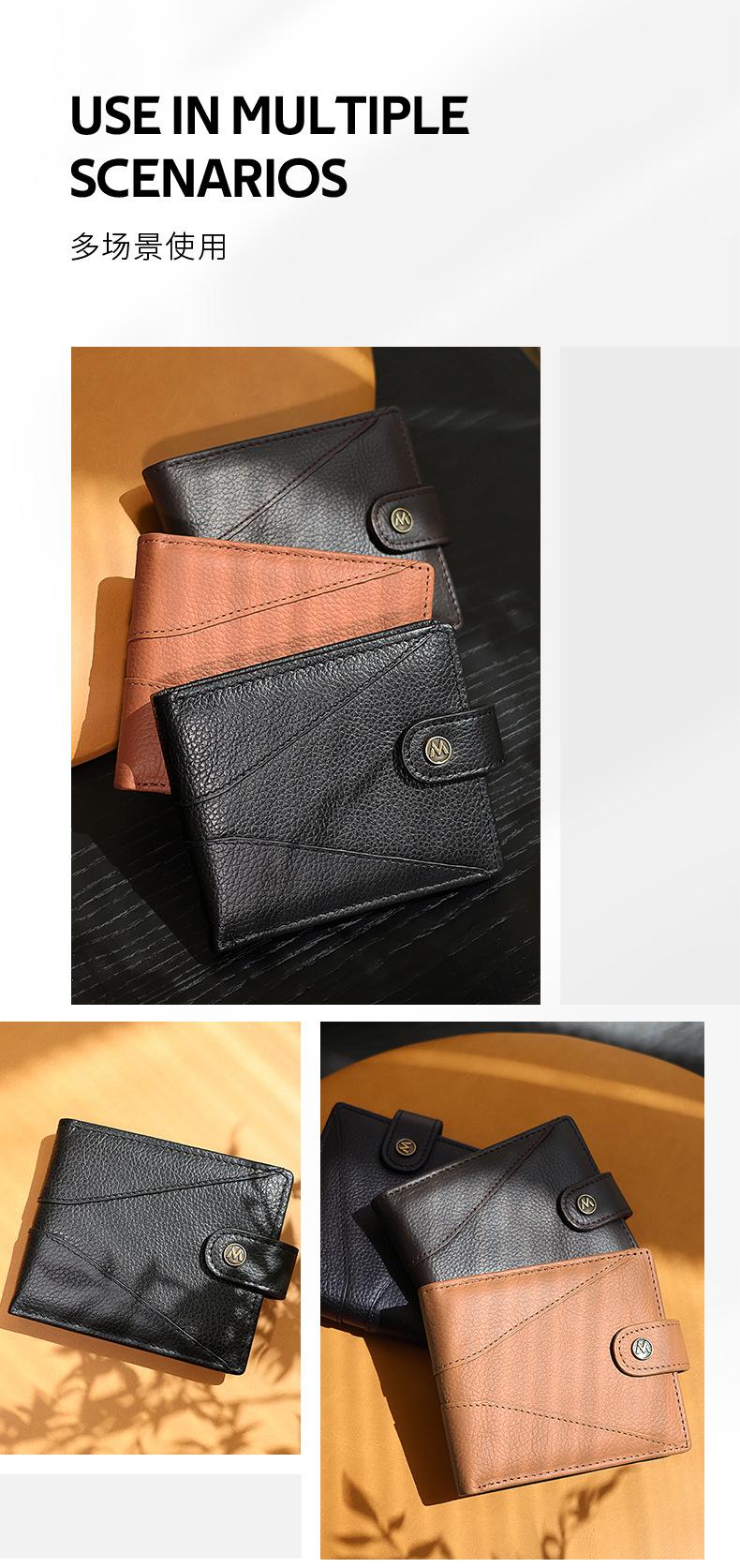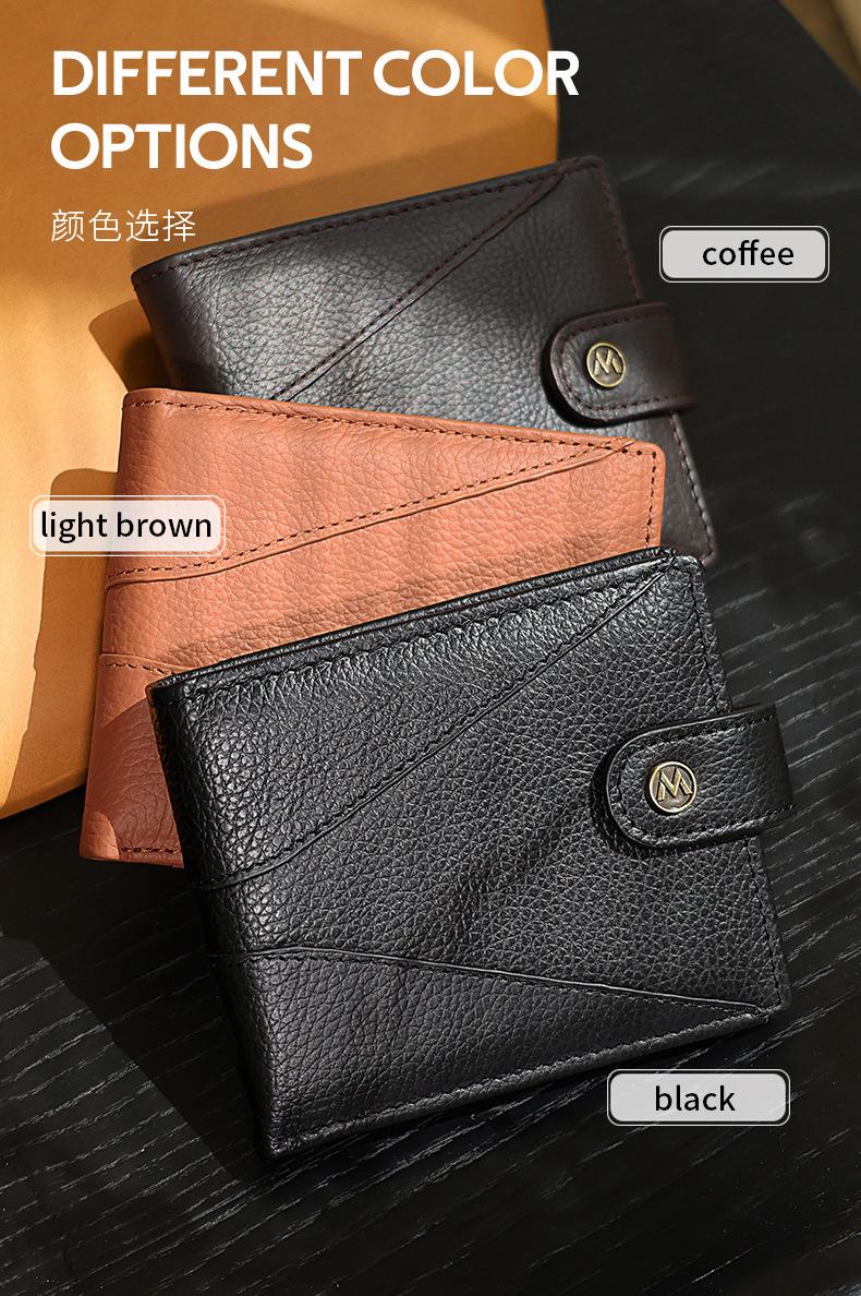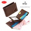 Billetera para Hombre Transfronteriza Antirrobo RFID Costuras Piel Vacuna Corta Cuero Genuino con Hebilla Billetera para Hombre