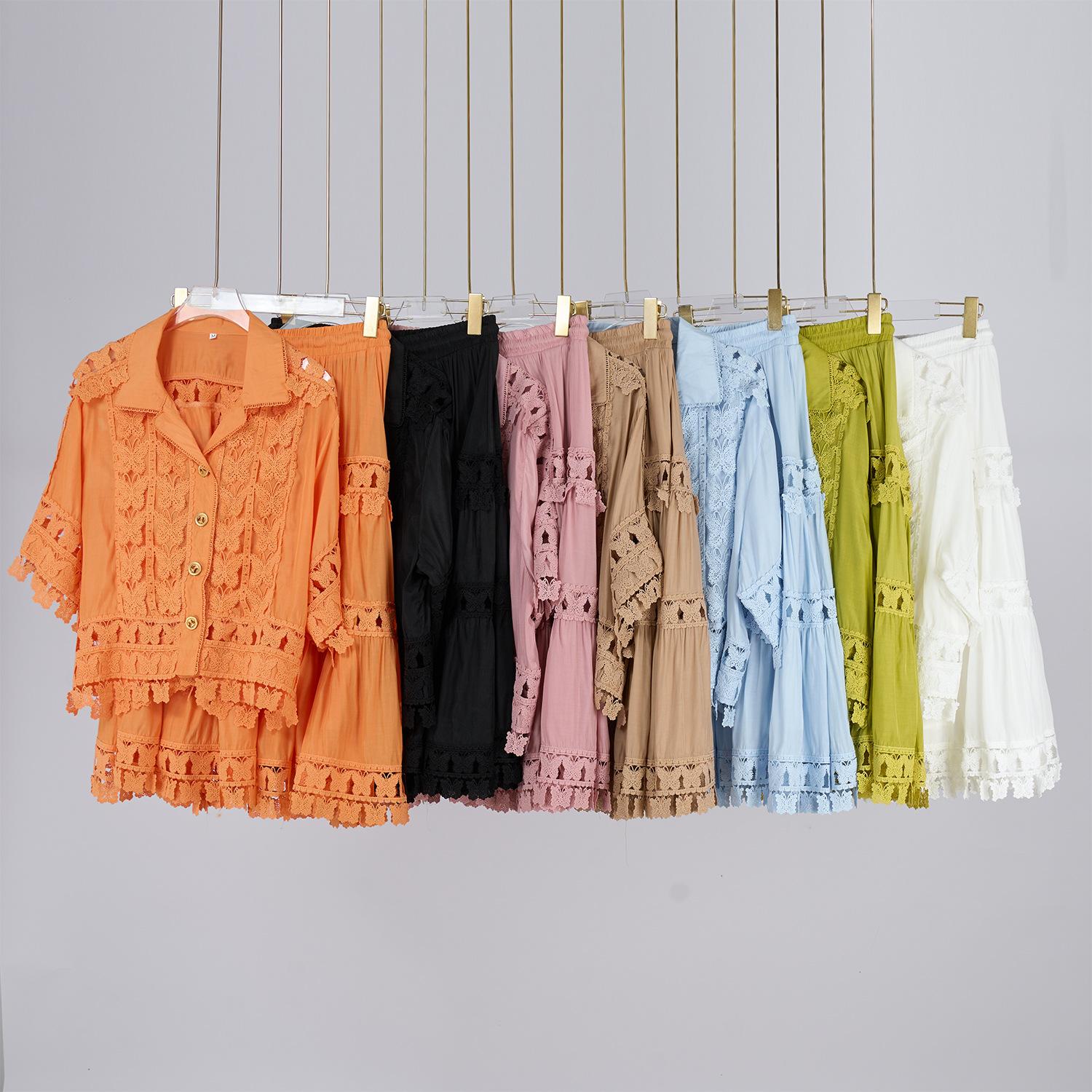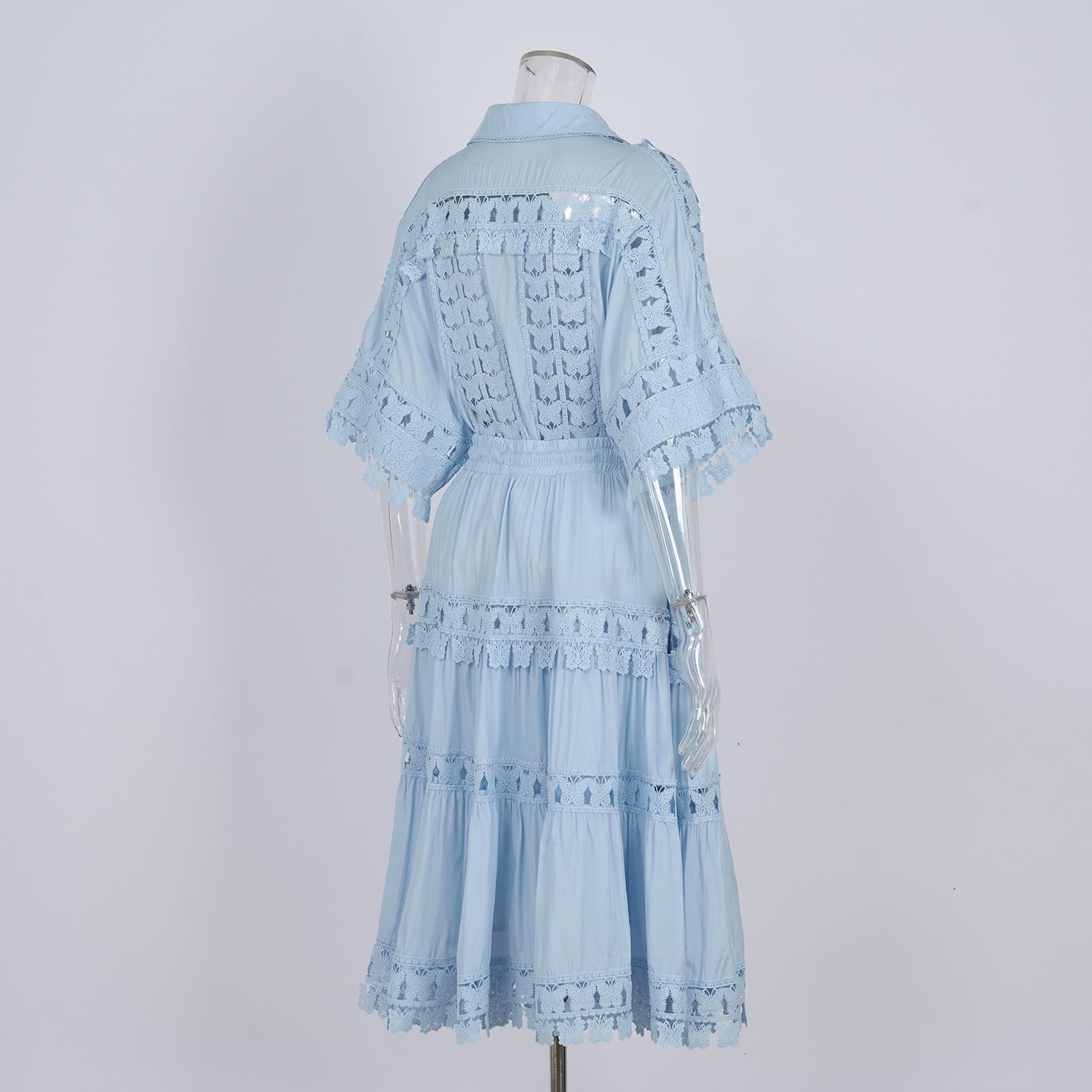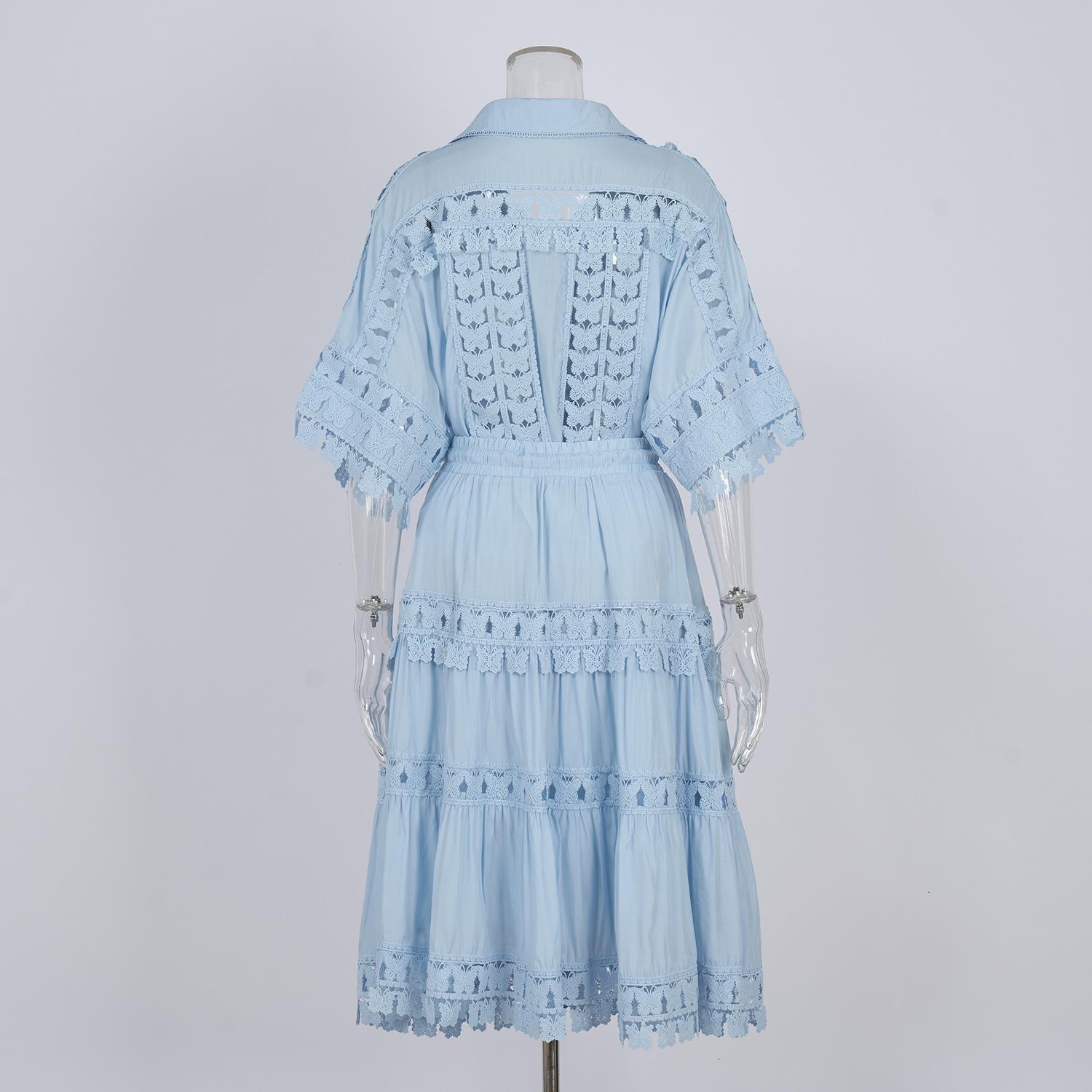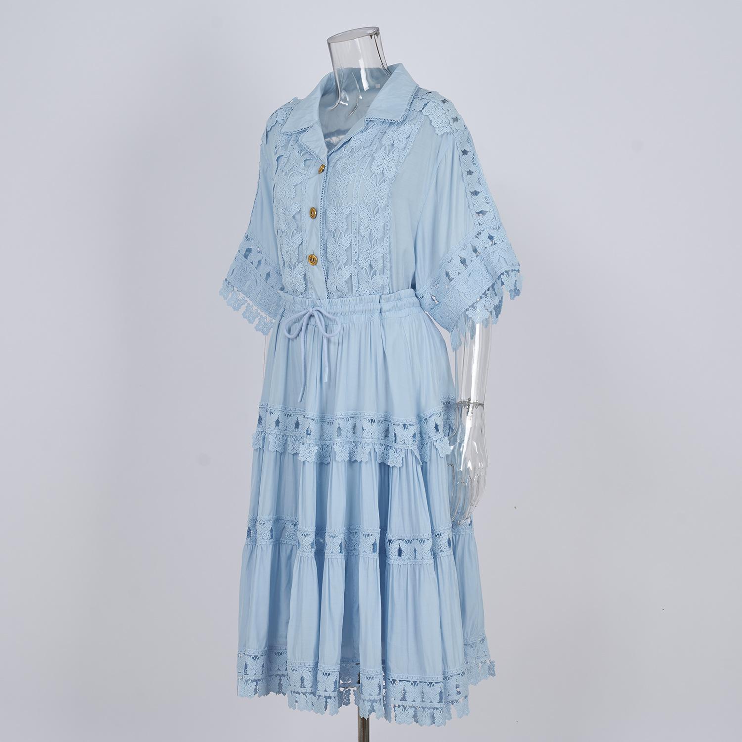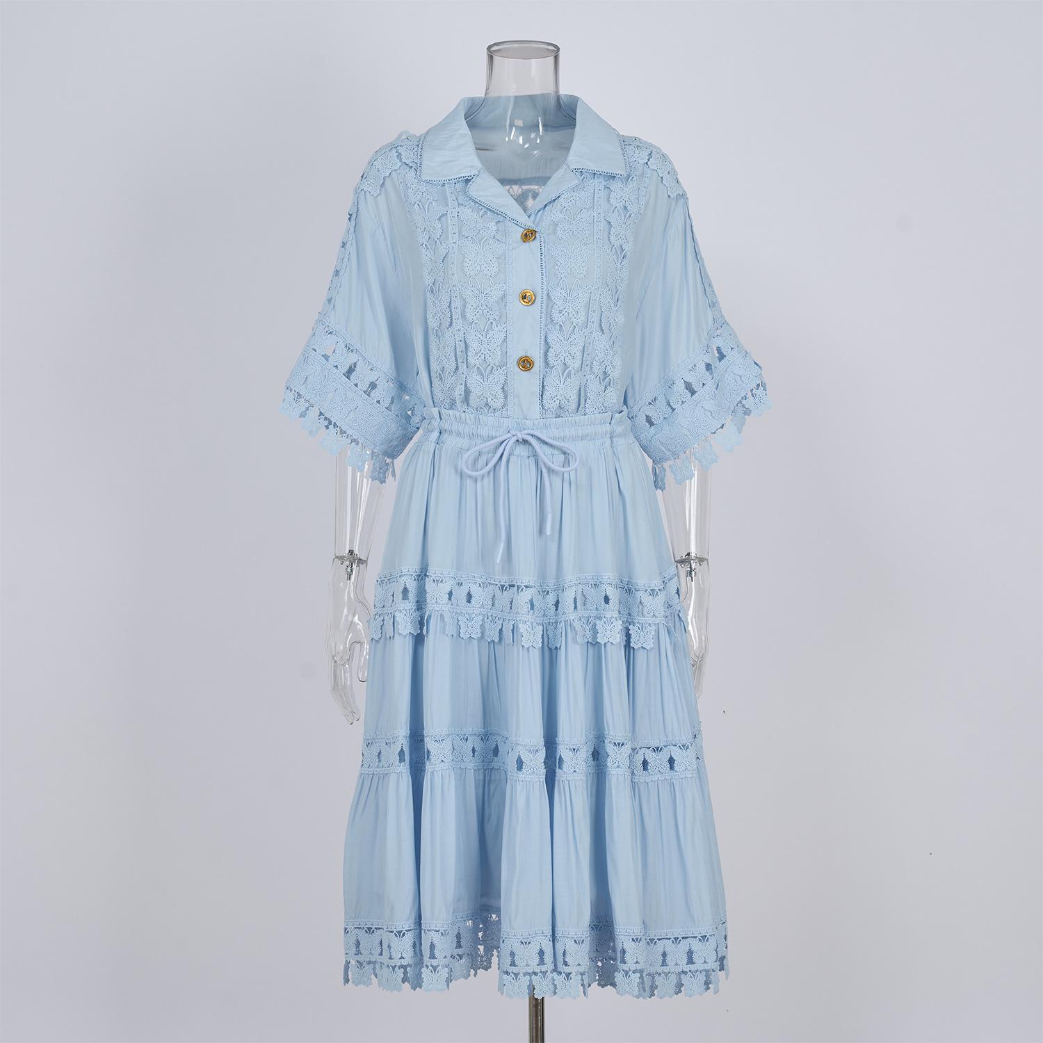 Nuevo Set de Estilo Retro de Corte Transfronterizo para Comercio Exterior Solapa Bordado Encaje Camisa Corta + Set Falda Midi Vestido zimmermann