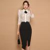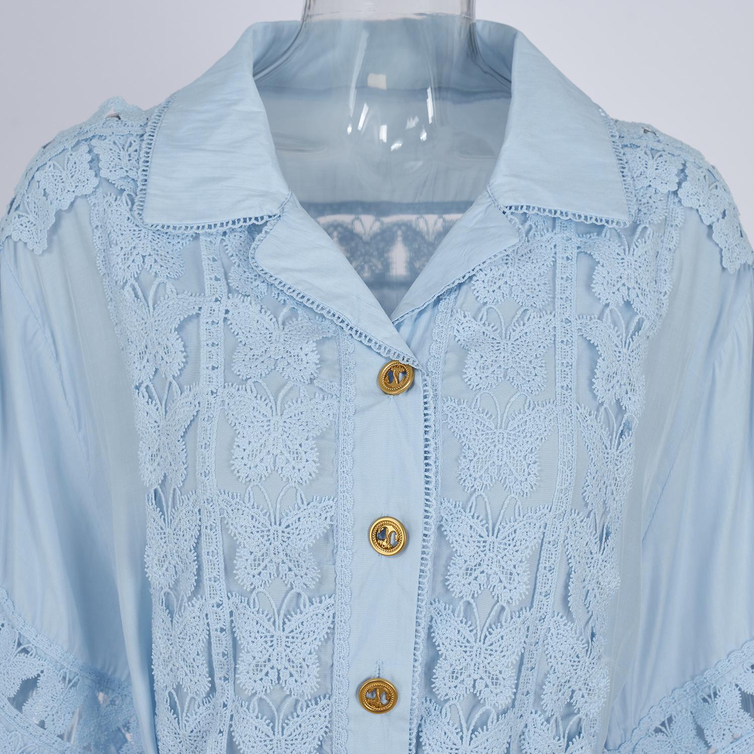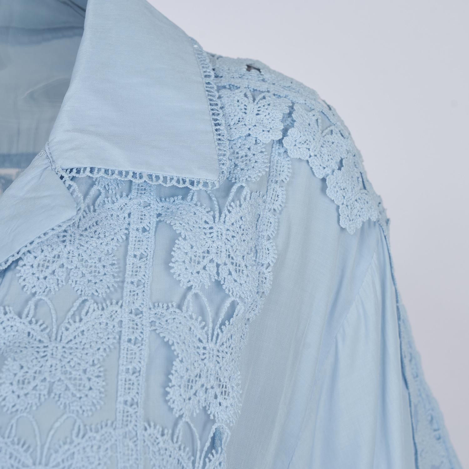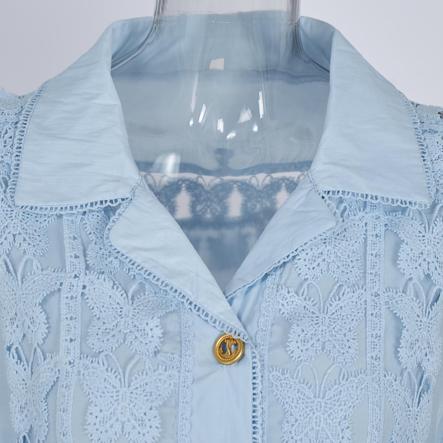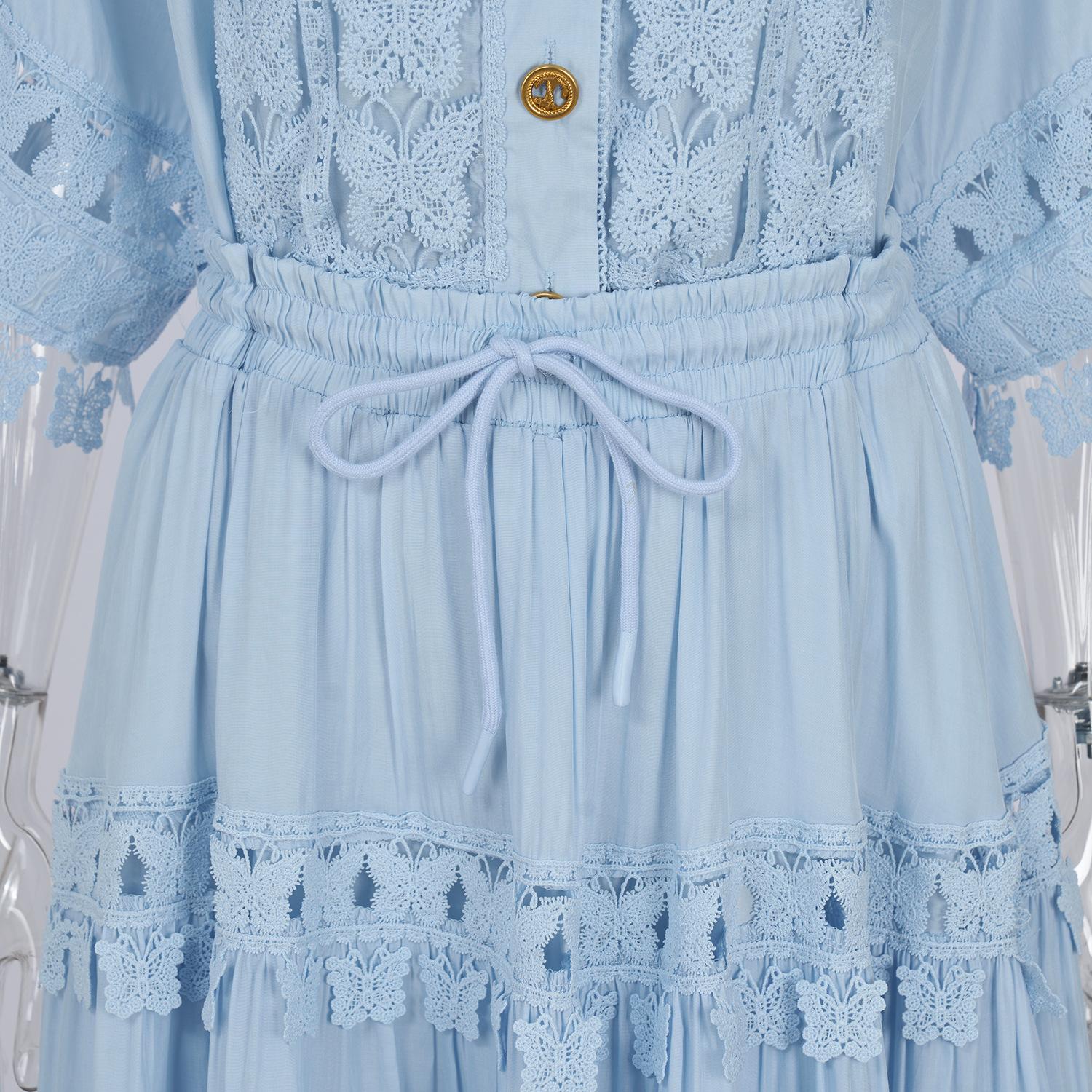 Nuevo Set de Estilo Retro de Corte Transfronterizo para Comercio Exterior Solapa Bordado Encaje Camisa Corta + Set Falda Midi Vestido zimmermann