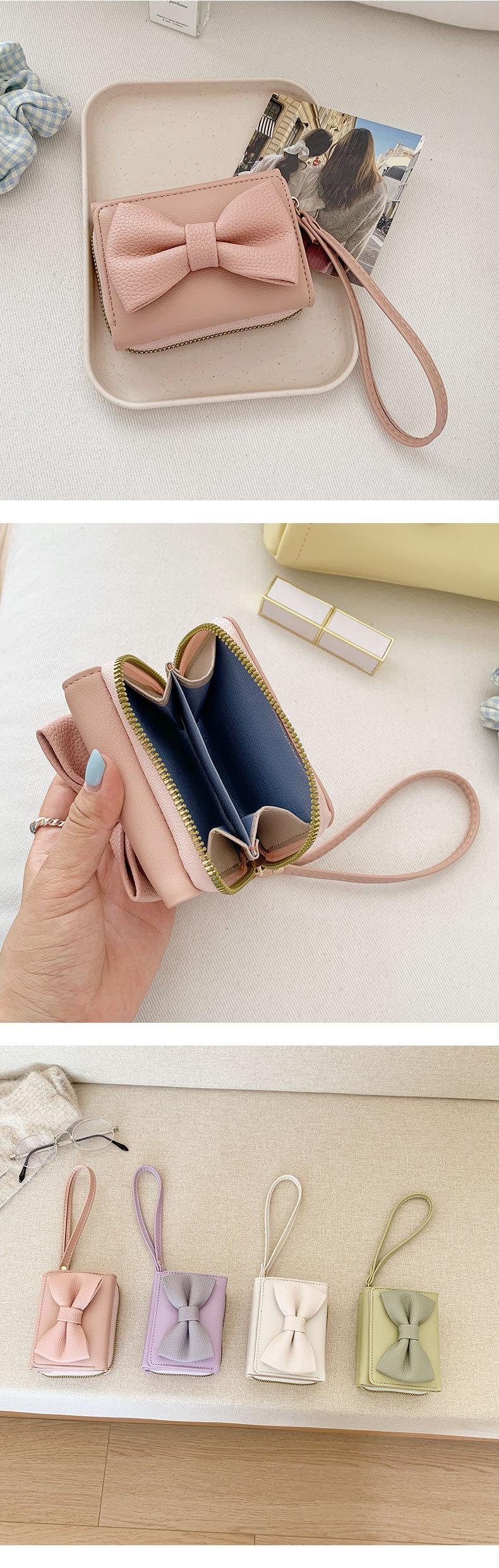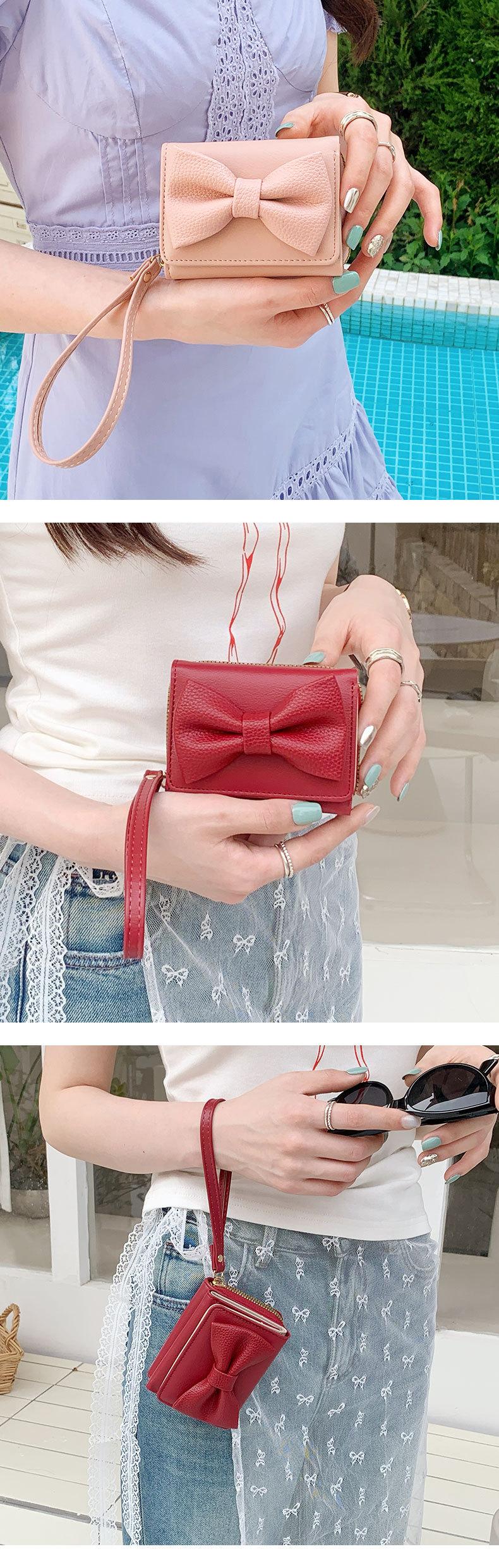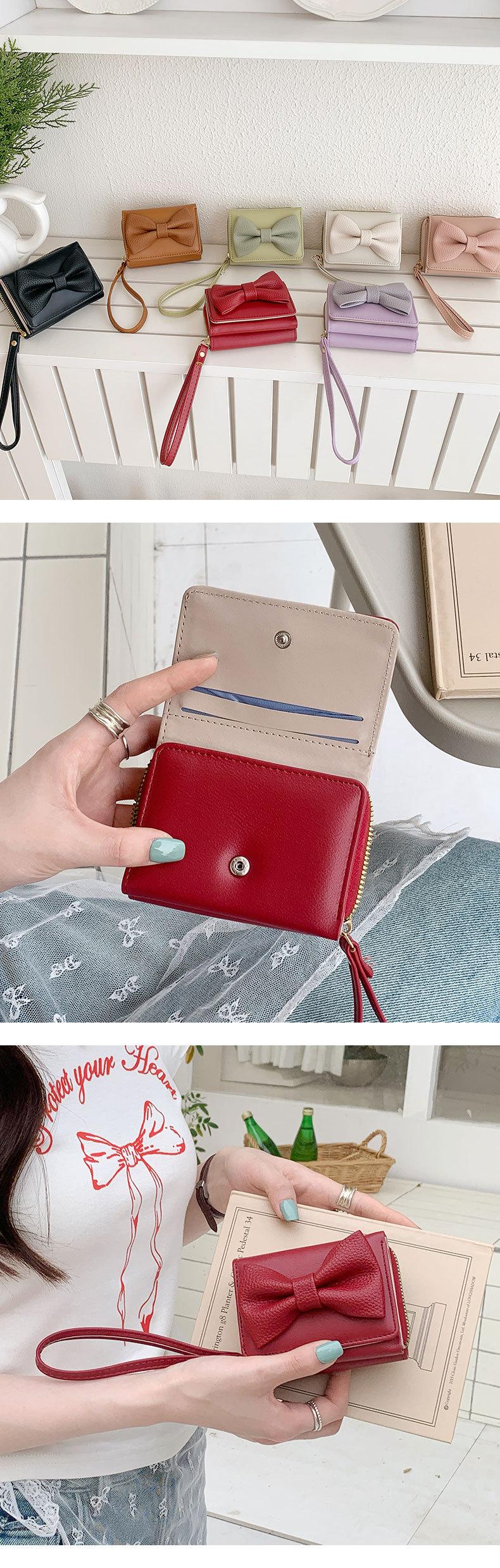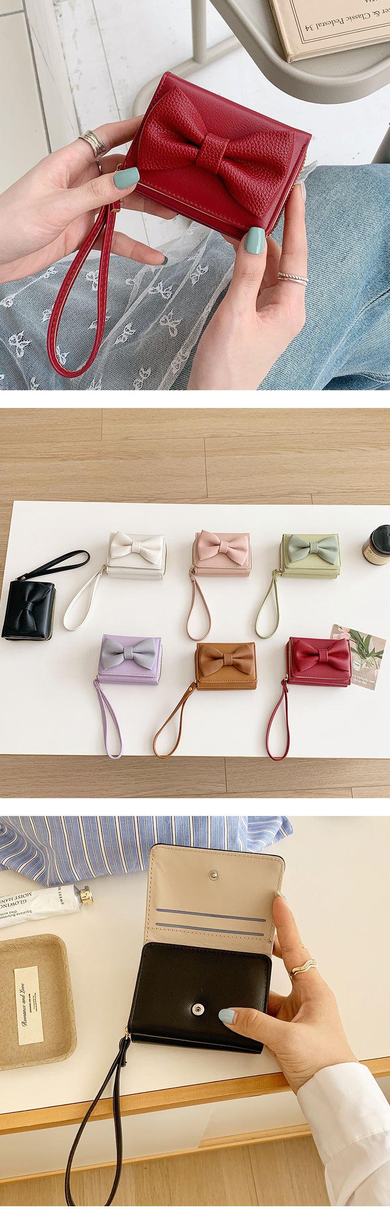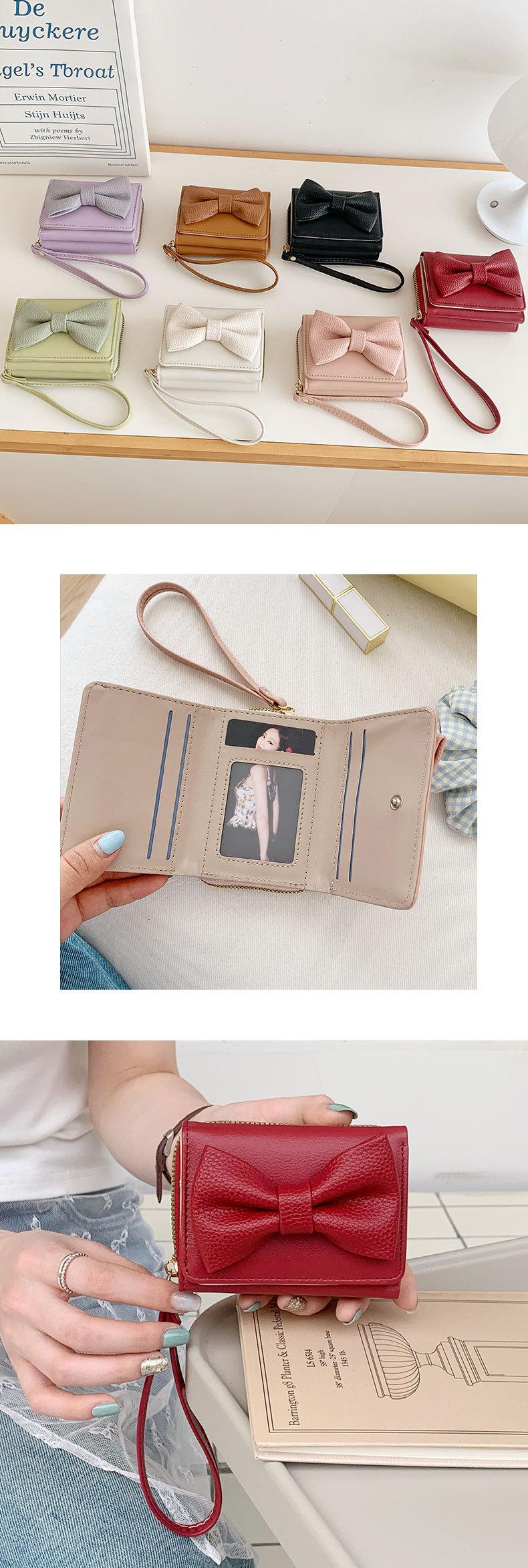 Lazo Billetera Nueva para Mujer Corta Estudiante Estilo Coreano Lindo Moda Simple Clutch Billetera Plegable Tarjetero