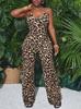 Comercio Exterior Transfronterizo Europeo y Americano Sexy Dulce y Picante Primavera y Verano Nuevo Estilo Estampado de Leopardo Personalizado Pantalón Mono con Tirantes para Mujer