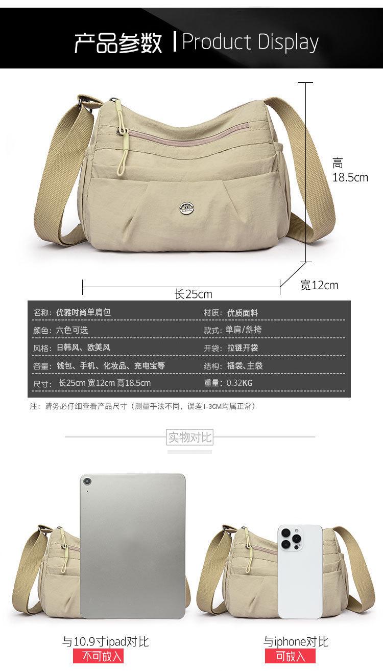 Bolso bandolera casual simple para mujer Verano Nuevo Gran capacidad Ligero Multicapa Bolso de mujer Bolso para mediana edad y ancianos Bolso de nailon de un solo hombro