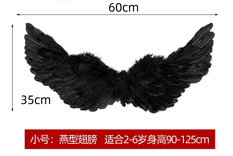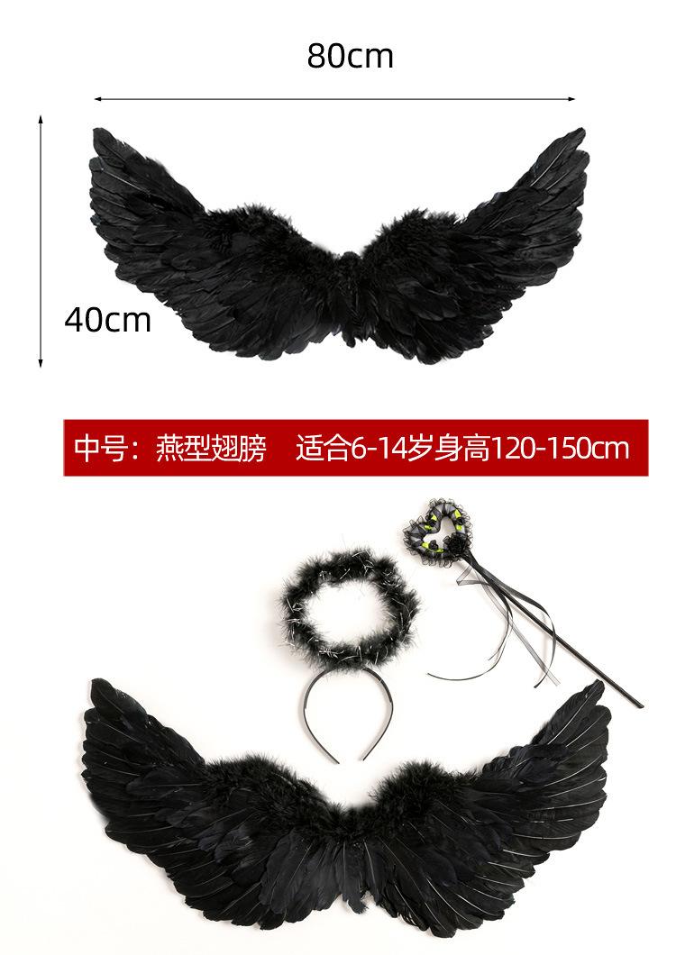 Small size 60*35 wings black, Small black angel three-piece set, Small black devil three-piece set, Medium bla...