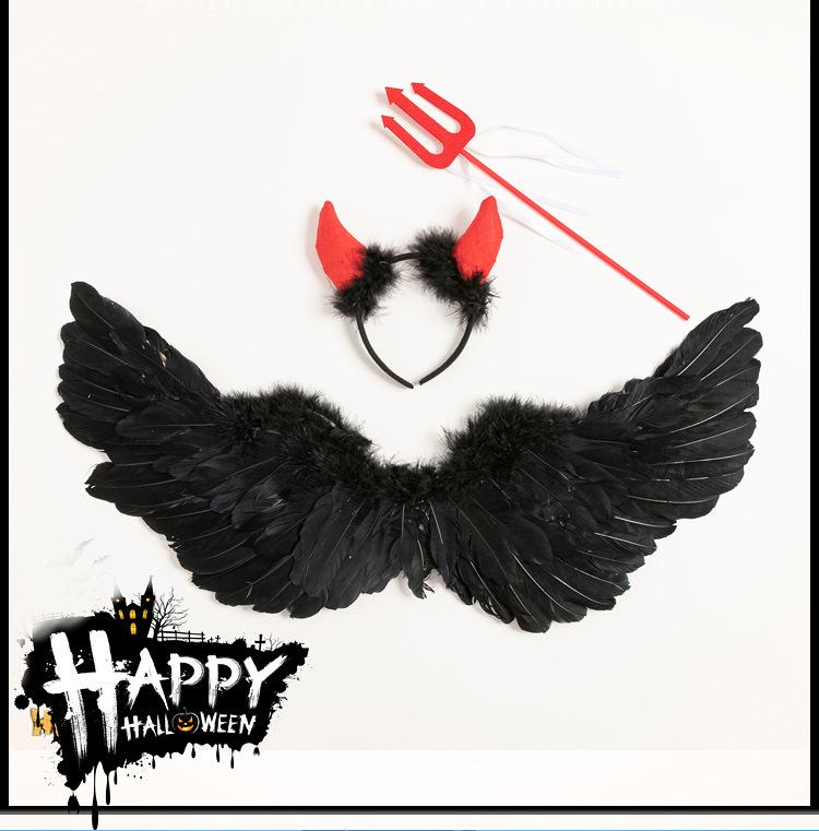Alas de Halloween de fábrica directas al por mayor para niños y adultos, alas de plumas de ángel, accesorios, alas negras