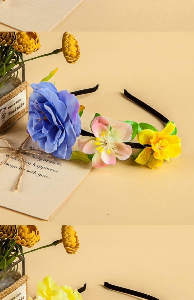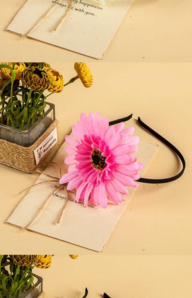 Transparent U hairpin [powder]], Big brown prick flower, Color U haircard [red]], Champagne color wrinkled chr...
