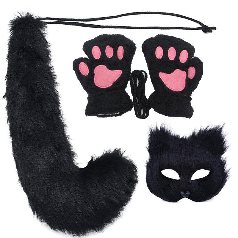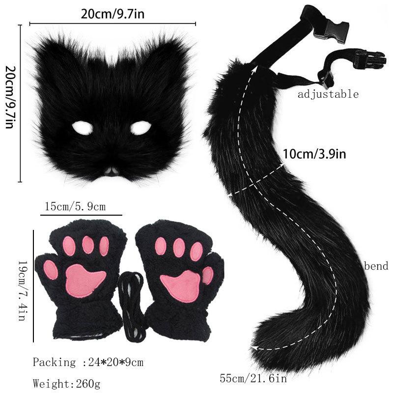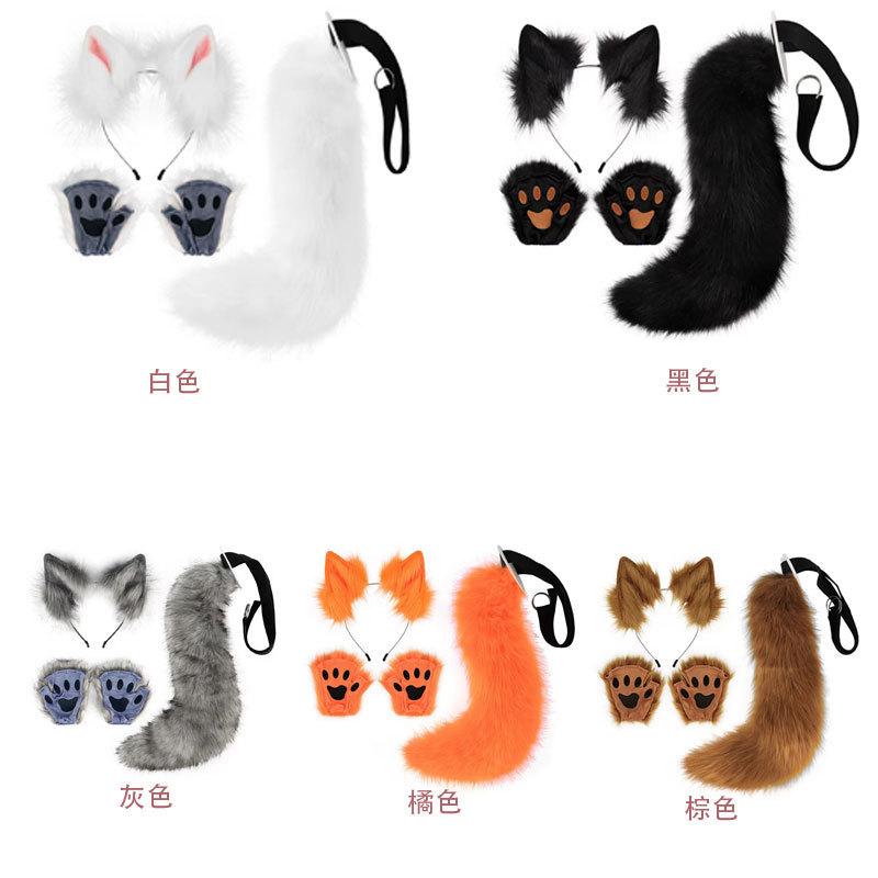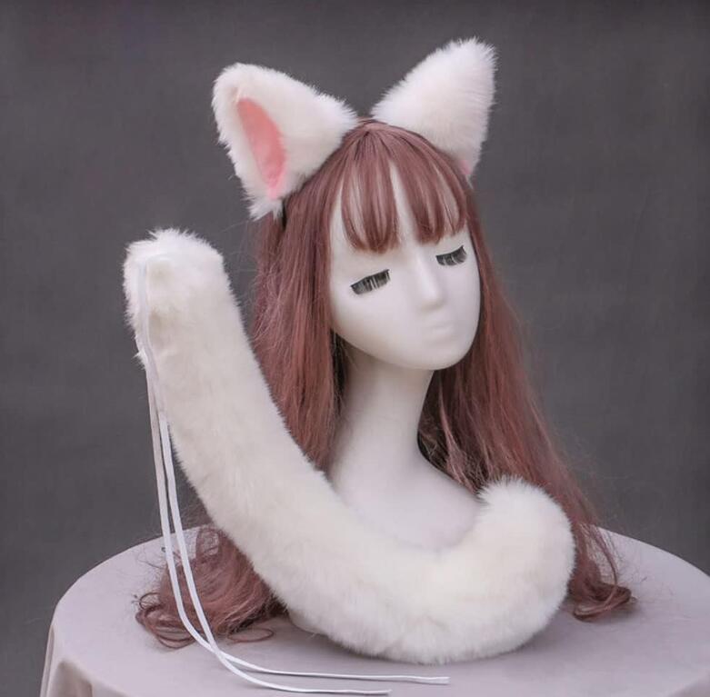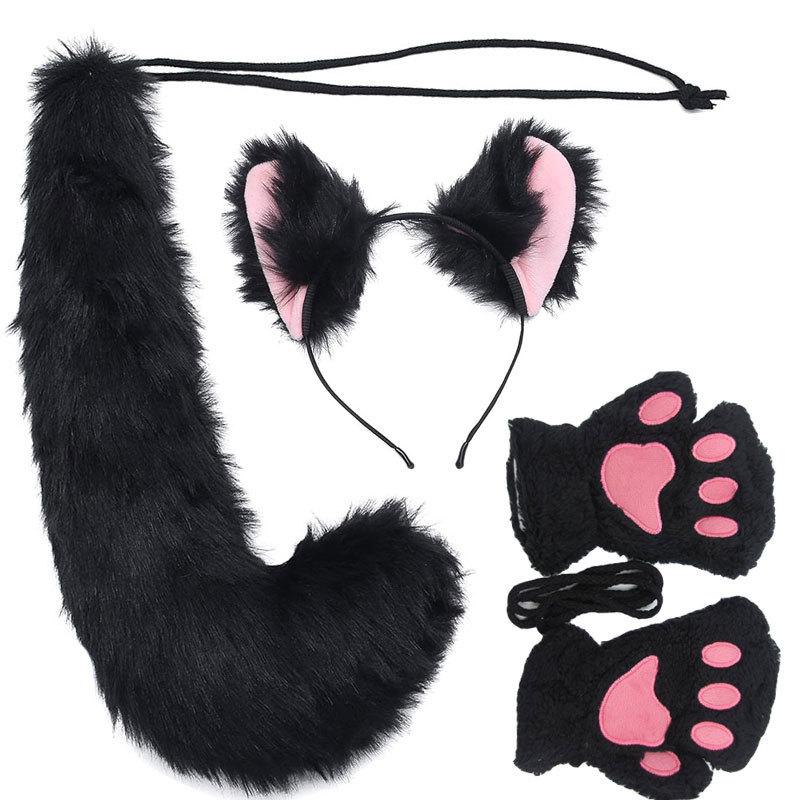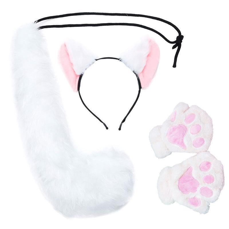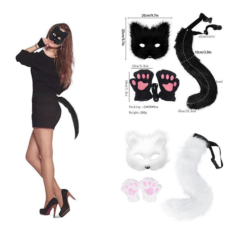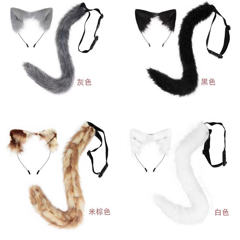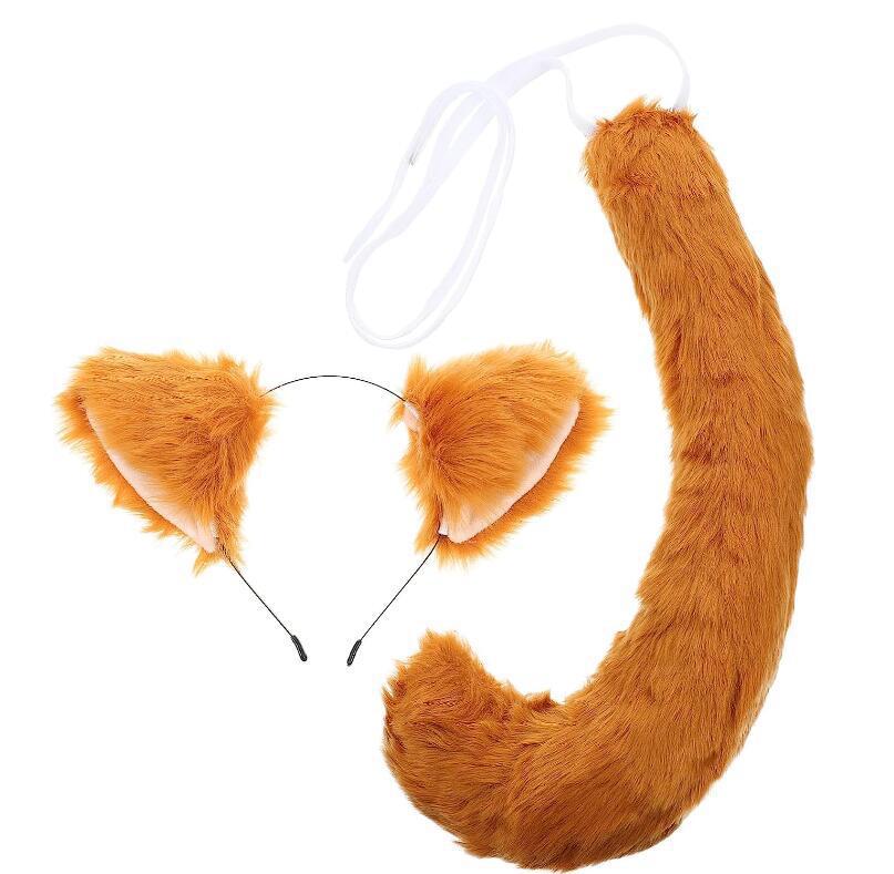 Diadema Orejas de Gato Zorro Cubre Cola Accesorios Traje Diadema Cola Fiesta Diadema Halloween Cosplay Vestido