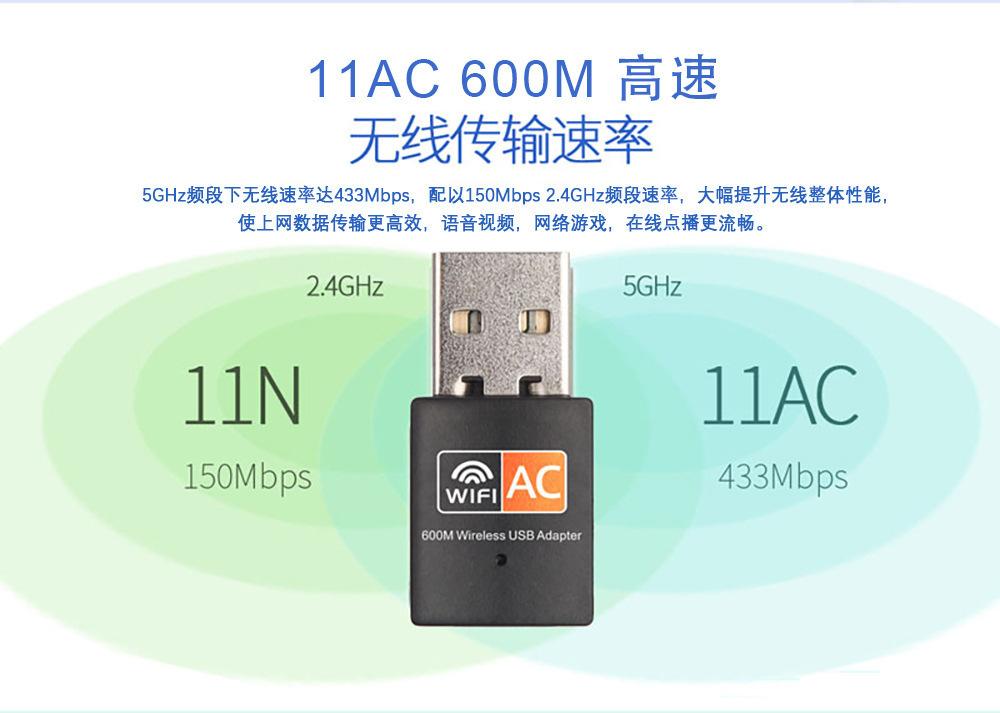 Tarjeta de red USB 600M WIFI receptor inalámbrico mini adaptador RTL8811 tarjeta de red inalámbrica