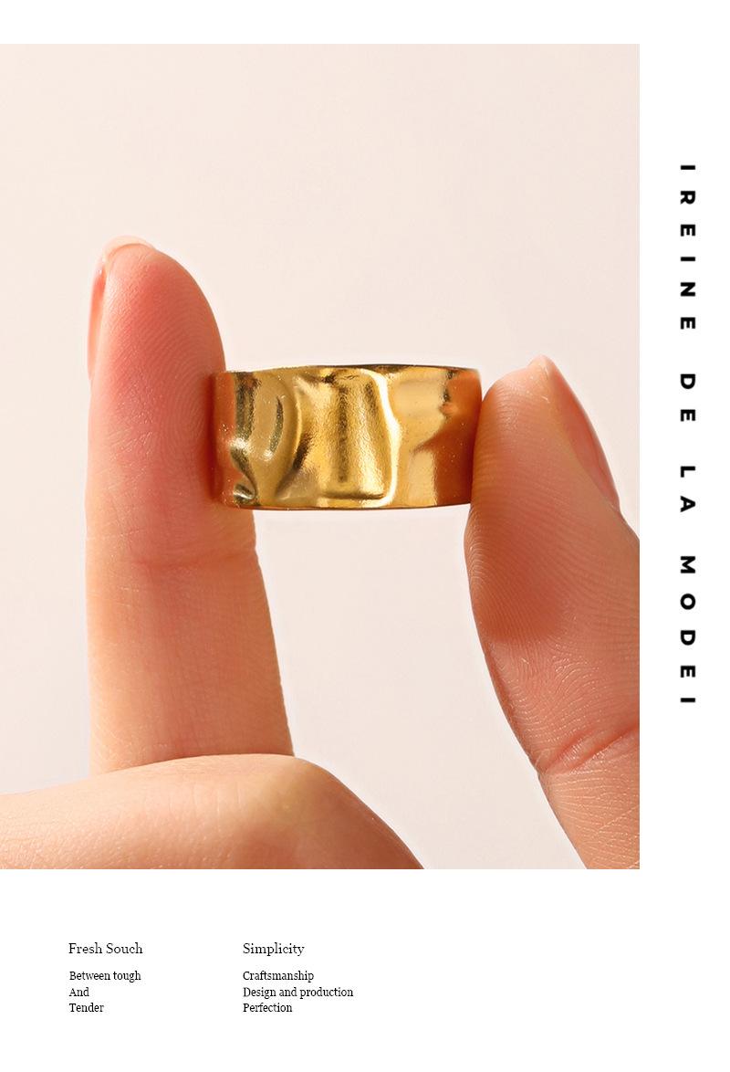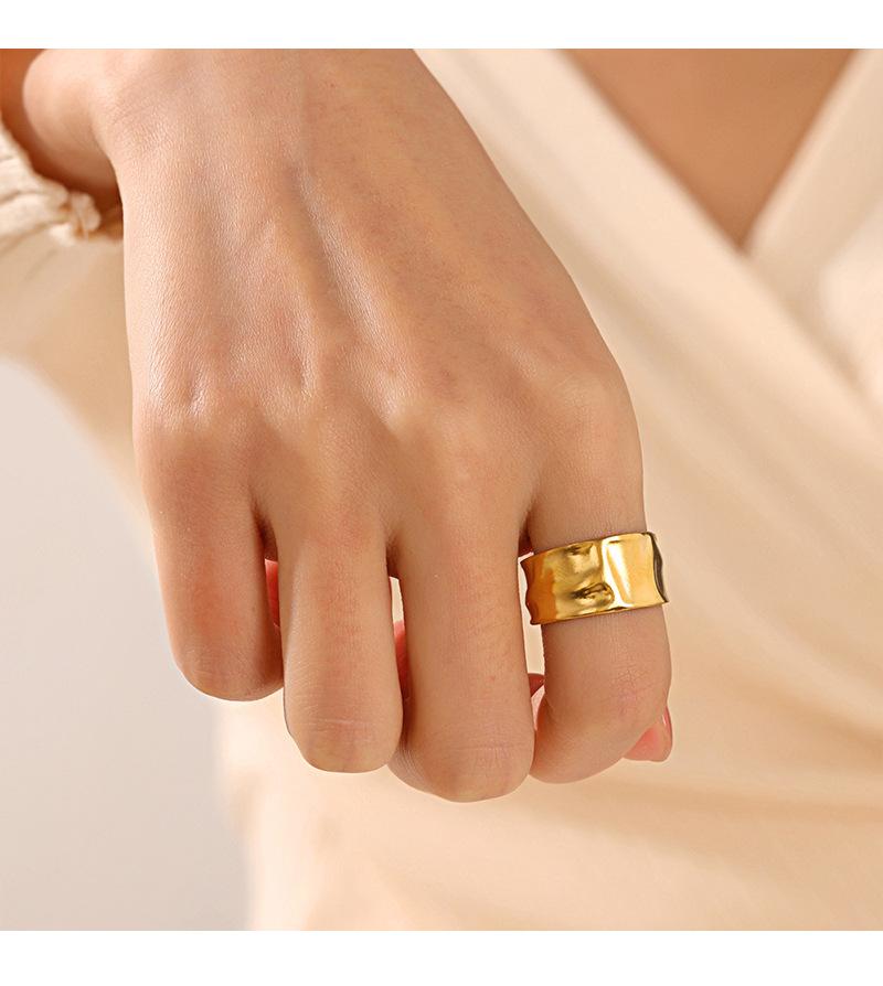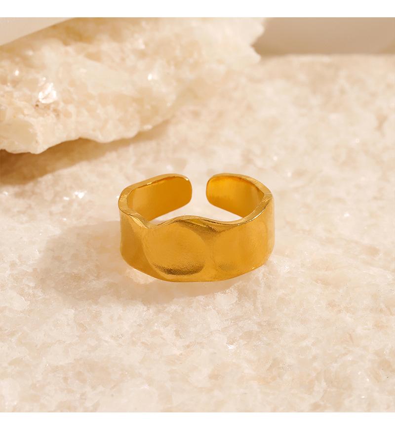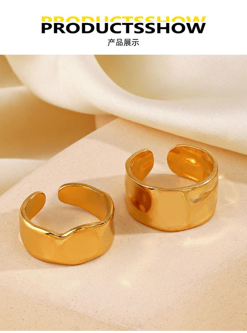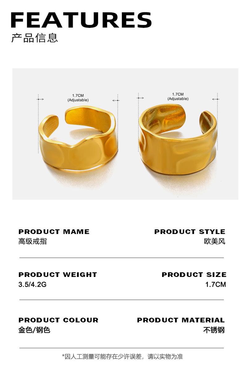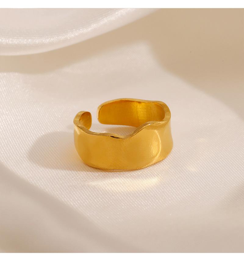 Anillo Europeo y Americano Simple Geométrico de Abertura Amplia Ajustable de Acero Inoxidable con Forma Especial Asimétrico Popular Bañado en Oro para Mujer