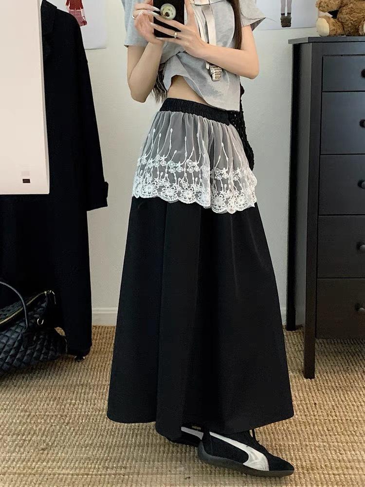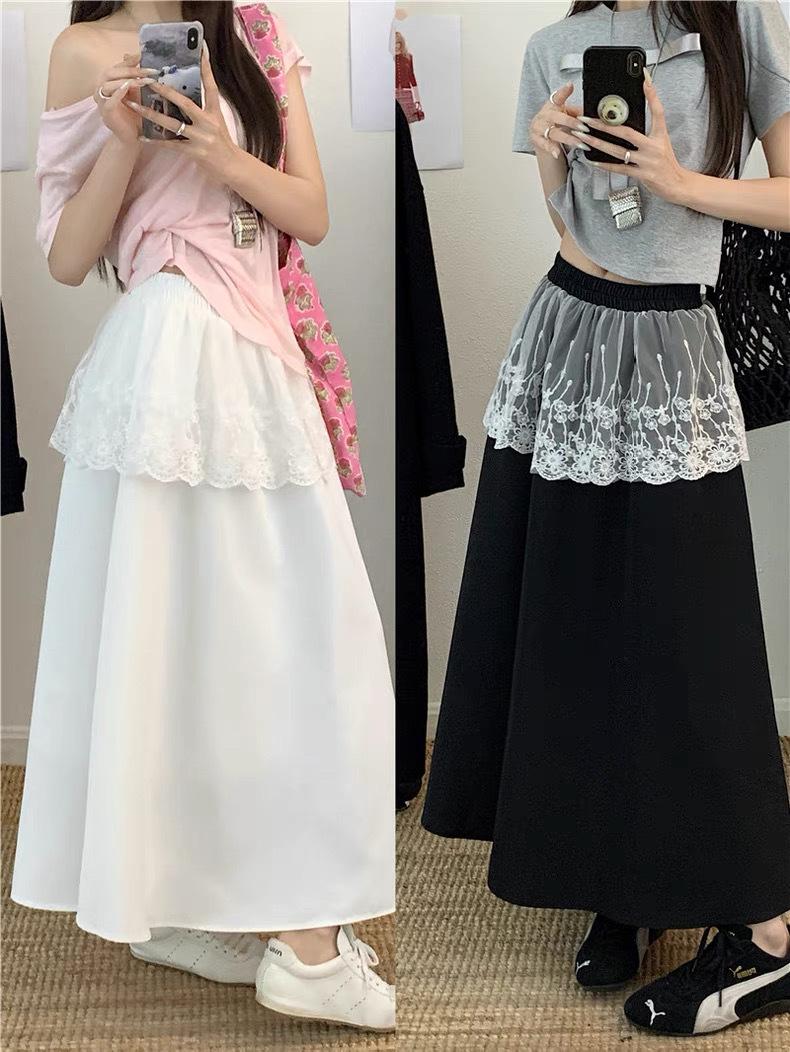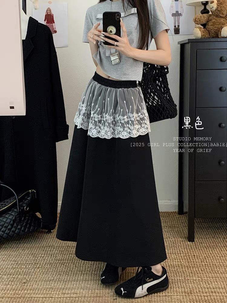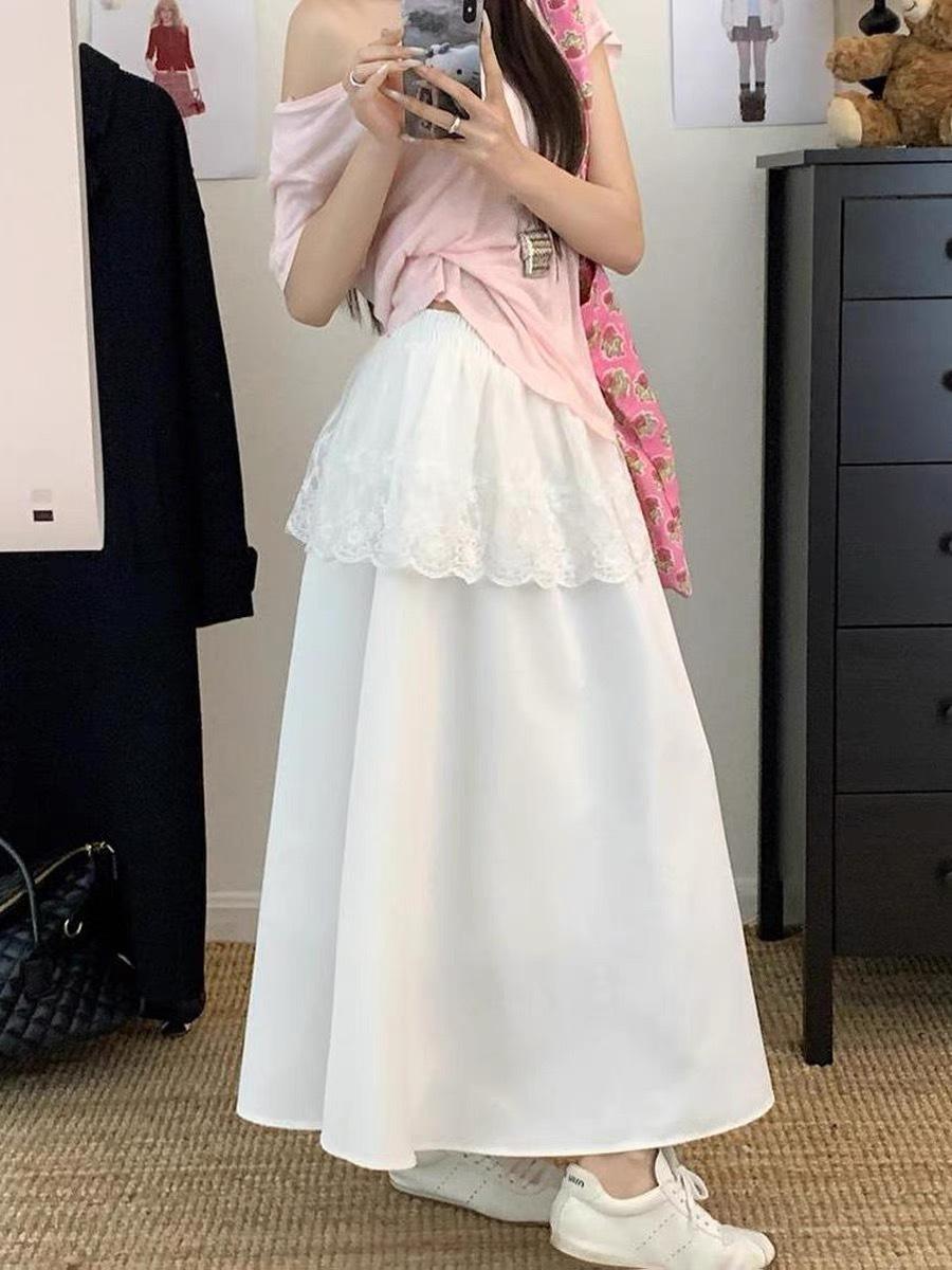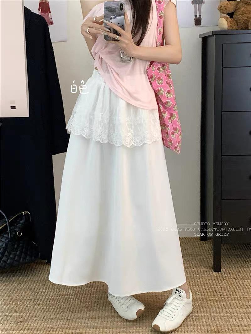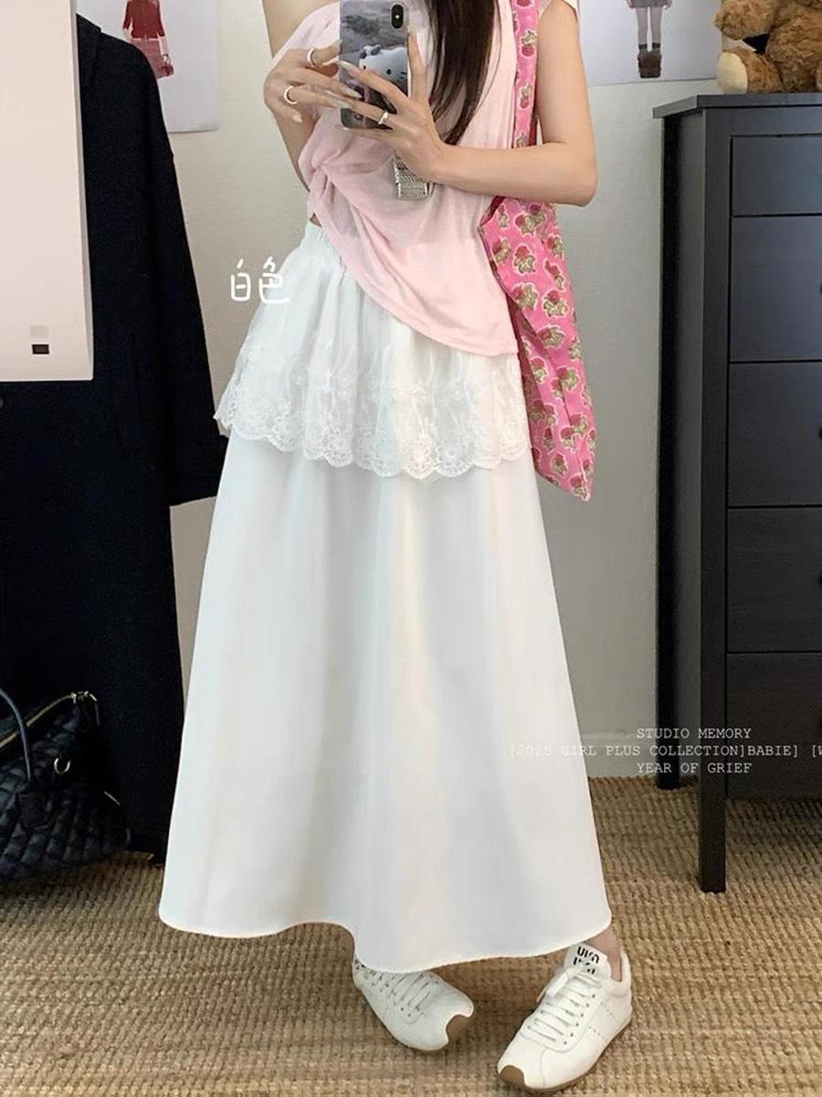 Diseño de Estilo Dulce Falda con Encaje 2025 Verano Nuevo Cintura Alta Slim Versátil Línea A Falda Larga para Mujer