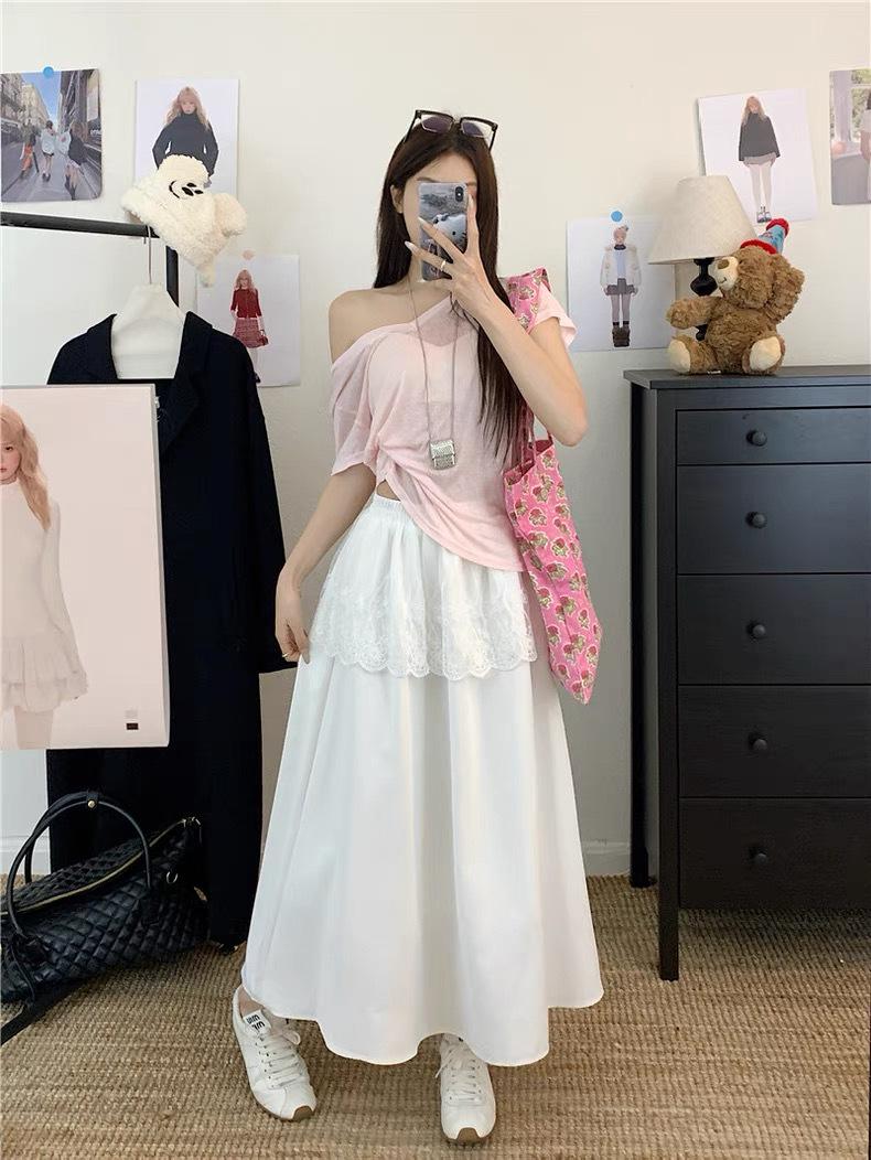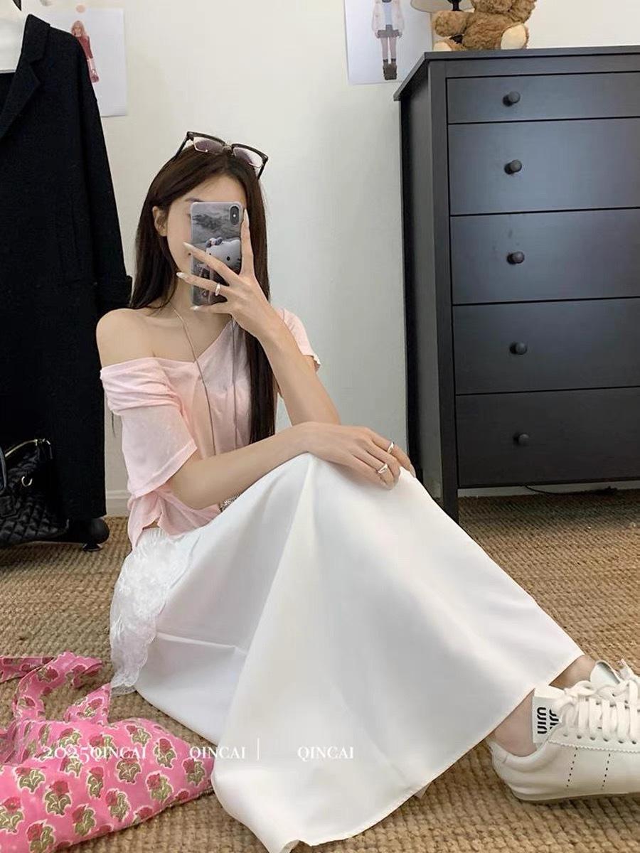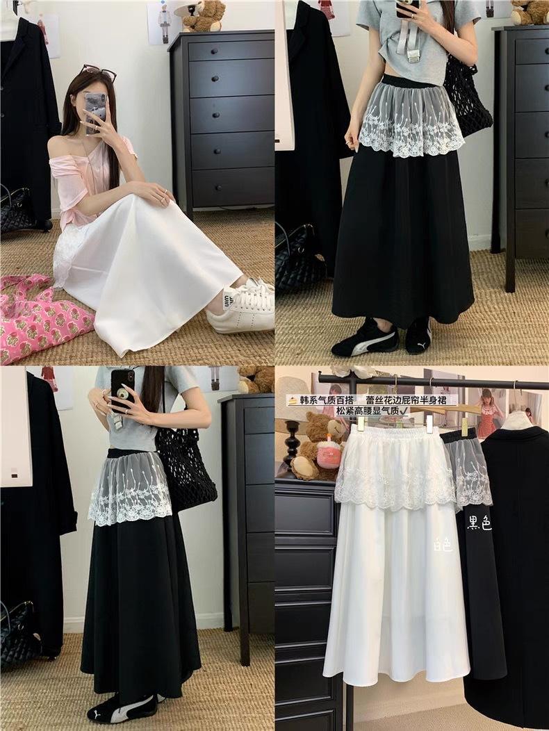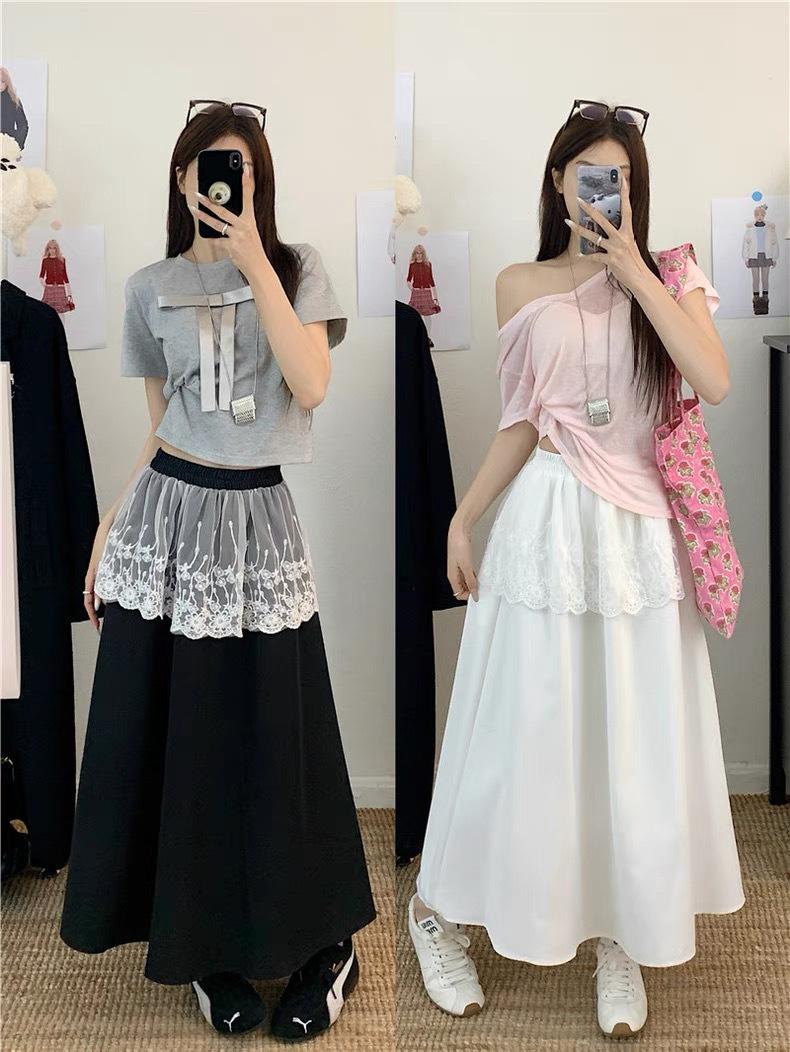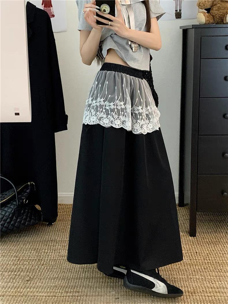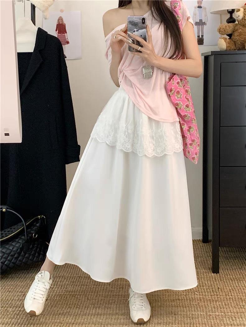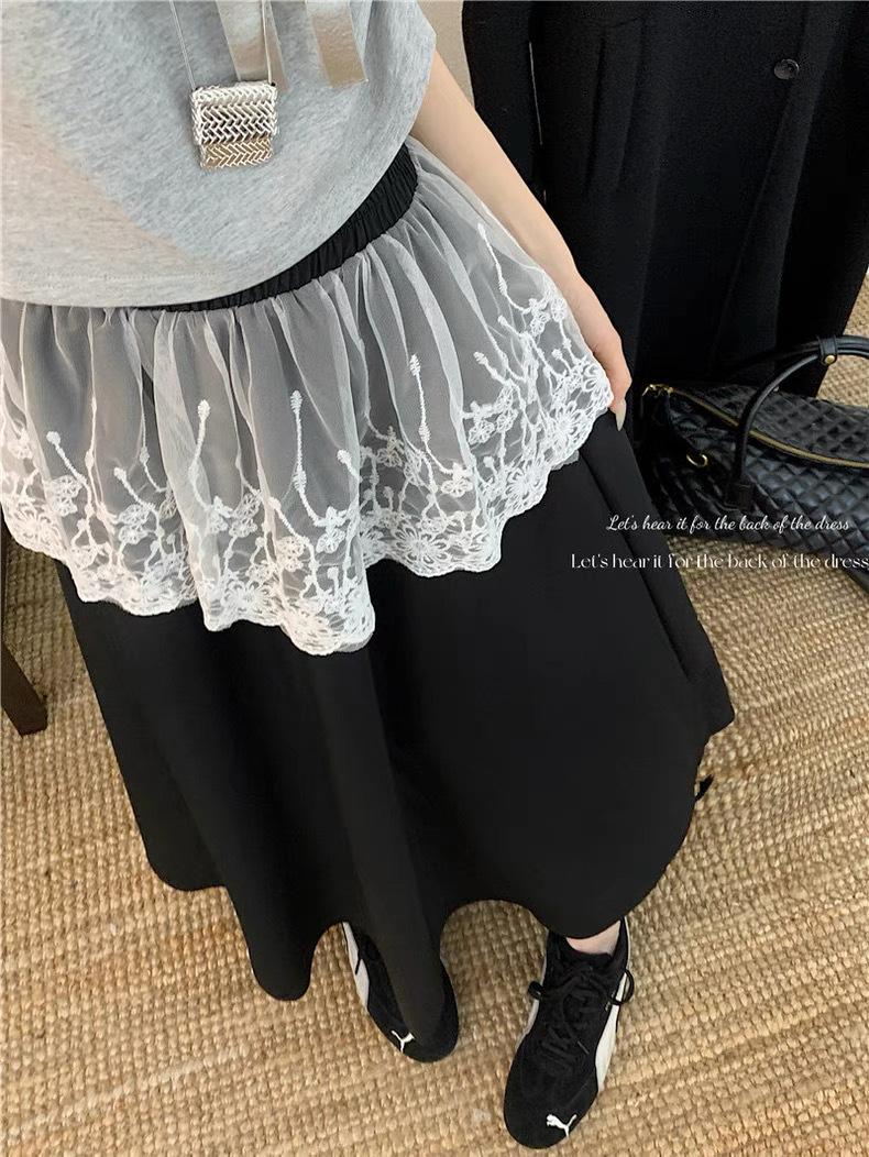 Diseño de Estilo Dulce Falda con Encaje 2025 Verano Nuevo Cintura Alta Slim Versátil Línea A Falda Larga para Mujer