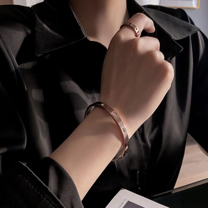 Acero de Titanio Simple y Elegante Lujo Ligero Alta Gama Moda Incrustado con Diamantes Acero de Titanio para Mujer Hombre Pulsera Rosa que No se Desvanece Anillo de Pareja