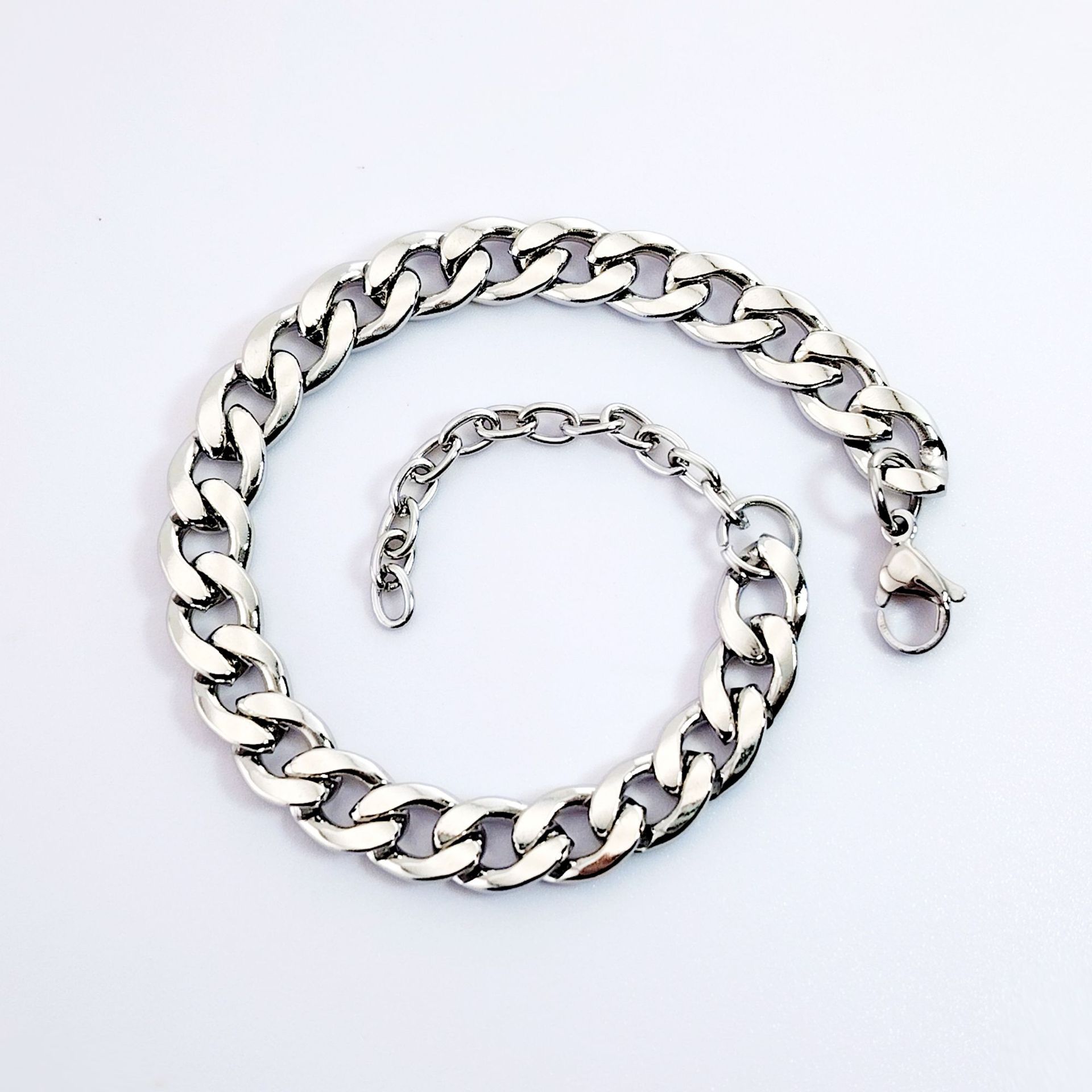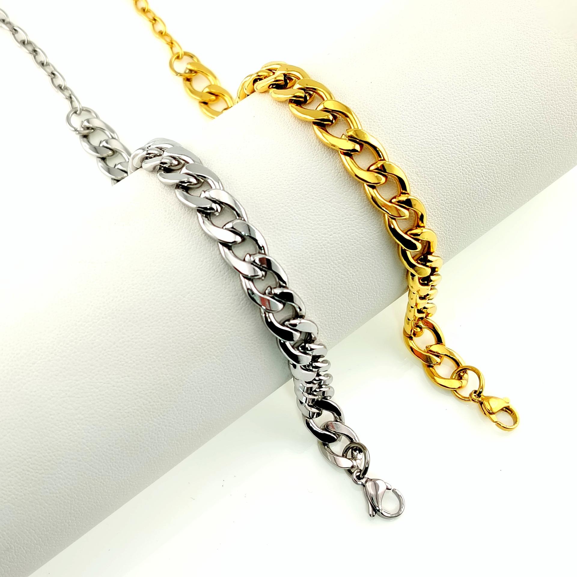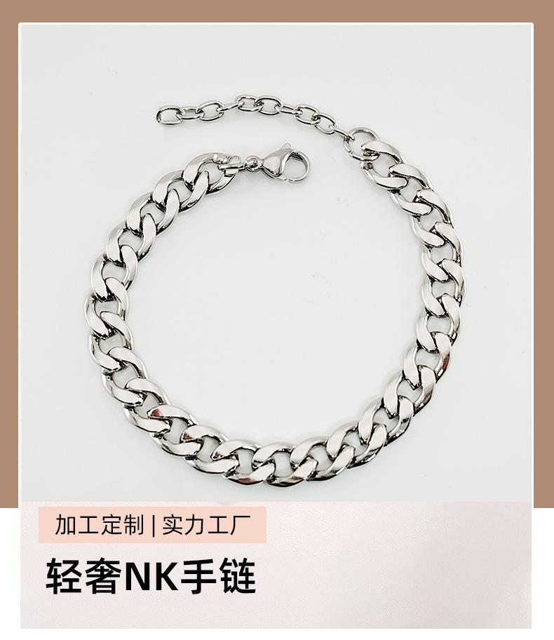 Pulsera Nk de Acero Inoxidable de Venta Caliente Transfronteriza Unisex 8.5mm de Ancho Cadena Plana Pulsera Figaro Joyería al por Mayor
